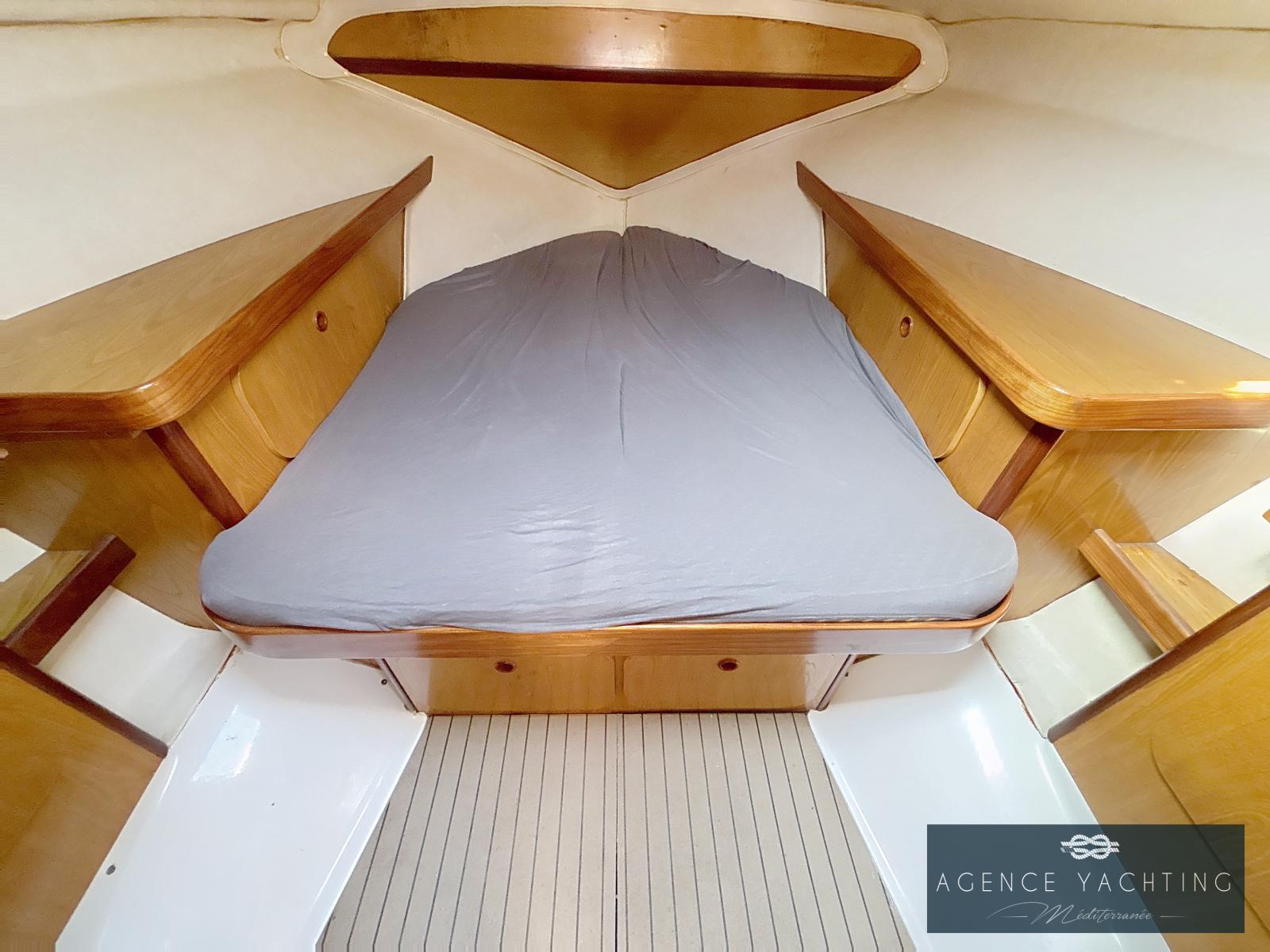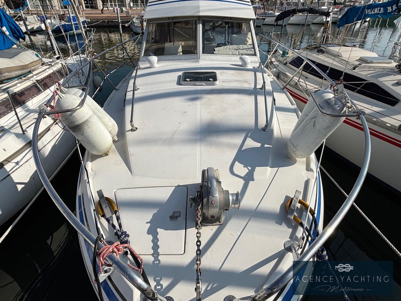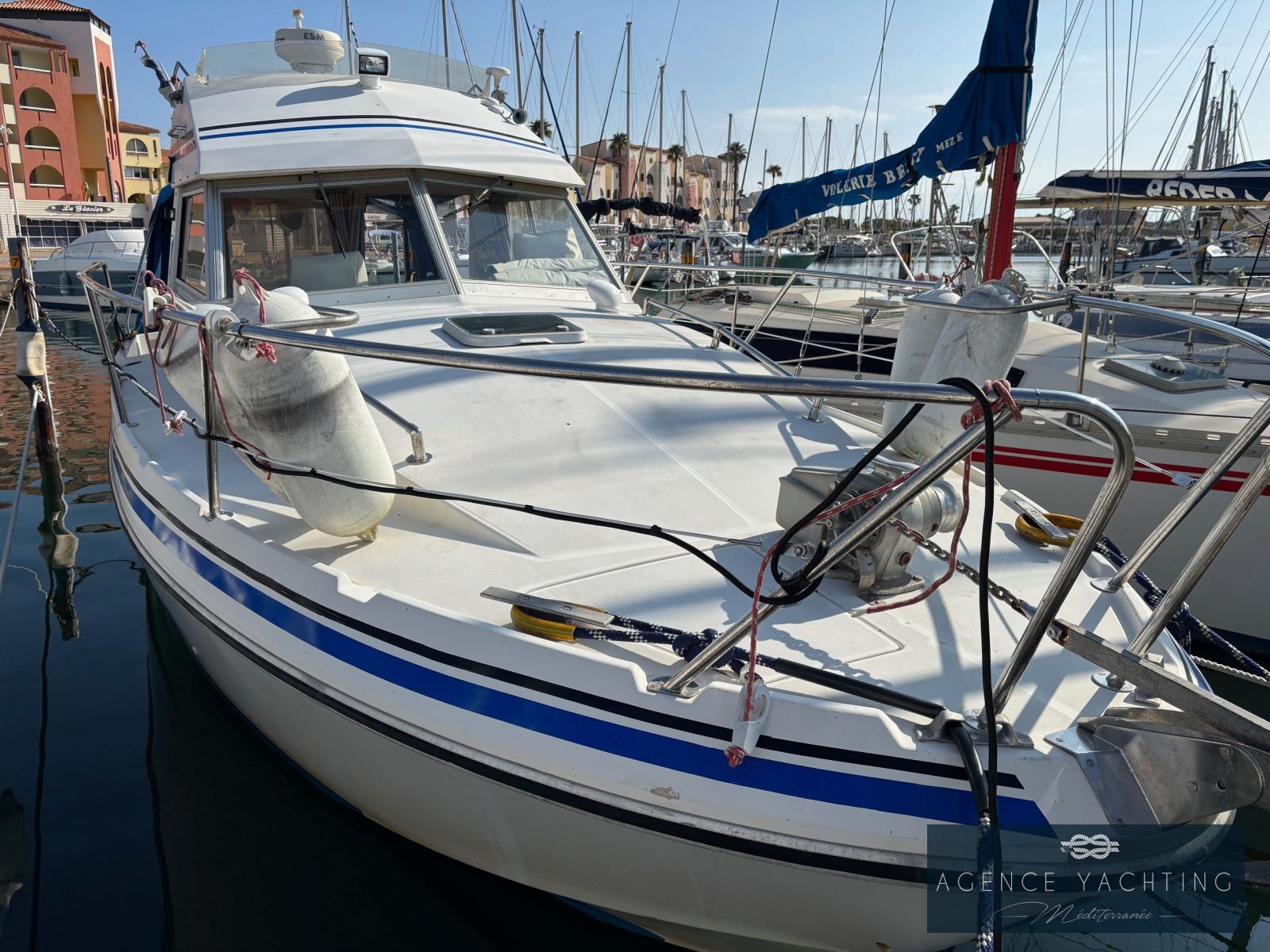 Le Bénéteau Antares 860 est un cabin cruiser polyvalent, conçu pour offrir confort et performance en mer. Avec une longueur de 8,60 mètres, une largeur de 3 mètres, il présente une coque semi-planante dessinée par André Bénéteau, assurant une navigation stable et agréable même par mer agitée.