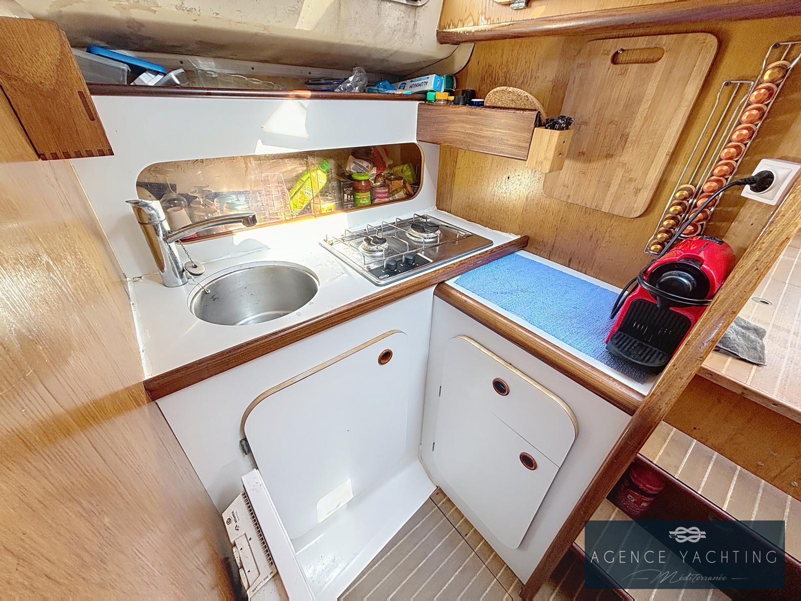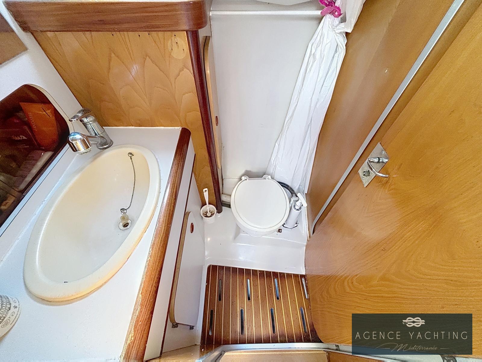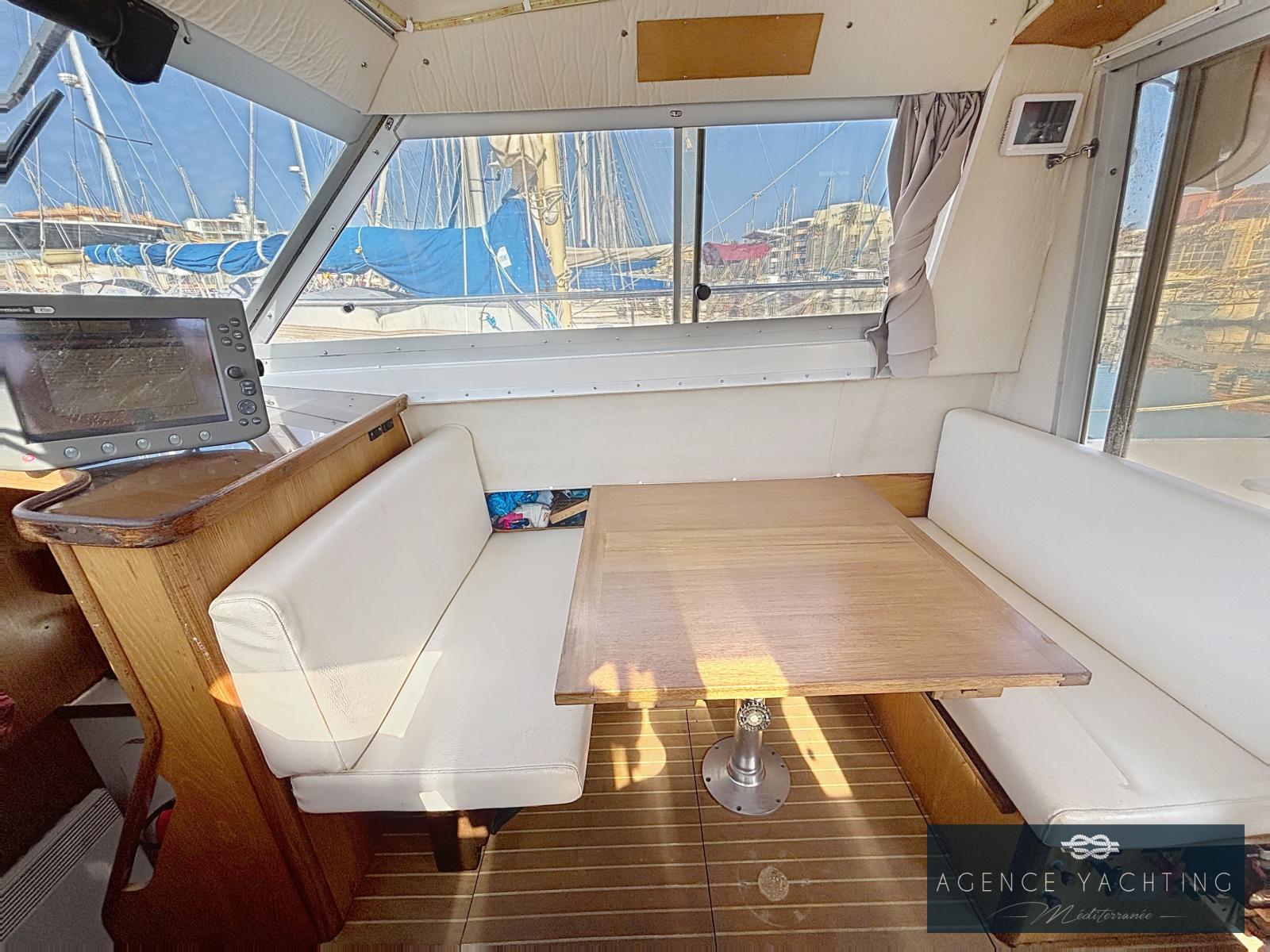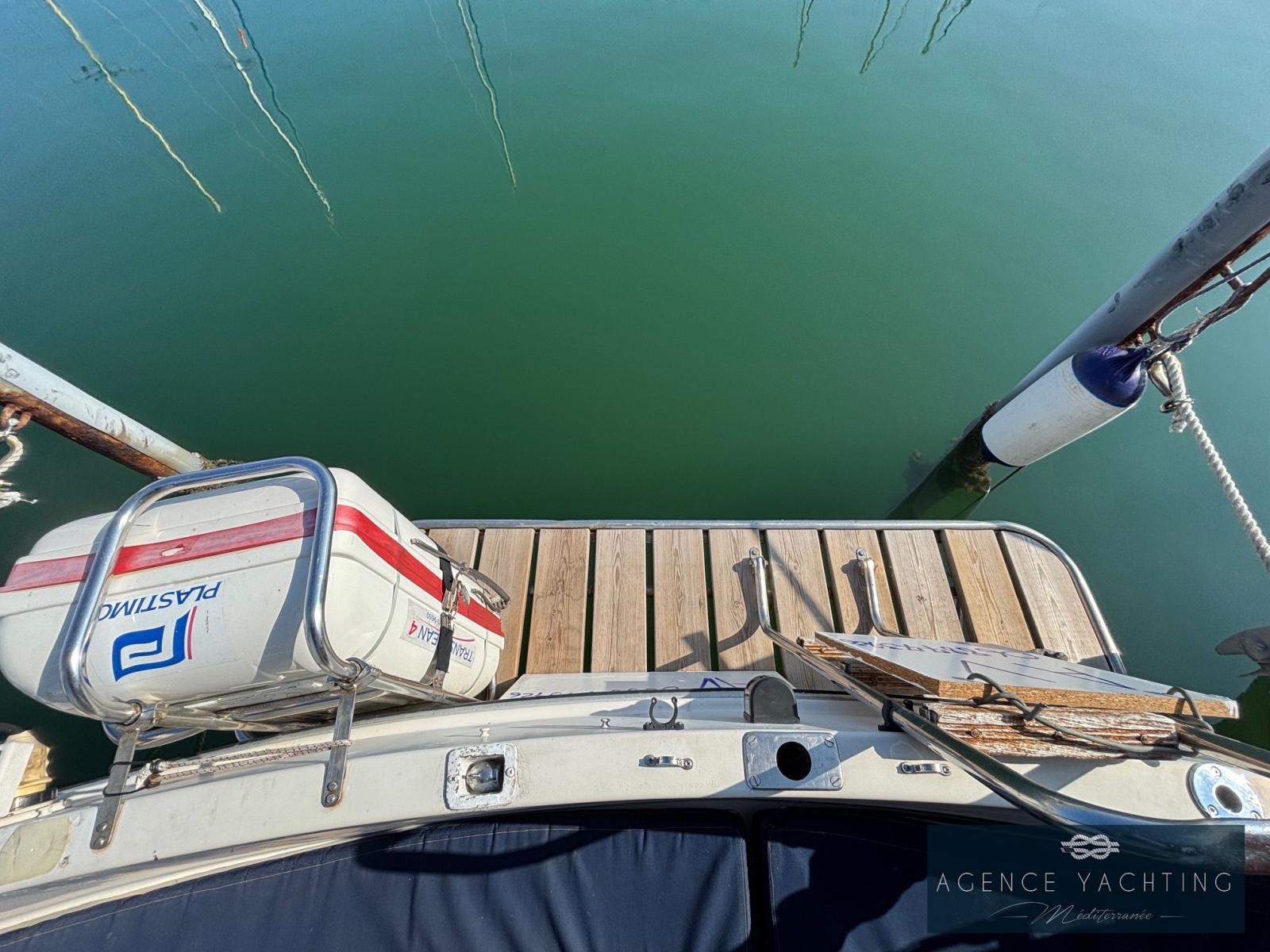 Le Bénéteau Antares 860 est un cabin cruiser polyvalent, conçu pour offrir confort et performance en mer. Avec une longueur de 8,60 mètres, une largeur de 3 mètres, il présente une coque semi-planante dessinée par André Bénéteau, assurant une navigation stable et agréable même par mer agitée.