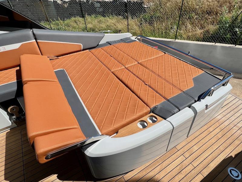 Coussins de bain de soleil sur le pont avant avec porte gobelets et housse