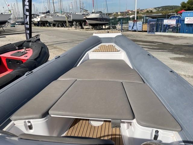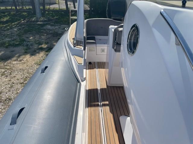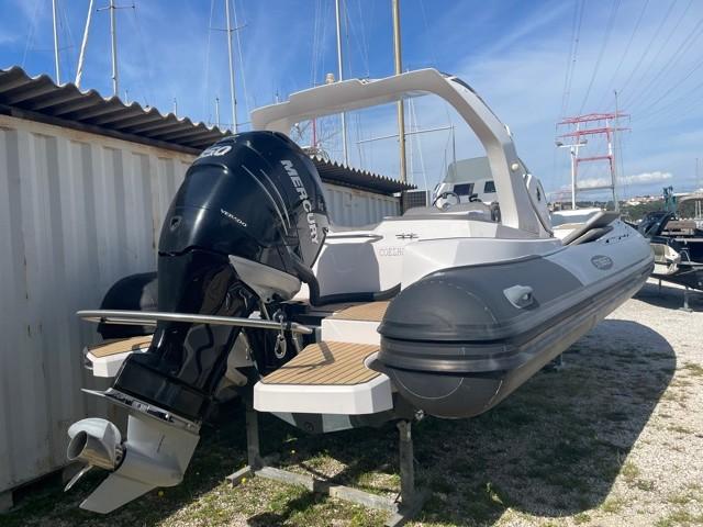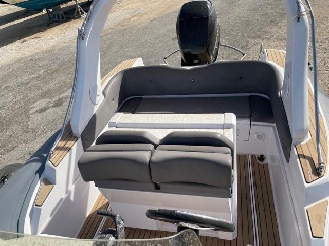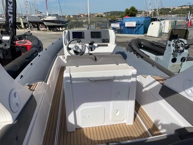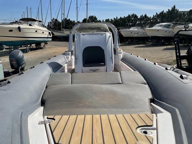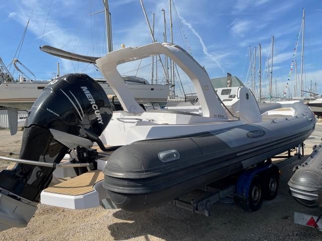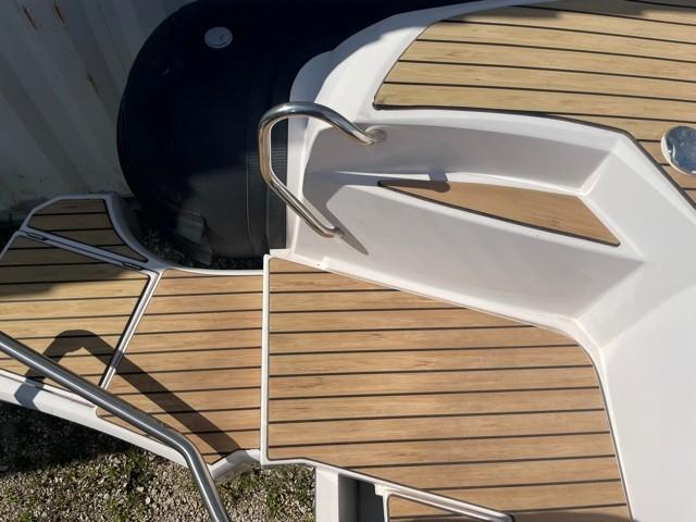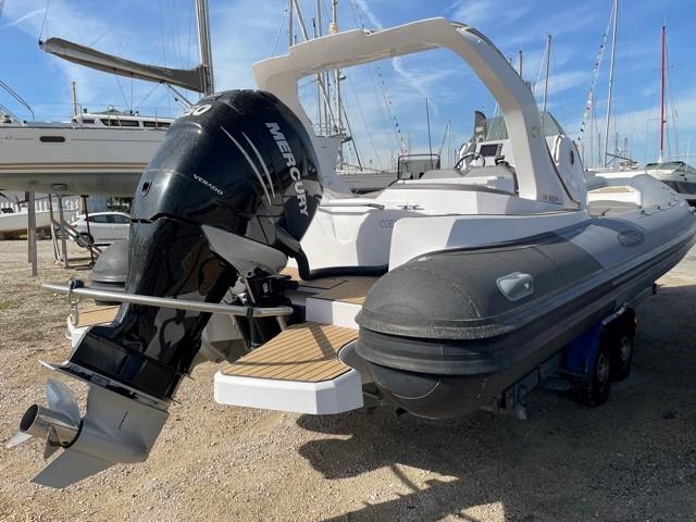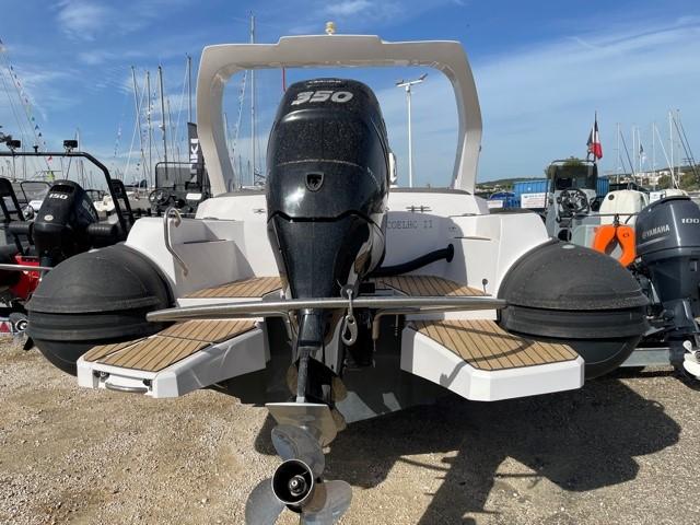 Performance grâce à son moteur 4 temps MERCURY RACING 350CV (170h), confort en navigation grâce à sa carène en V prononcé et le farniente et la liberté de mouvement grâce à son plan de pont.