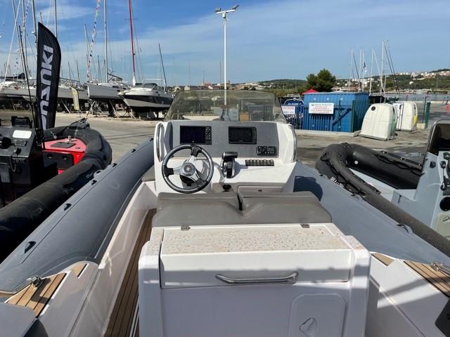 Feux de navigation, klaxon, douchette de cockpit, pompe de cale, direction électro hydraulique.
