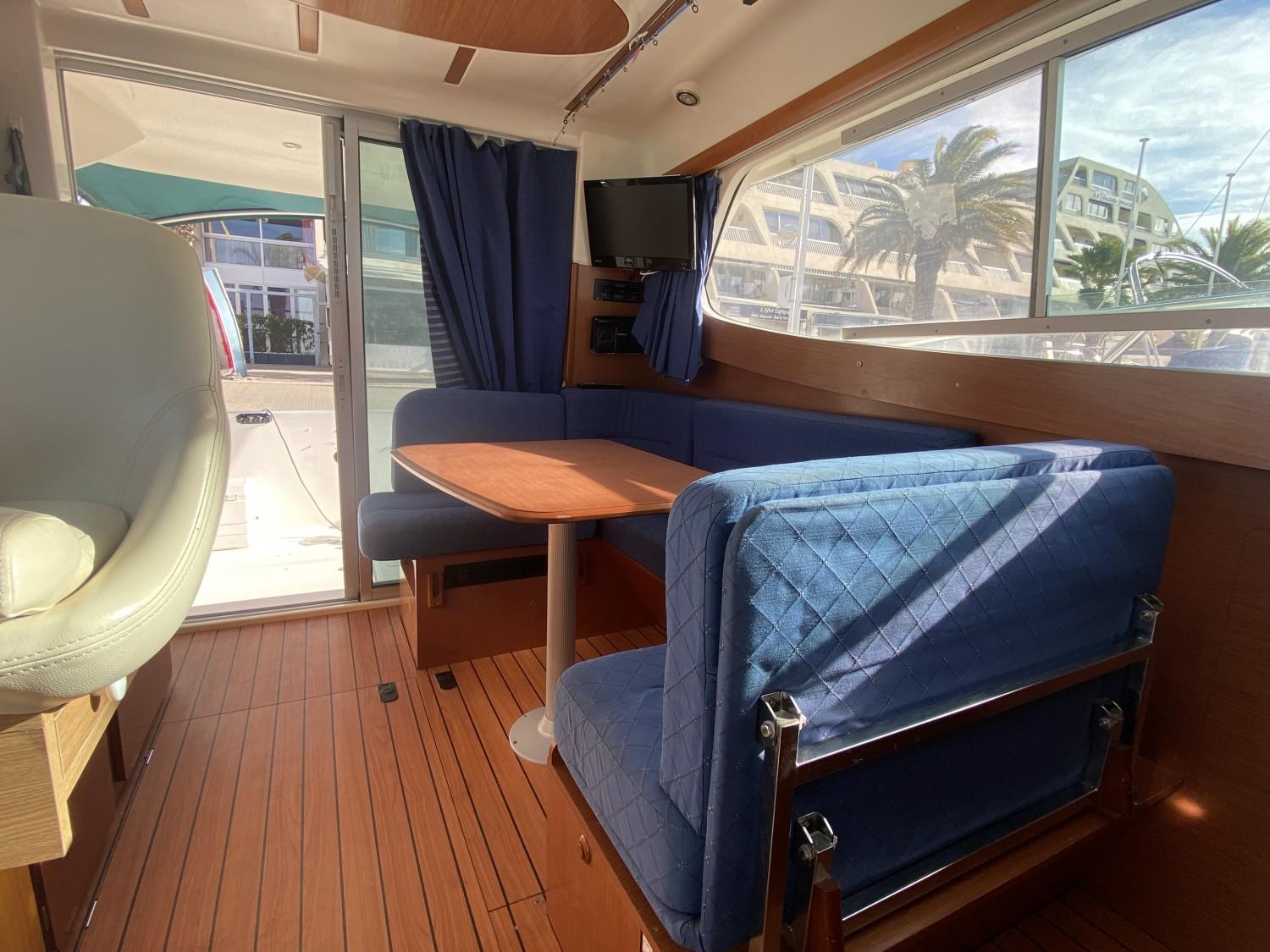 Ce bateau est idéal pour réaliser des sorties pêches grâce à son grand cockpit et la sécurité de 2 moteurs, il pourra aussi vous faire un joli pied à terre au bord de mer à moindre coût.
