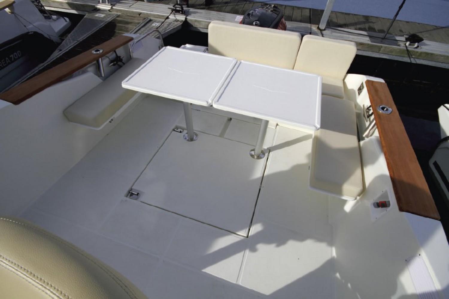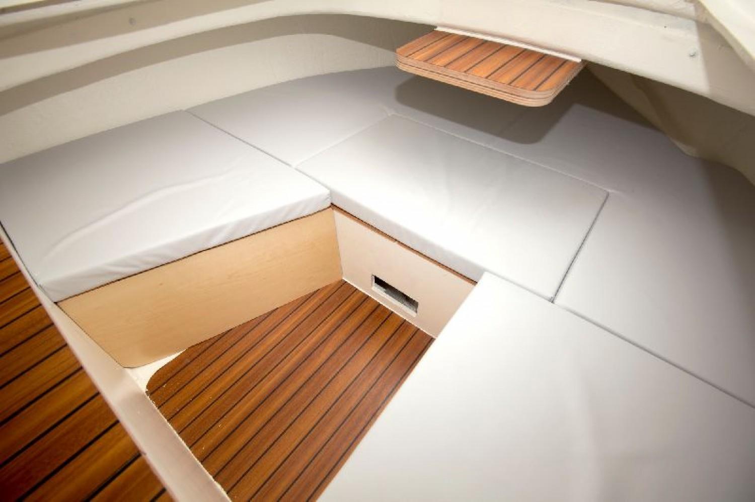 Motorisé jusqu’à 300 cv, il est homologué pour 8 personnes. Avec une longueur de coque (lh) de 6,99 m, ce bateau, comme toute la gamme Ostrea, est exonéré de francisation sur la coque.La taille du cockpit de 2,25 x 2,25 m² avec une belle largeur de passavants sans marche pour circuler autour du poste de pilotage.
