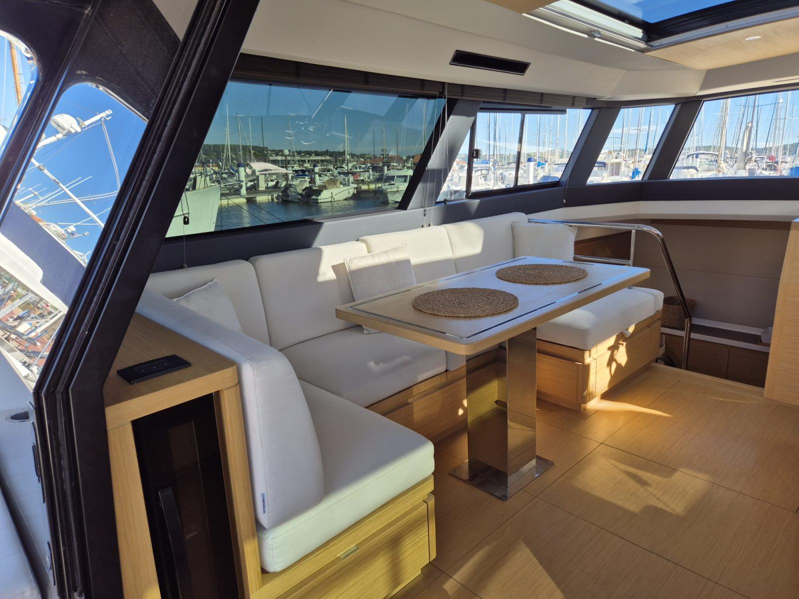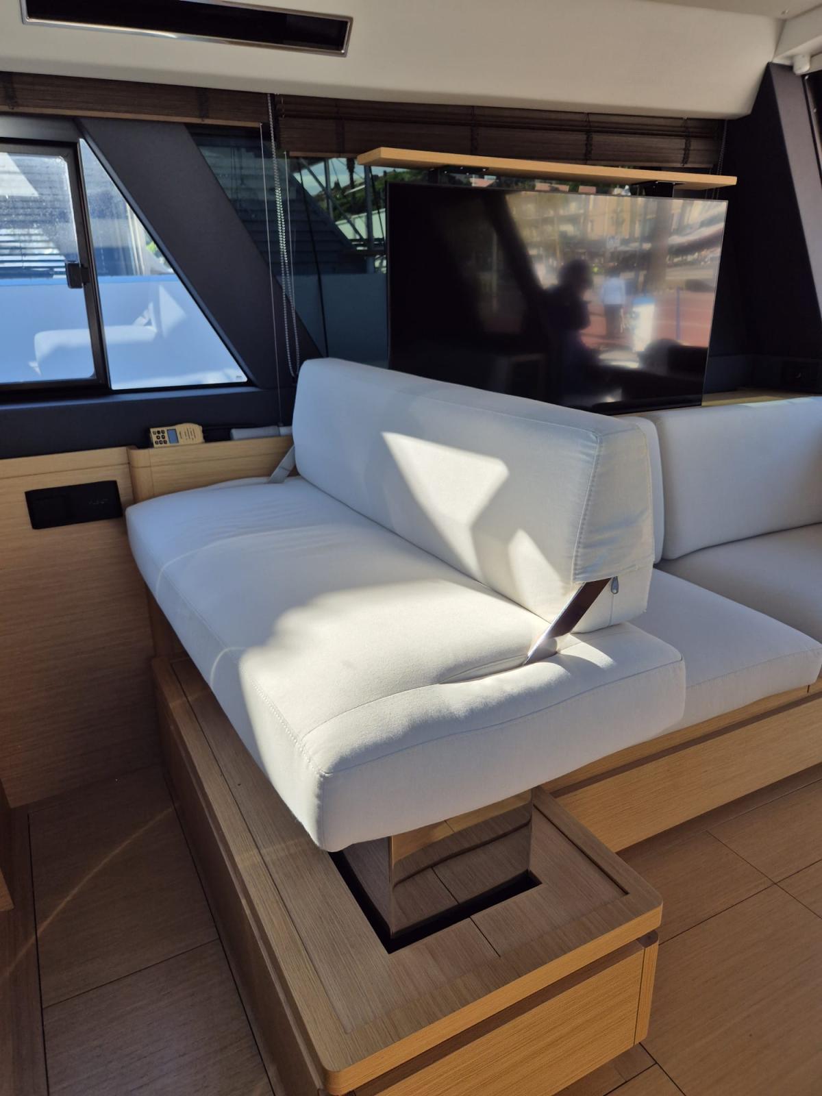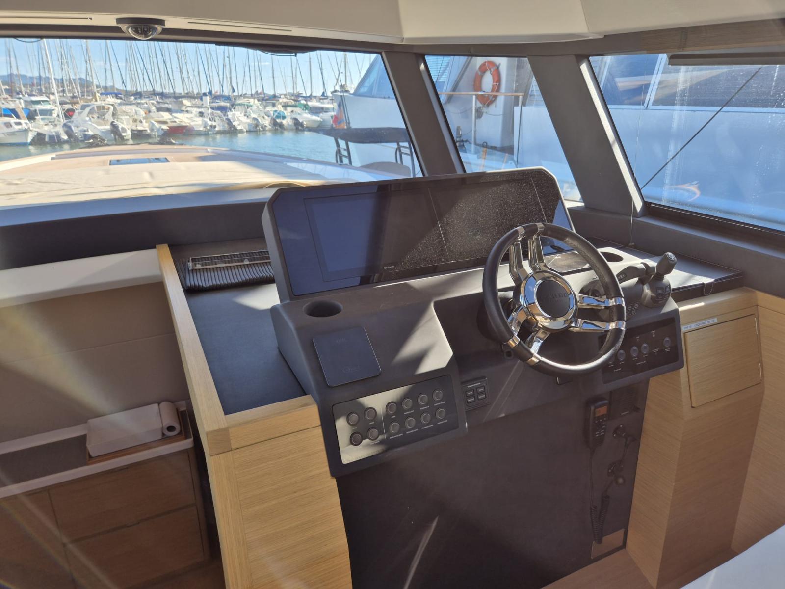 À bord, vous ressentirez immédiatement la différence : un design épuré, des matériaux nobles, une ergonomie pensée pour vivre la mer en toute sérénité. Grâce à la climatisation réversible, au groupe Kholer 12KW, au Joystick et au stabilisateur gyroscopique, chaque sortie devient un cocon de bien-être, même en mer formée.