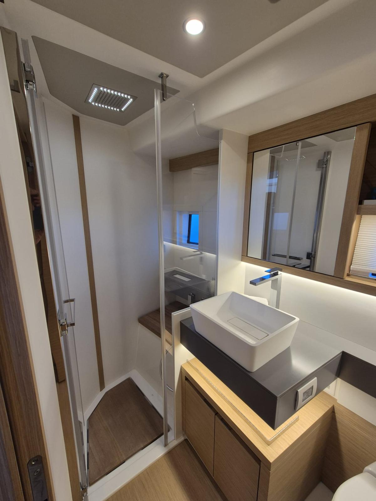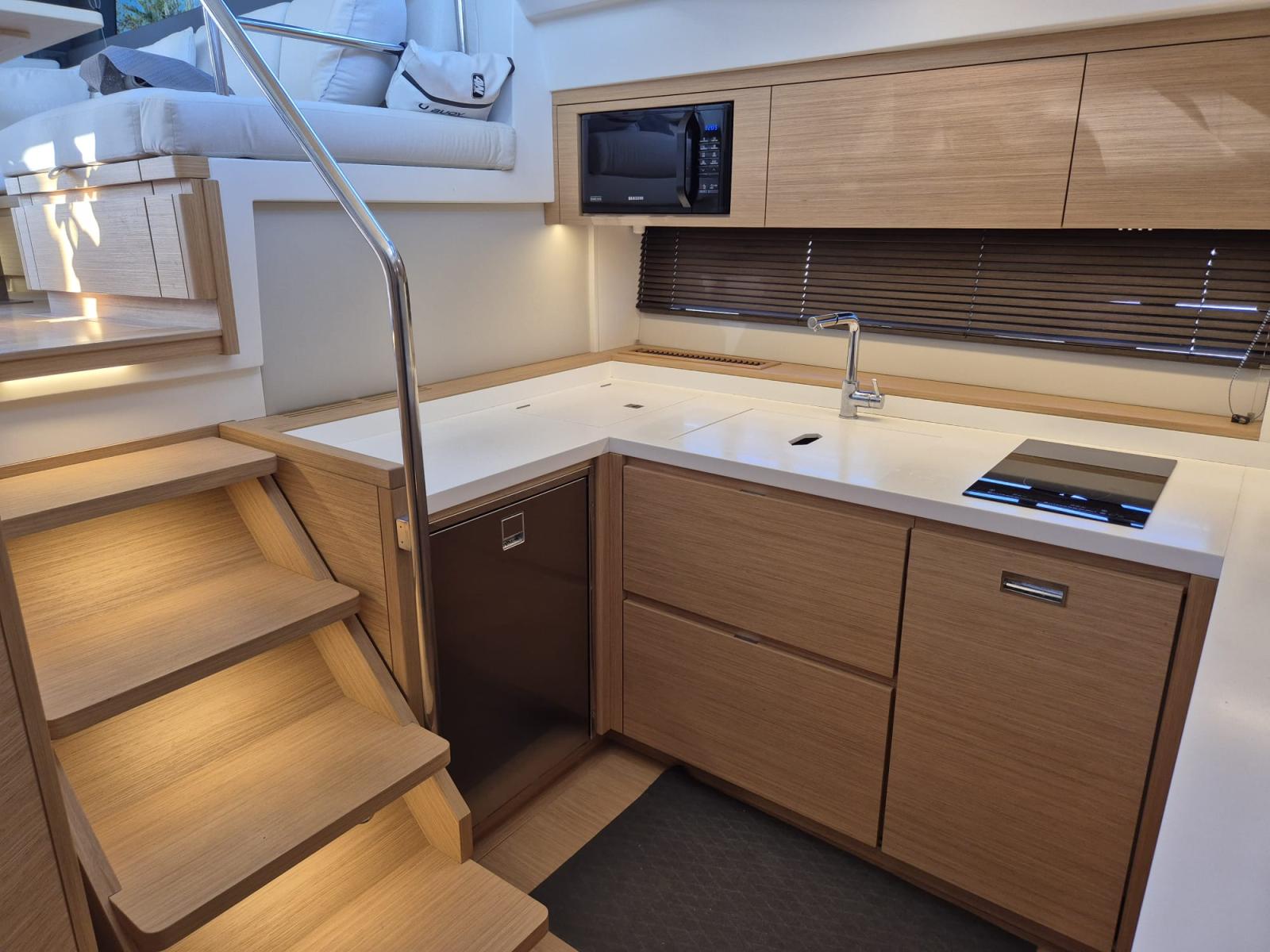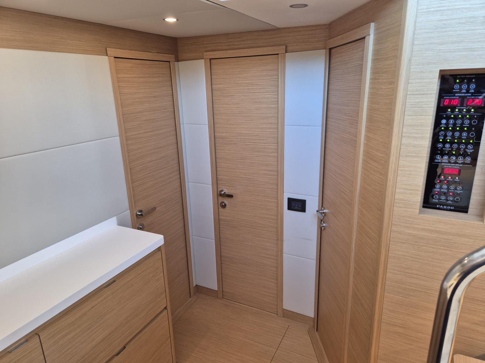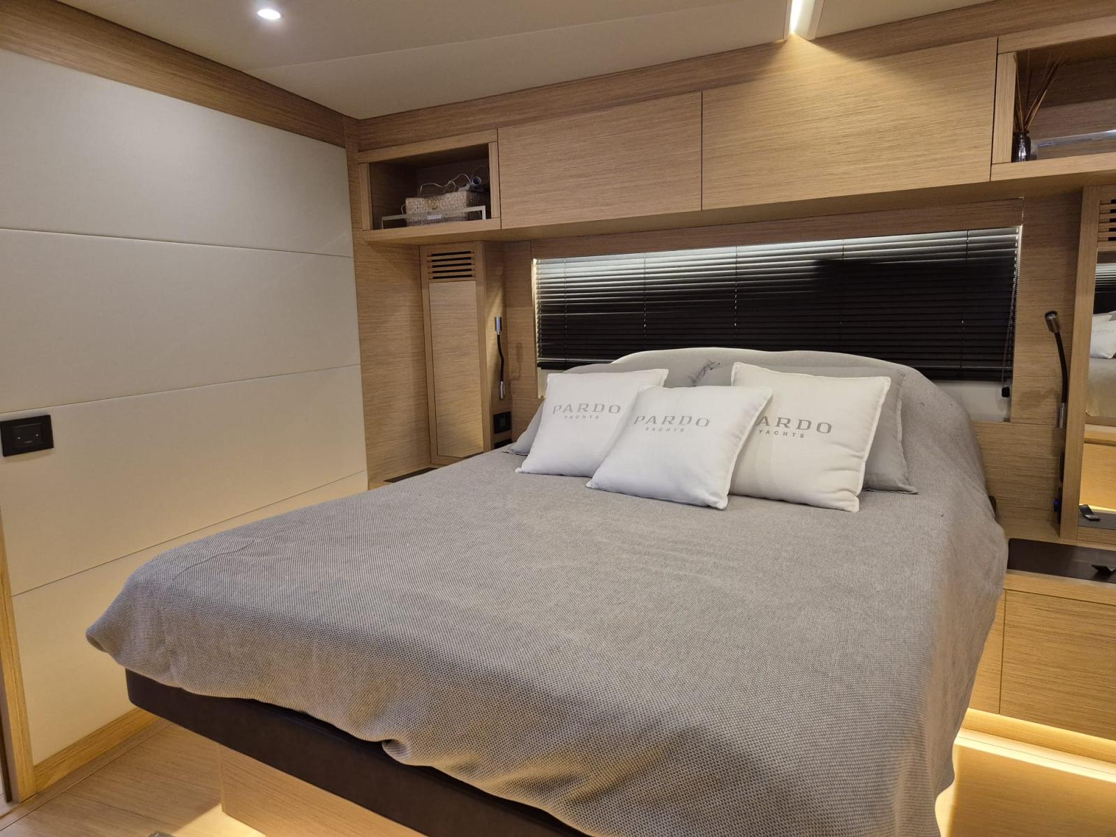 À bord, vous ressentirez immédiatement la différence : un design épuré, des matériaux nobles, une ergonomie pensée pour vivre la mer en toute sérénité. Grâce à la climatisation réversible, au groupe Kholer 12KW, au Joystick et au stabilisateur gyroscopique, chaque sortie devient un cocon de bien-être, même en mer formée.