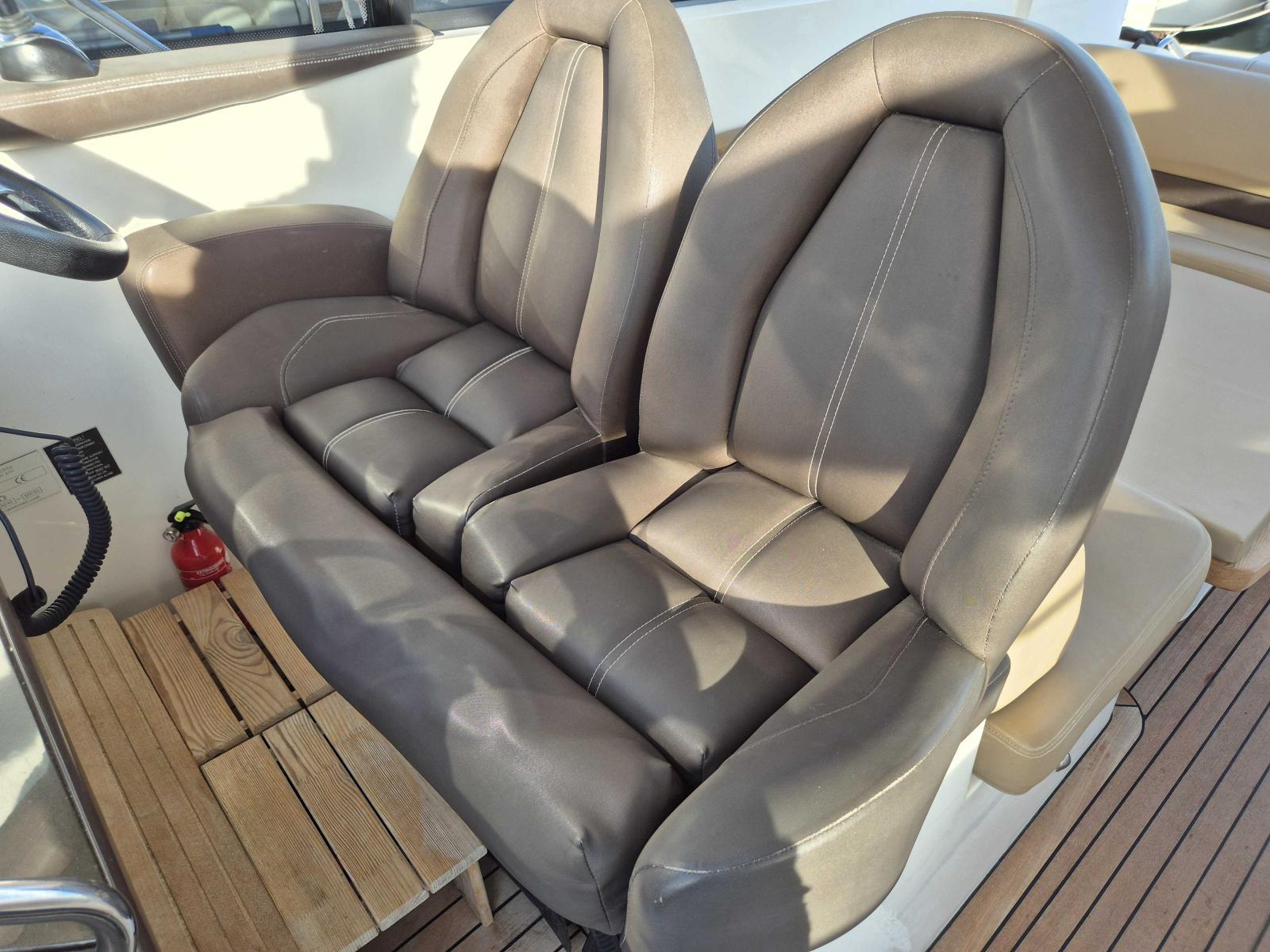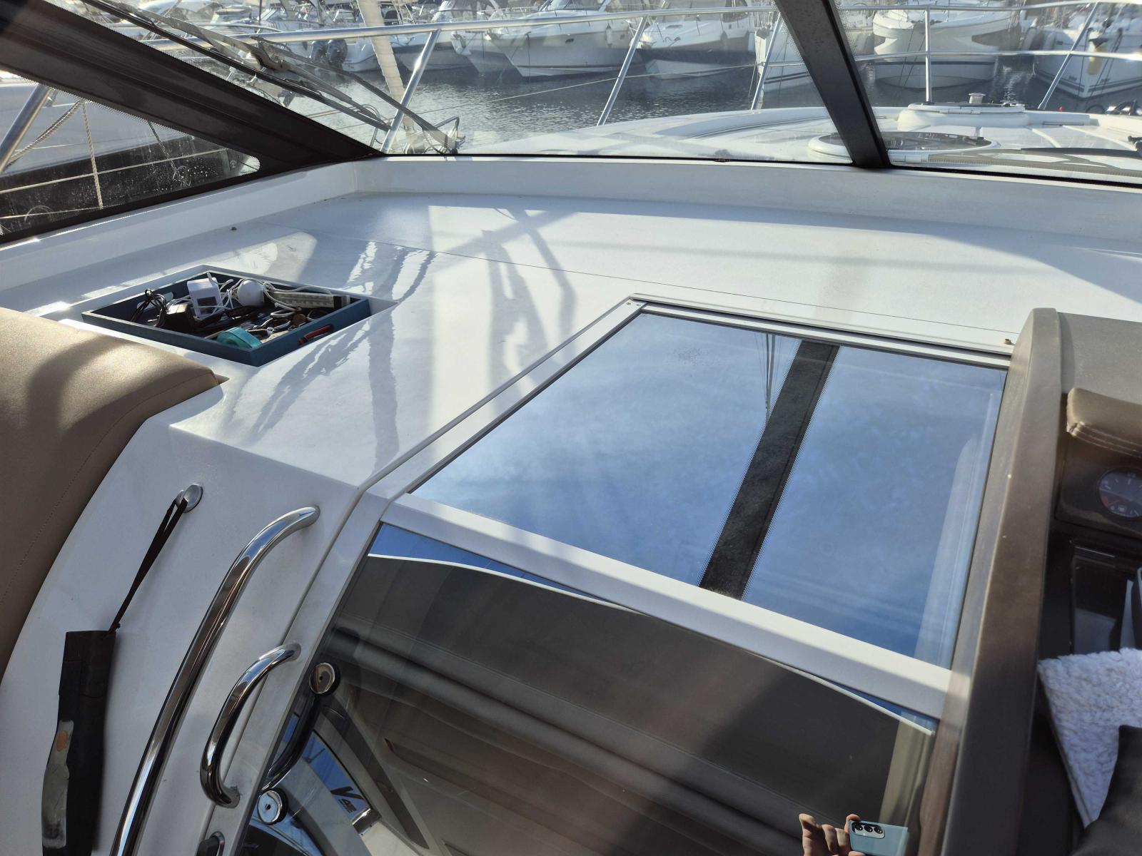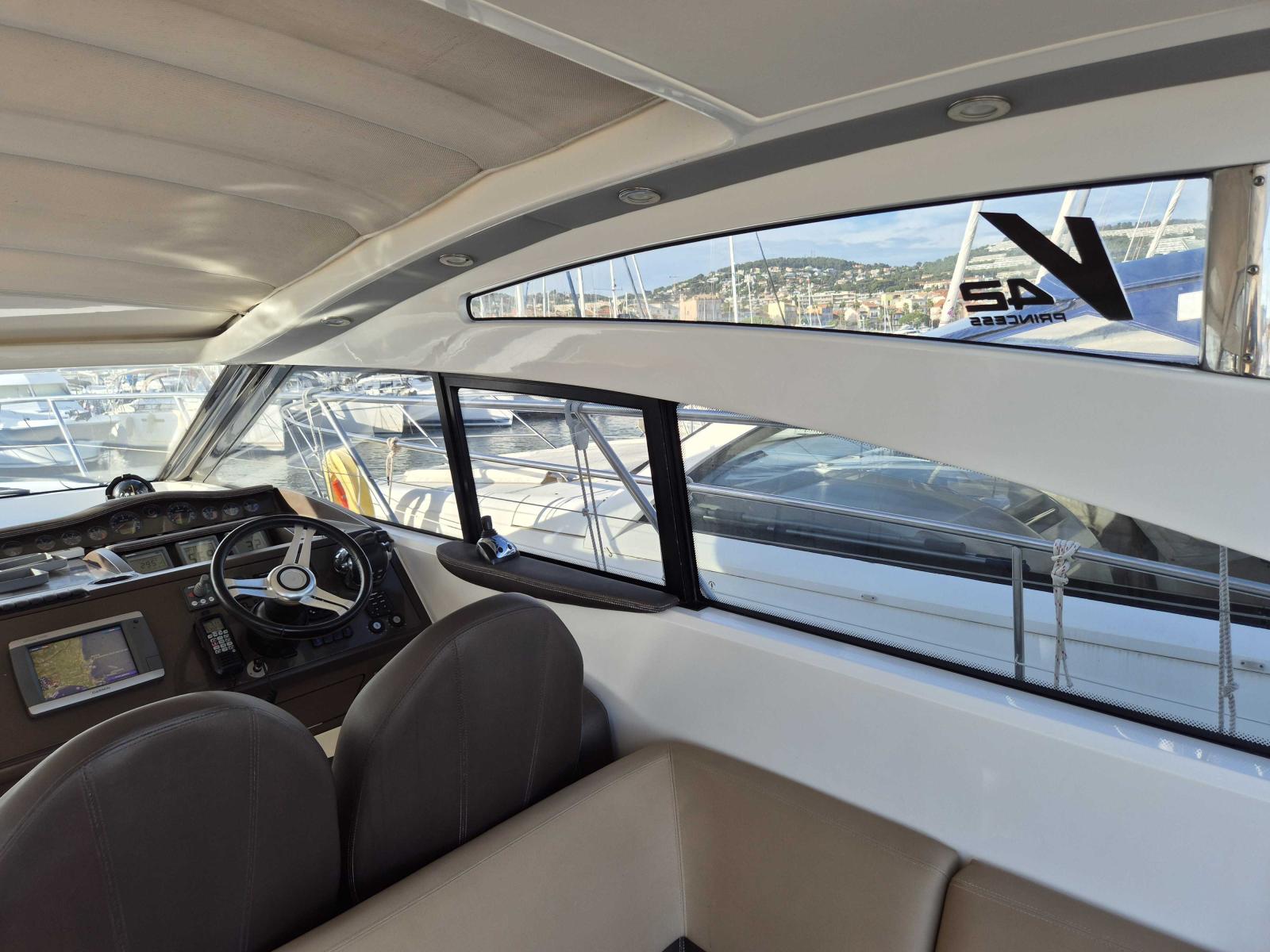 Le cockpit généreux offre un espace convivial avec bain de soleil avant et arrière toit ouvrant électrique et sellerie en parfait état l’intérieur raffiné propose deux cabines spacieuses une cuisine entièrement équipée et une salle d’eau moderne pour un confort optimal à bord profitez de la climatisation réversible du propulseur d’étrave et du garage à annexe pour vos escapades nautiques l’électronique est complète avec GPS traceur pilote automatique VHF sondeur et guindeau électrique entretien suivi avec rigueur ce Princess V42 est prêt à prendre la mer dès aujourd’hui,