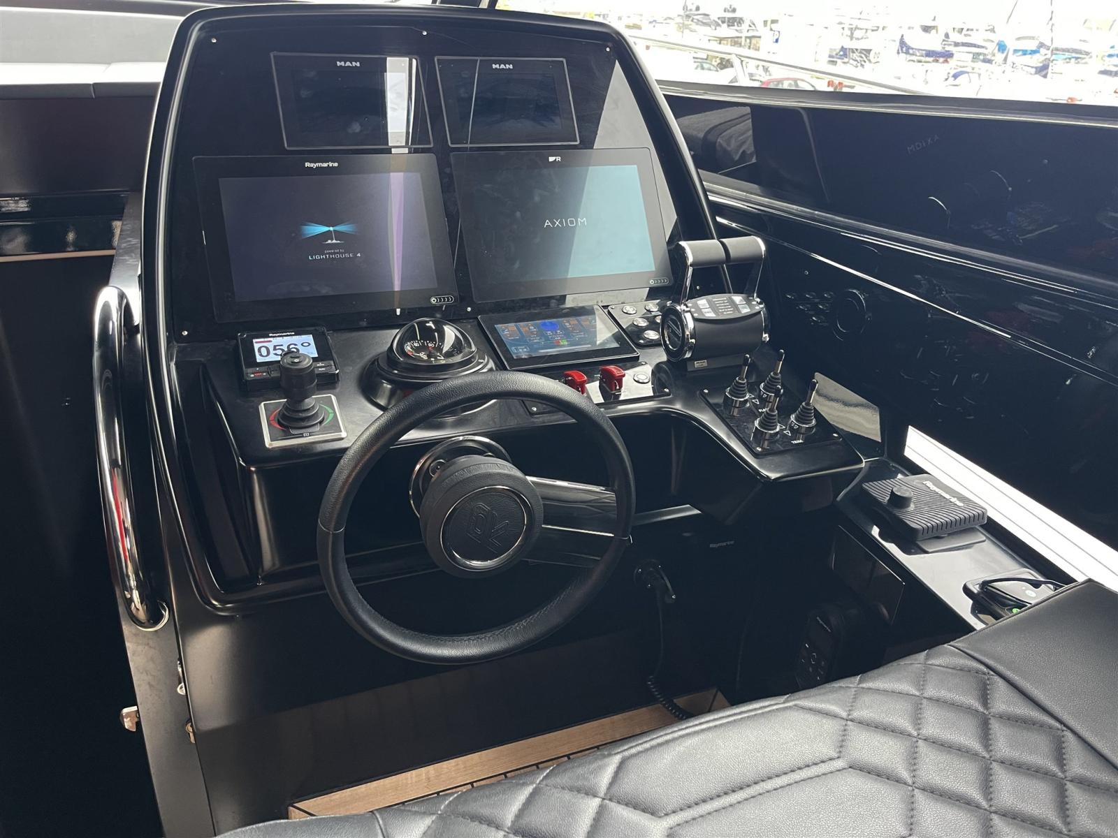 Commande électrique, Ordinateur fixe de bord, Compteur de chaîne, Moniteur, DSC VHF, Joystick (Trim e flap), Cartes et guides, Plotter GPS, Radio VHF (Raymarine), Siège copilote.