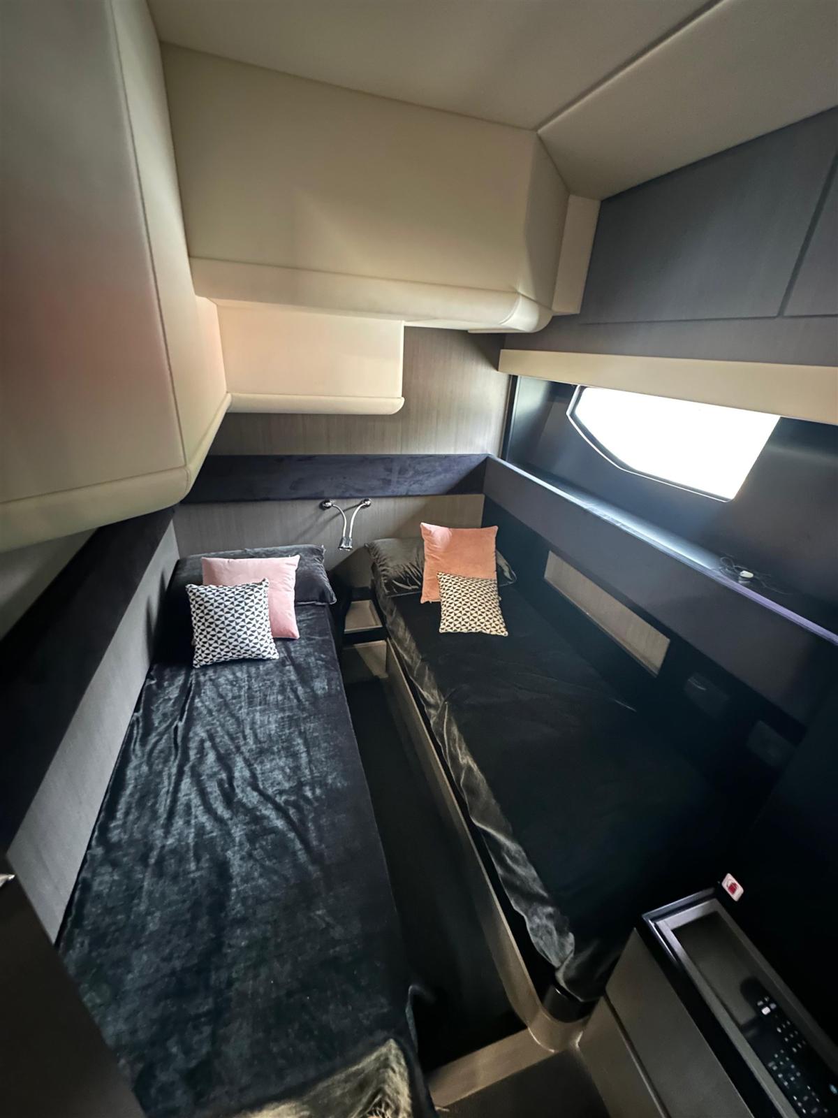 Alarme gaz, Alarme moteur, Alarme de pompe de cale, Ouverture du compartiment moteur électrique, Passavant en teck, Couleur spéciale, Filères, Filière, 2 Douche de cockpit, Phare de poursuite, Flaps électriques, Flaps hydrauliques, Hard top, Extincteur(s) fixe(s), Indicateurs de flaps, Lavabo dans le cockpit, Éclairage de courtoisie, Spots sous-marins, Moniteur de batterie, Passerelle, Pompe de cale automatique, Pompe de Lavage du Pont, Pont en teck, Cockpit en teck, Prise de quai, Connexion eau sous pression à quai, Guindeau électrique, Echelle de bain, table de cockpit (Apribile), Corne, 2 Winch électrique.