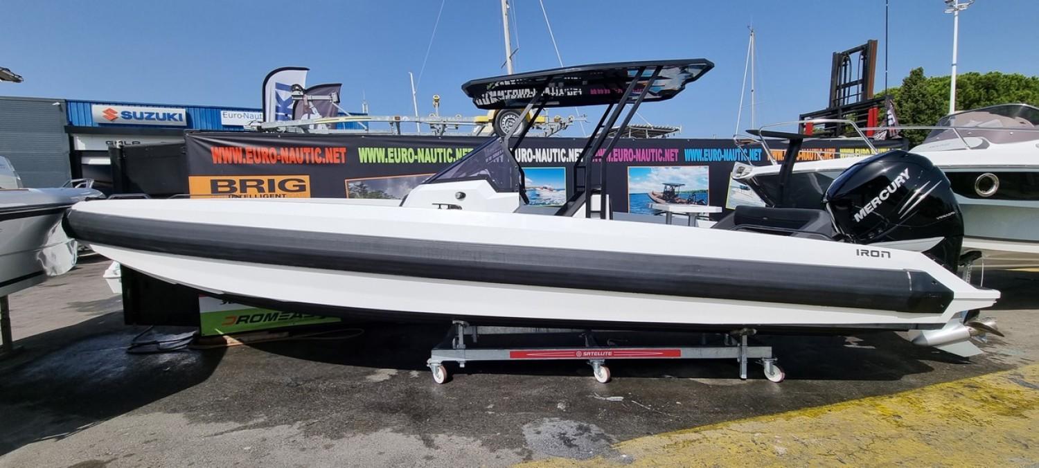 Euronautic, NOUVEAU DISTRIBUTEUR de la marque IRON Boats est très heureux de vous présenter ce model 827 aux lignes très affutées et aux performances redoutables, ils dépassent facilement les 50 Noeuds !!!
