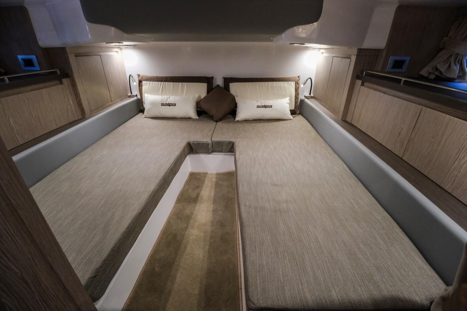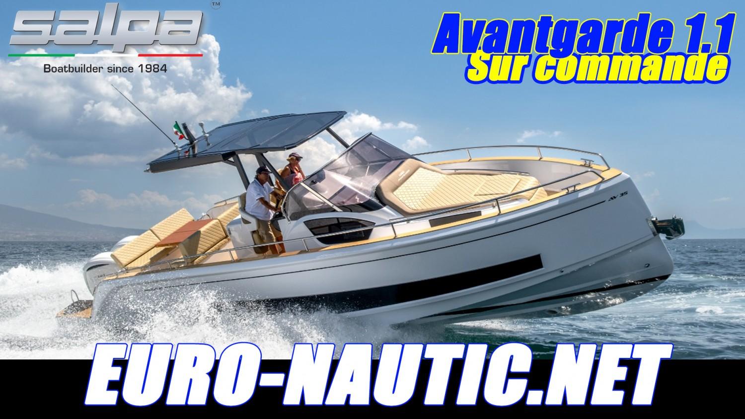 Euronautic Port Camargue concessionnaire de la marque italien SALPA dans le Gard est heureux de vous présenter cette tout NOUVELLE VEDETTE AVANTGARDE 1.1Ce bateau de plus de 11 mètres peut accueillir 12 personnes et vous pouvez y dormir tout en confort à 4 adultes. Son espace à bord a été étudié pour rendre vos sortis des plus agréables, un immense carré arrière vous permettra d'y déjeuner à 8 et se transformera d'un coup d'interrupteur en un gigantesque bain de soleil, mais aussi 2 bains de soleil transat à l'avant.Il existe 3 versions de motorisation:- Bi moteurs hors-bords- BI-MOTORISATION In-Board MERCURY DIESEL V6 3,0L 2x270HP Bravo 3X - HYBRIDE In-BoardPrésentation VIDEOEssai PRESSEEquipement au standard:- 4 couchages, - Salle de bain avec douche séparée, WC électrique avec cuve à eau noire- GPS/Sondeur Garmin 12 pouces avec sonde tableau AR- FLAPS automatiques- Guindeau électrique, Mouillage complet, commandes TBD + AV- KIT Davier electrique télescopique- Eclairage 100% LED cockpit et cabine- Chargeur de batteries + installation 220V + cable de quai- Frigo Inox cockpit à ouverture latérale 90 litres- Plan de cuisson Gaz- Installation Boiler (eau chaude 220V)- Sellerie Spradling Silvertex- Teck synthétique INTEGRAL ------------------- PACK standard prêt à naviguer à partir de 341112€ Ttc -------------------------Le prix à partir de comprend les options aux STANDARDS, les 2 MOTEURS SUZUKI 250V6, la préparation de carène, le transport du chantier à Port Camargue, l'administratif et la prise en main: Bateau clé en main !!!Options disponibles:- Propulseur d'étrave- PACK : douchette à la proue + seconde douchette plages AR + seconde echelle de bain- Générateur diesel 2KWA- Air conditionné 16000 BTU 220V- Second GPS/Sondeur Garmin 12 pouces - Pilote automatique Garmin (Version inboard I.B)- RADAR Garmin GMR 18 HD - Convertisseur Mastervolt 12/230 1500W- VHF fixe GARMIN AIS/DSC avec antenne- Televiseur LED 26'' avec antenne- Table de cockpit électrique- Kit LED cockpit x6 + Spots sous marins x2 - - TTOP aluminium noir & Plexiglas Sureshade (remplace Roll Bar)- Tente electrique telescopique pour version TTOP - - Kit baches micro perforées carré AR (uniquement avec option TTOP+TENTE éléctrique)- Kit voile d'ombrage + 4 mats carbone pour bain de soleil AV - Devis sur demande.Financement LOA sur étude.N'hésitez pas à nous contacter pour plus de renseignement.Bateau semi-rigide similaire à: FJORD, PARDO, SAXDOR, INVICTUS, FAIRLINE, AXOPAR, JEANNEAU, BENETEAU, RANIERI, RIO, SESSA, GALEON, PARKER, SEALINENos secteurs: Port Camargue, Grau du Roi, Grande Motte, Carnon, Palavas, CAP d’Agde, Nîmes, Montpellier, Arle, Ales