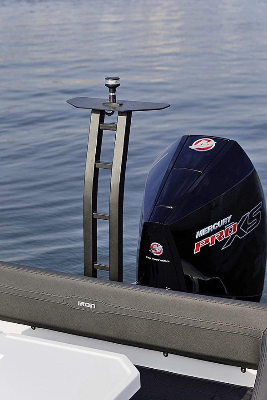 La proue haute maintient le bateau au sec dans des conditions de mer agitées. Le franc bords bas diminue le poids, ce qui lui donne un bon équilibre. La console centrale offre une répartition parfaite du poids et permet une bonne circulation dans les IRON Boats.