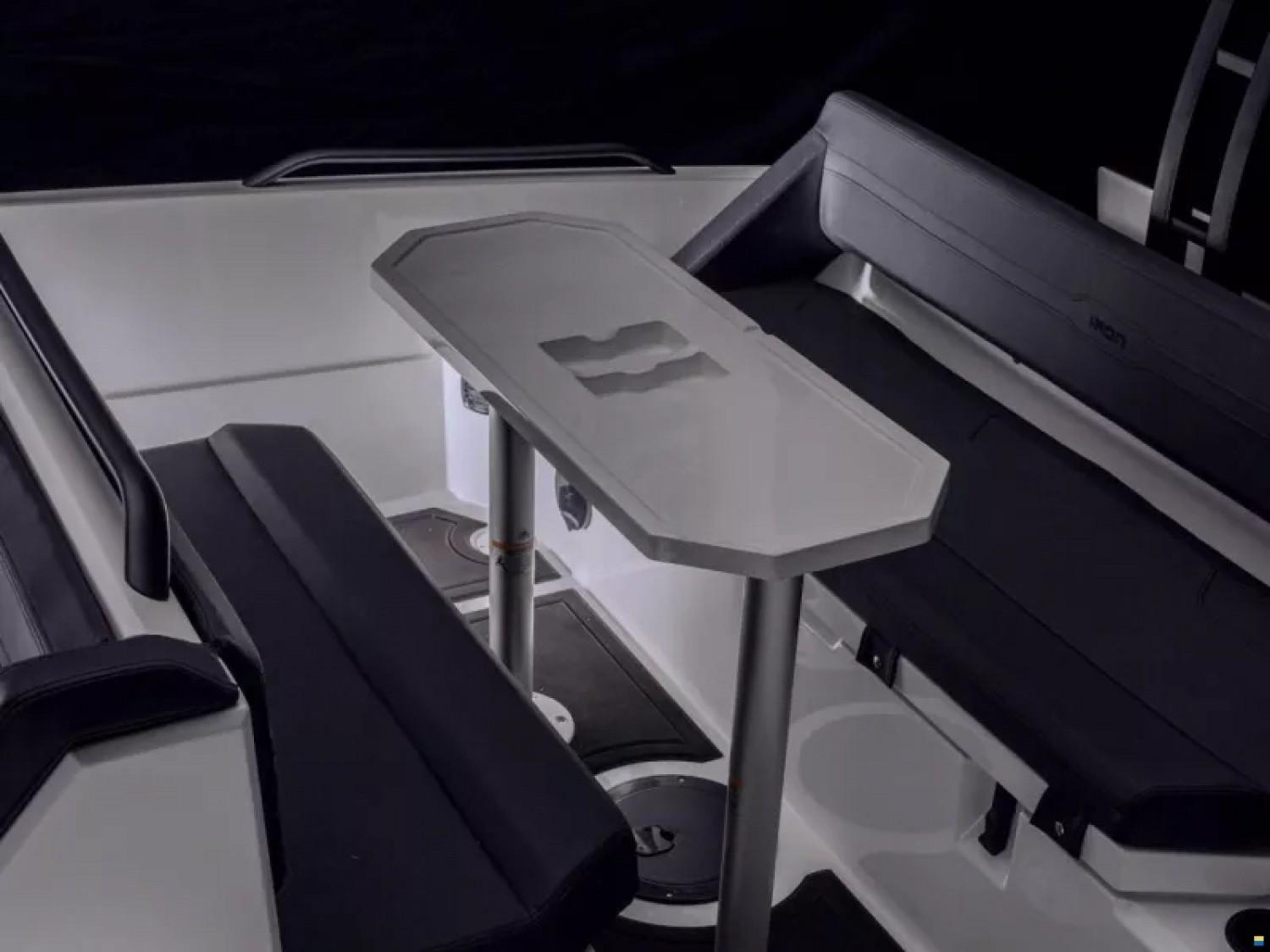 De grands compartiments de rangement à l'avant, à l'arrière et dans la console centrale, associé à un pole de ski nautique et à des plateformes de bain facilement accessibles, font du IRON un bateau facile et agréable.