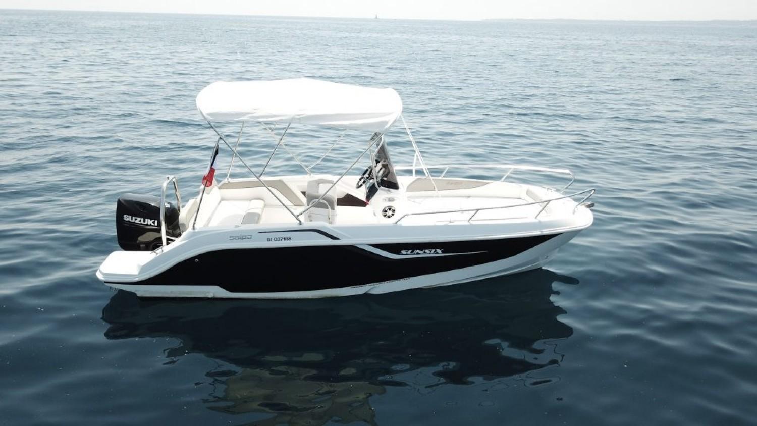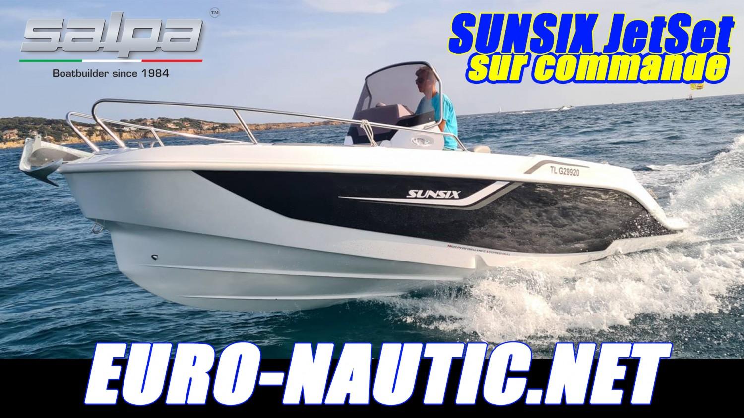 EuroNautic NOUVEAU CONCESSIONNAIRE de la très réputé marque Italienne SALPA, vous propose ce SUNSIX JetSet Concentré de savoir-faire: Ergonomie à bord et carène uniques. La conception, la modularité de ses aménagements inspirés du SOLEIL 20, confèrent au SUNSIX un réel avantage sur la concurrence Une carène et un rendement exceptionnel pour cet open de 6,15m. Passion et innovation sont les moteurs de notre marque. Le tableau de bord ergonomique et protégé par un grand pare brise, permet l'installation de tous les équipements complémentaires. SUNSIX version JETSET, un style et une élégance uniques, carène bleu ciel ou noire, équipement standard pléthorique. Les immenses plages de bains arrières sont une invitation à la baignade et à la pratique des sports nautiques. Le bain de soleil avant est convertible avec 2 extensions, le plus confortable de sa catégorie. La banquette arrière est convertible, l'assise coulisse et le dossier se rabat pour offrir la plus grande surface de bain de soleil de sa catégorie. L'évier et la table de cockpit rabattable s'intègrent parfaitement sous le siège pilote.La console centrale facilite et sécurise les déplacements à bord avec une grande surface au sol.Leaning post ergonomique avec mains courantes inox. carène offshore en V étroit à step, permettent au Sunsix d'afficher des rendements exceptionnels dans un confort et une sécurité en mer sans concurrence. Passion et innovation sont les moteurs de notre marque.Ce model est équipé au standard:2 Plages arrières avec échelle de bain inox télescopique - Gelcoat latéral coque de couleur (noir ou bleu ciel) - Balcon inox - Feux de navigation - Tableau électrique - Prise 12V pour smartphone - Pompe de cale automatique - Console de pilotage avec rangement - Siege pilote avec meuble cuisine - Pare brise - Mains courantes inox - Tableau de bord - Corne de brume électrique - 4 taquets d'amarrage Inox - Nombreux coffres de rangement - Support extincteur encastré - Extincteur - Capot ouvrant(mouillage) à la proue - Sellerie matelassée à motifs pointes de diamant bicolore assortie à la couleur de coque choisie - Ventilation Blower compartiment réservoir à carburant - Volant de direction - Direction hydraulique < 115HP - Compas magnétique - Installation eau sous pression évier et douchette arrière avec réservoir 30 litres - Table de cokpit avec pied inox - Installation révervoir à carburant fixe 90 litres avec nable de remplissage - Kit extension bain de soleil avant et arrière - rangement latéraux - crochets de remorquage : x1 avant et x2 arrières - manuel du proriétaireFiche produitVidéoEssai presseComparatif Coque Open ou Semi-rigidePour tout DEVIS personnalisé, n'hésitez pas à nous consulter, Financement LOA sur étude, remorque possible...Ce sont des bateaux similaires aux BENETEAU Flyer , JEANNEAU Cap Camarat, Quicksilver Activ, Pacific Craft, Bayliner, Ranieri45900Nos secteurs: Port Camargue, Grau du Roi, Grande Motte, Carnon, Palavas, CAP d’Agde, Nîmes, Montpellier, Arle, Ales