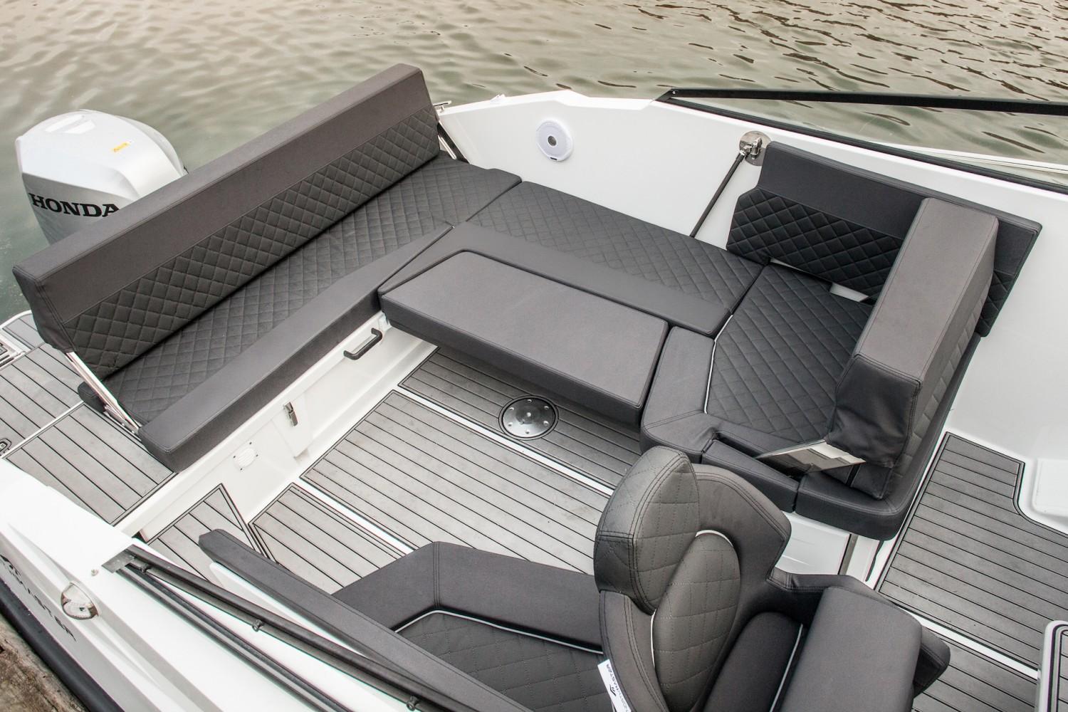 Ce bateau avec cabine 2 couchages, WC, Carré transformable en bain de soleil, banquette arrière réversible, évier, frigo, poste de pilotage très sécurisas,.. Vous est proposer prêt à naviguer au prix de lancement de 79000€ (4 premières photos)