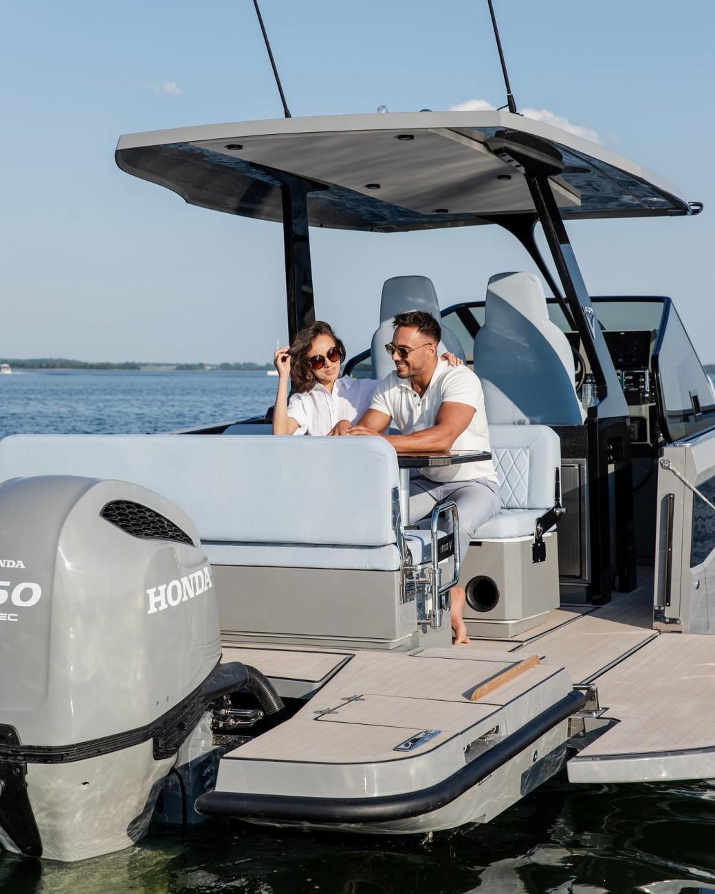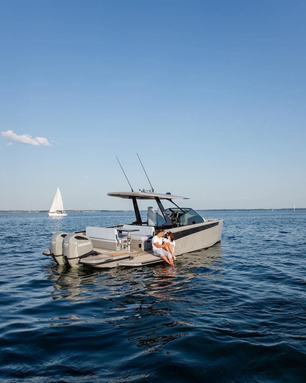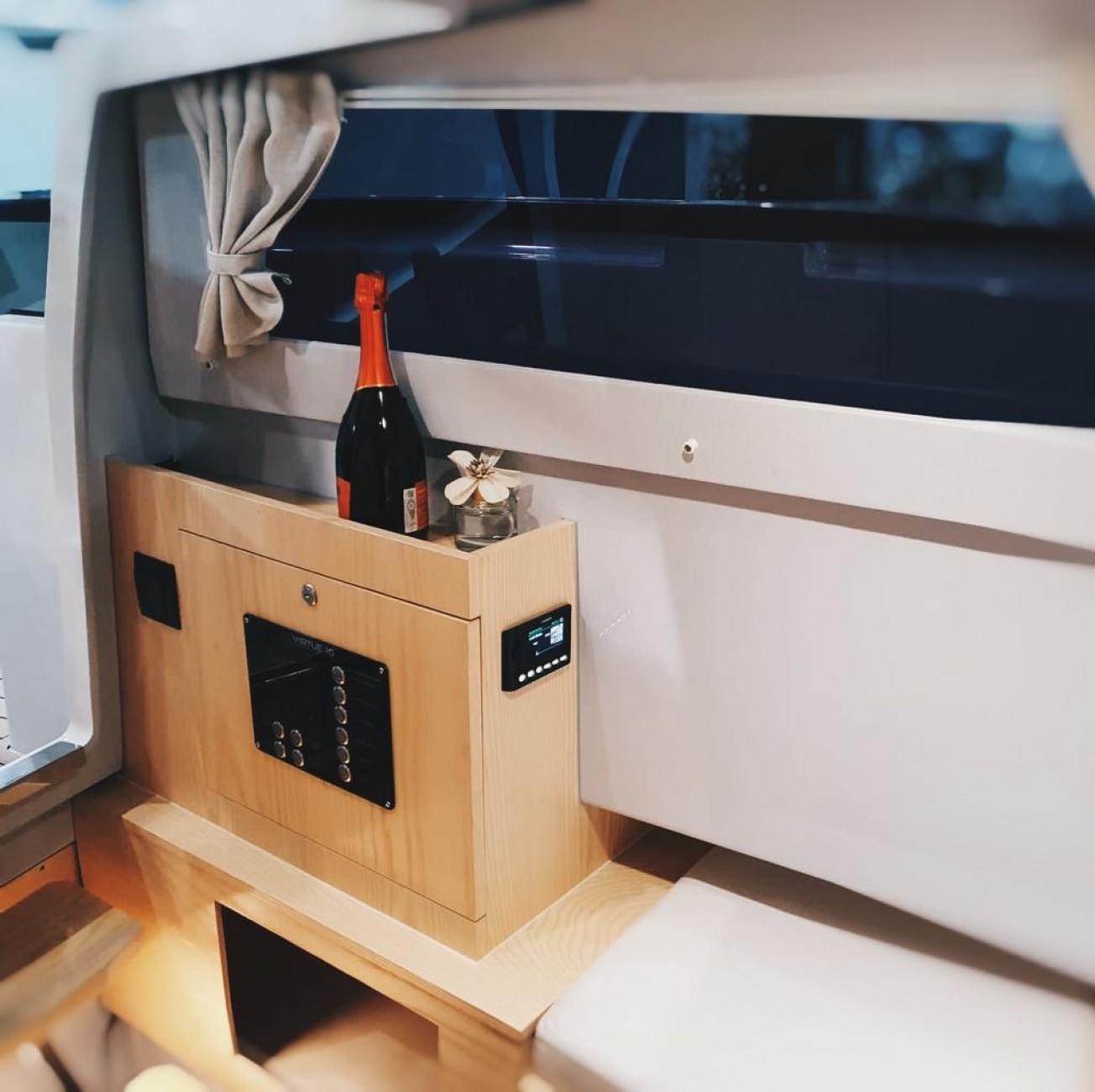 Ce day boat réuni tous ce que vous recherchez pour passer une journée inoubliable en famille ou entre amis, un espace arrière spacieux et très bien réfléchi avec son coin repas accueillant facilement 6 personnes, qui se transforme en un clin d'oeil en immense bain de soleil. Un deuxième bain de soleil avant vous permettrons des moments plus intimistes.