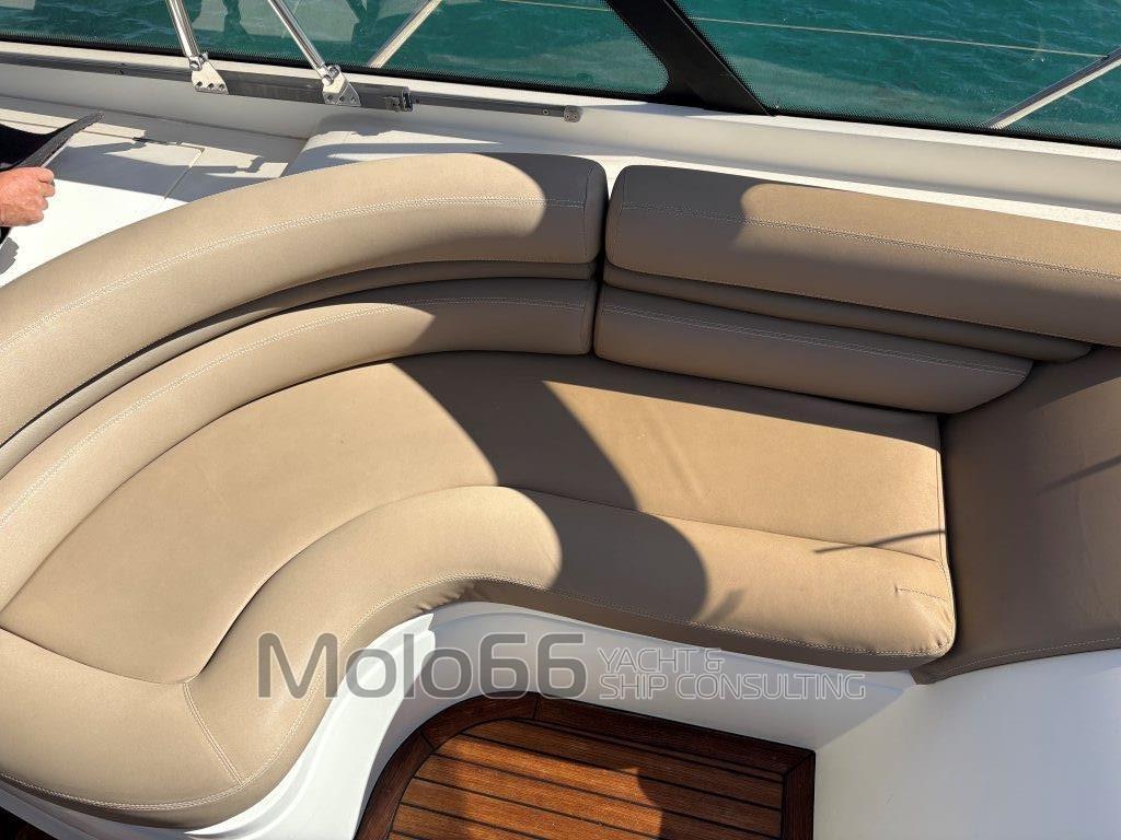 Alarme moteur, Alarme de pompe de cale, Eau sous pression, Câble d’alimentation à quai, Douche de cockpit, Flaps hydrauliques, Garage à annexe, Extincteur(s) fixe(s), Lavabo dans le cockpit, Éclairage de courtoisie, Passerelle, Cockpit en teck, Prise de quai, Guindeau électrique, Echelle de bain, table de cockpit, Corne.