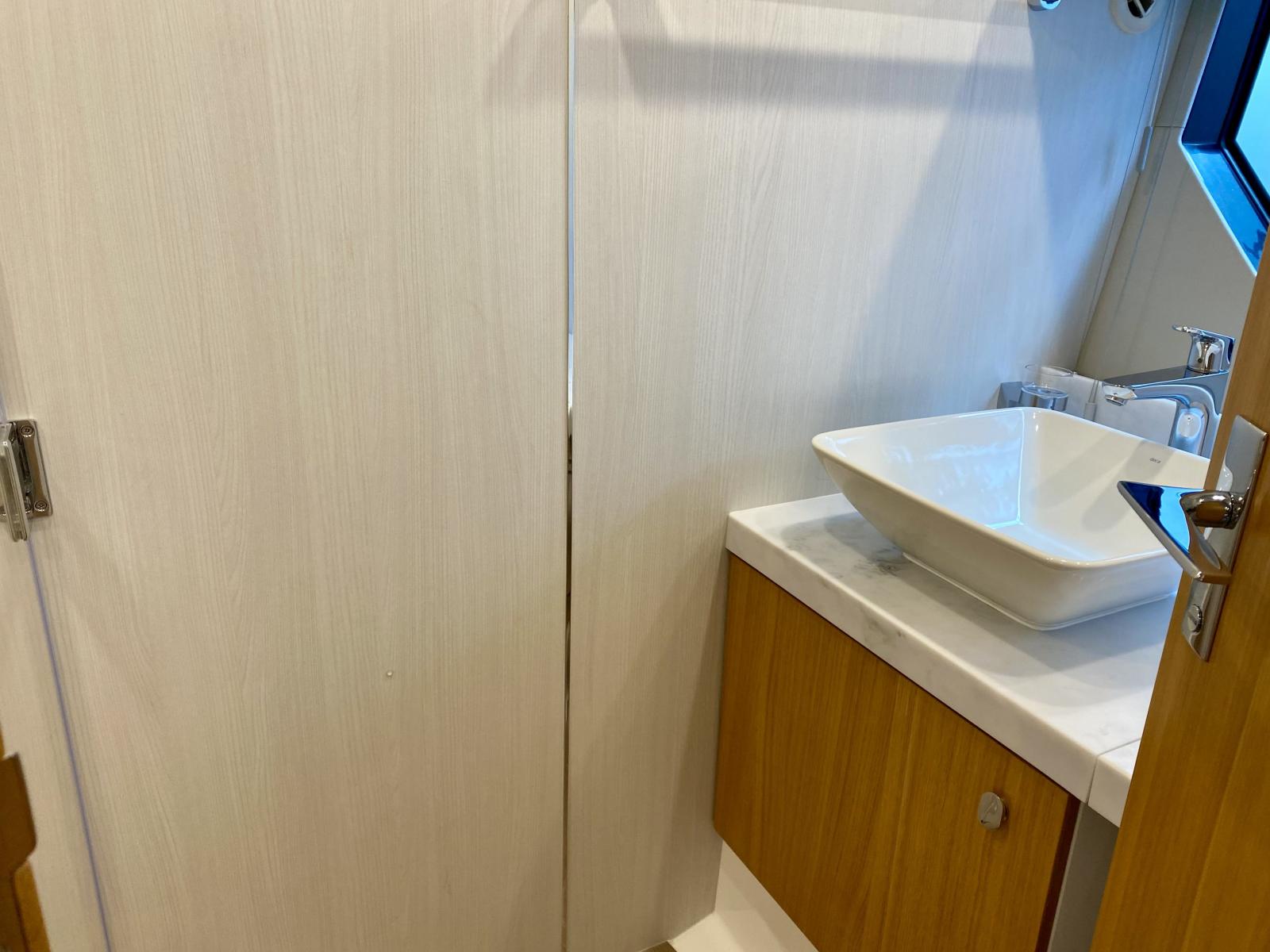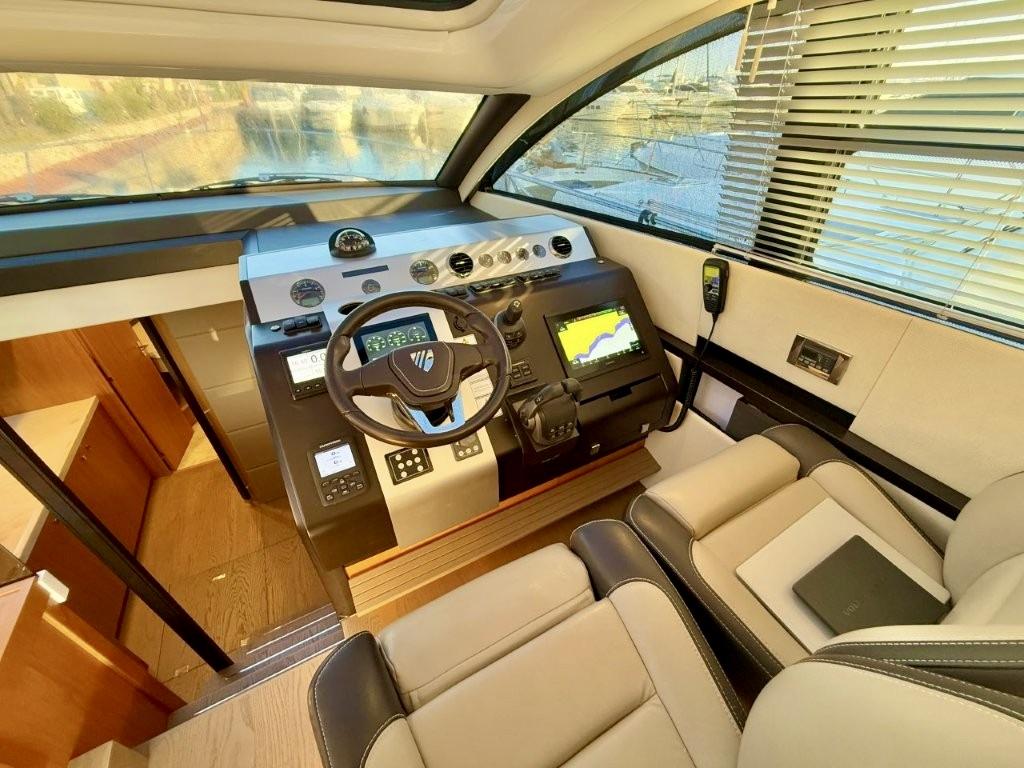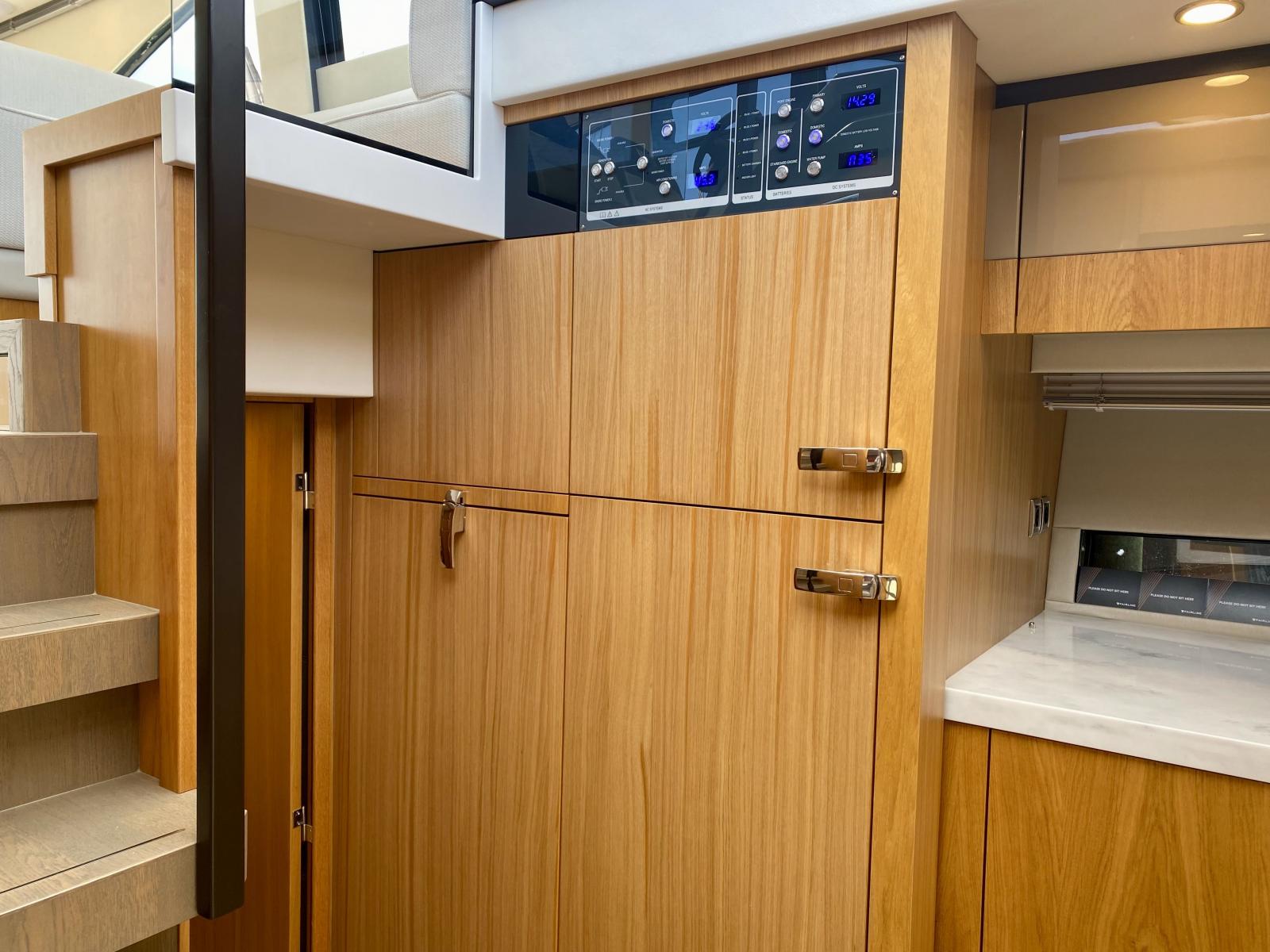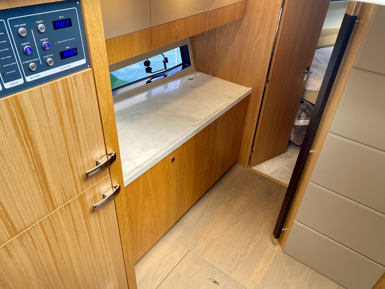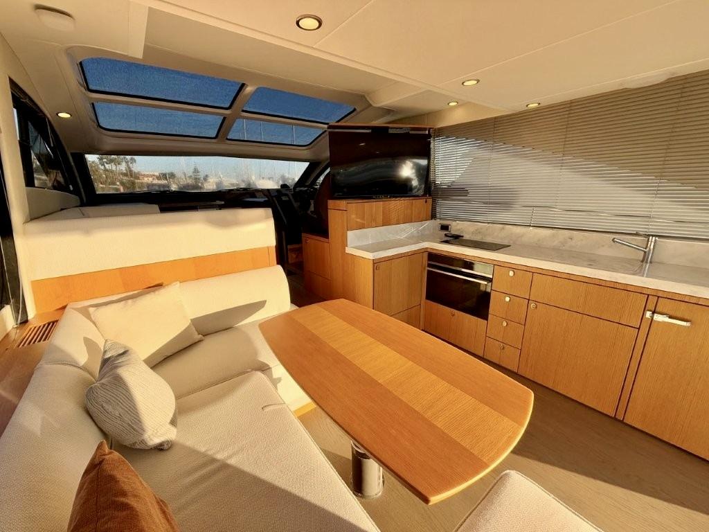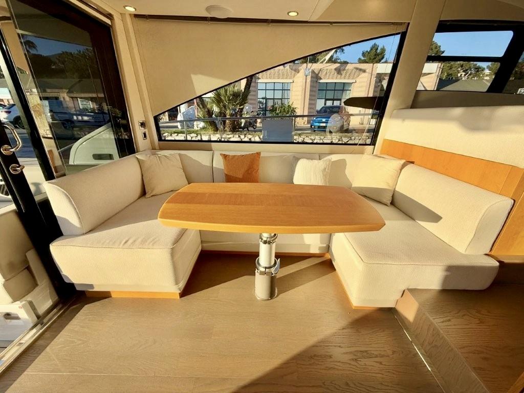 Agencement 3 cabines avec lits superposés au lieu d’une dinette - Commode avec tiroirs au lieu d'un sofa dans cabine centrale- Moquette Arani Cloudy Grey tissé à la main