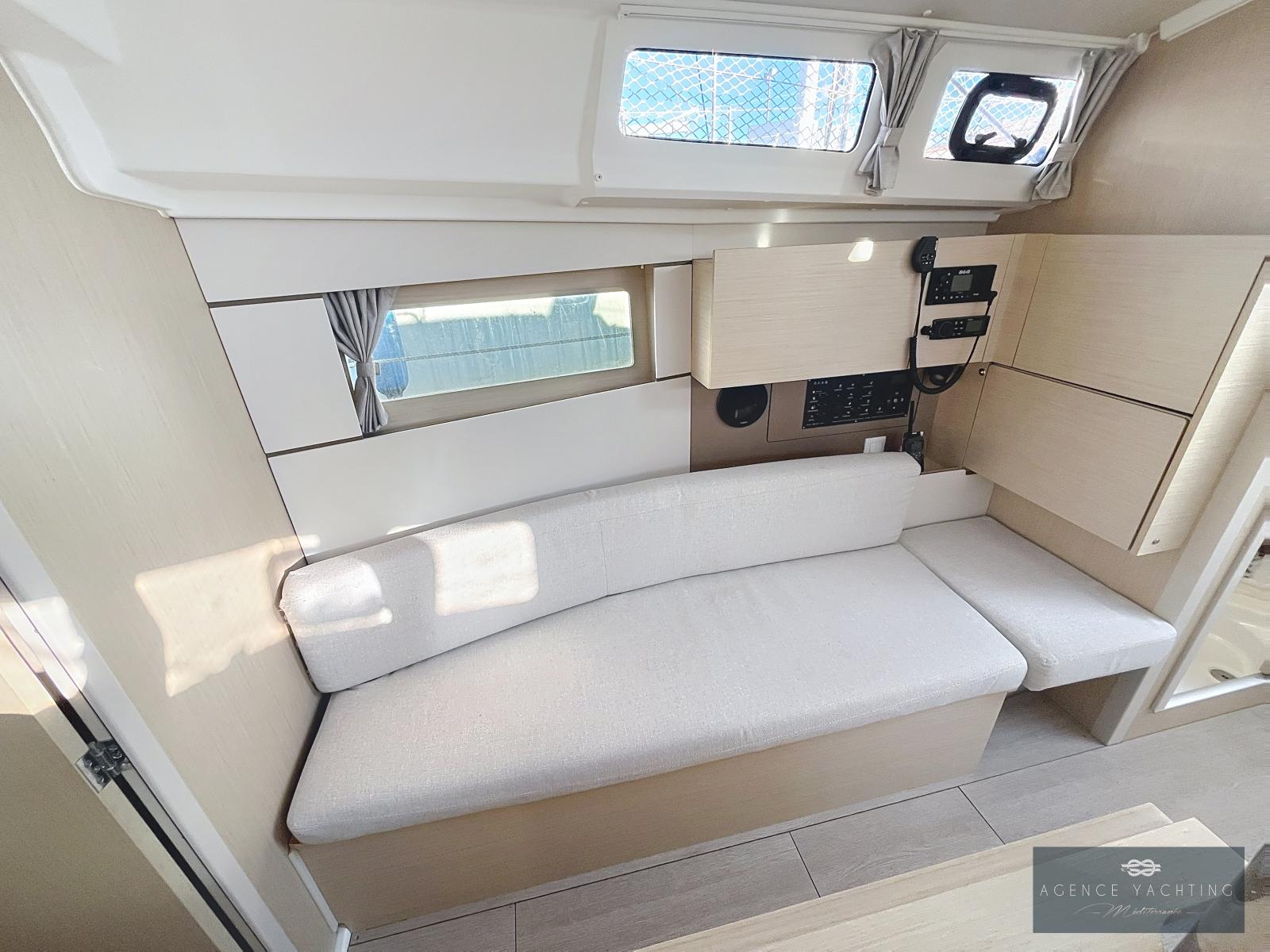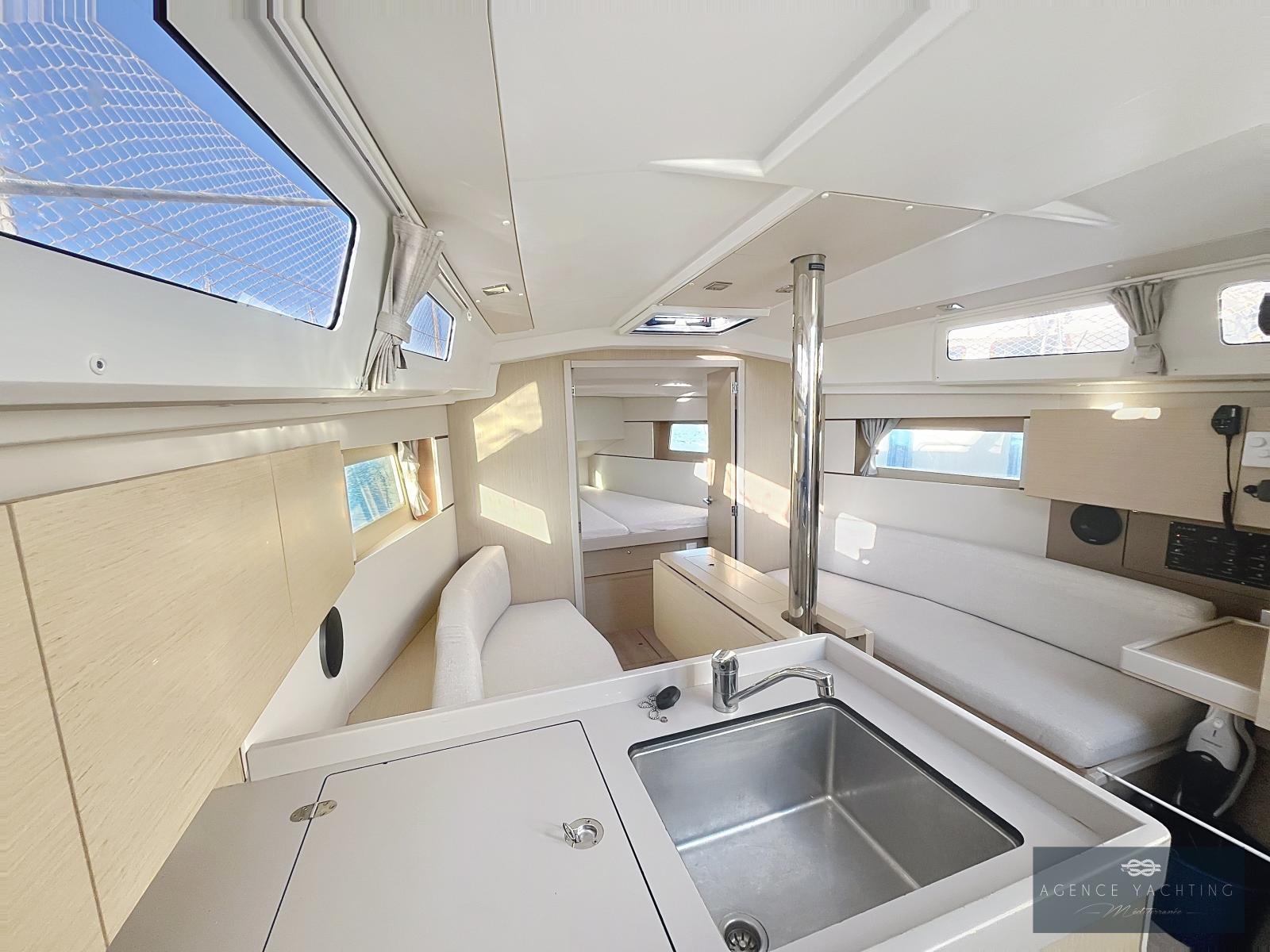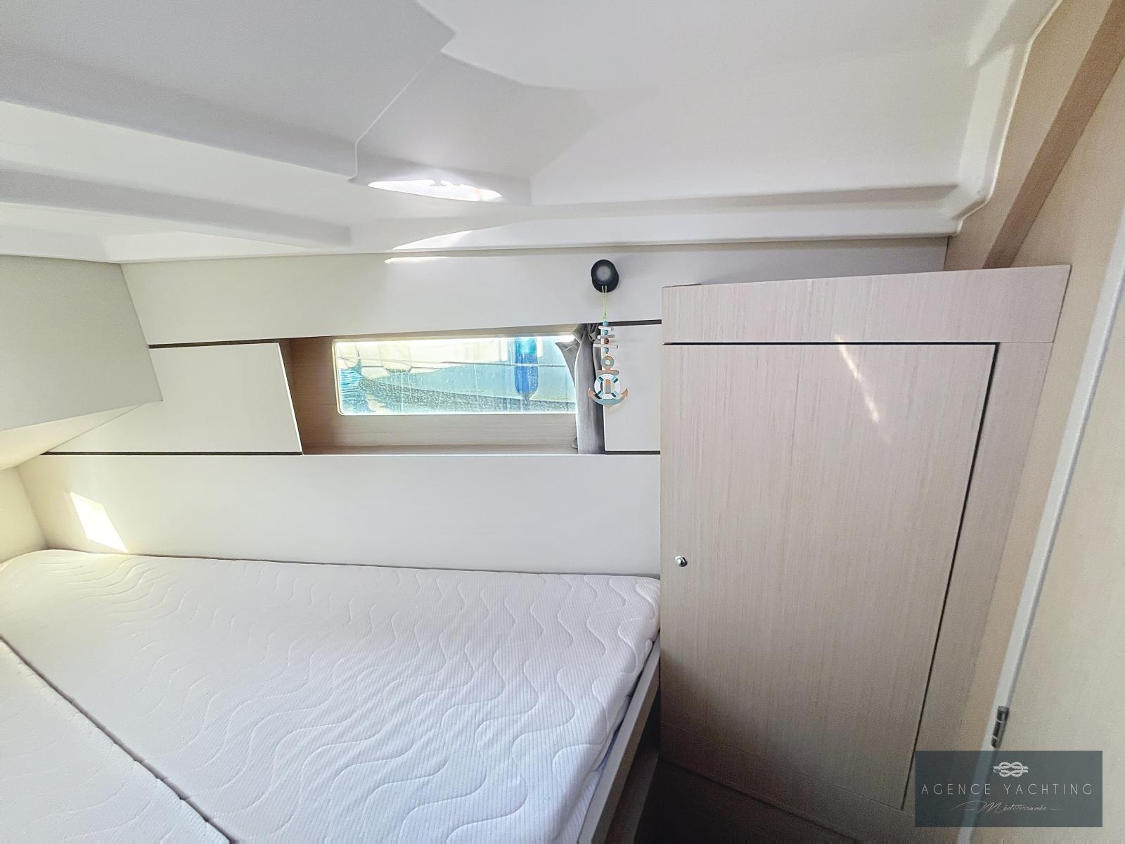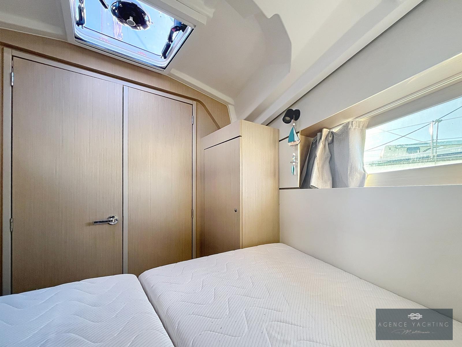 Intérieur élégant et fonctionnel finition Chêne Clair. Version 3 cabines doubles, chacune pensée pour l’intimité et le repos, plus un couchage d’appoint supplémentaire dans le carré. Salle d’eau séparée, rangements généreux et ambiance lumineuse soignée pour des escales confortables. Cuisine spacieuse et très bien équipée : four, réchaud gaz performant et micro-ondes...
