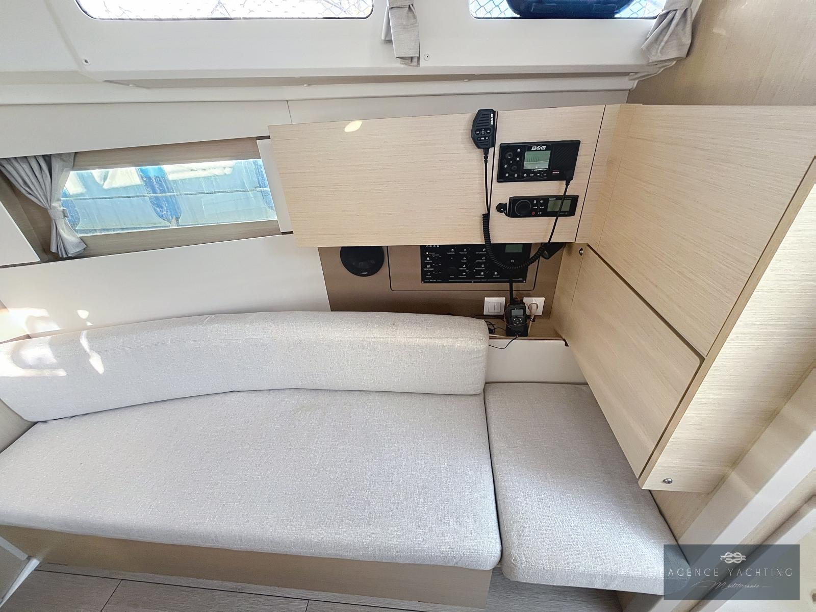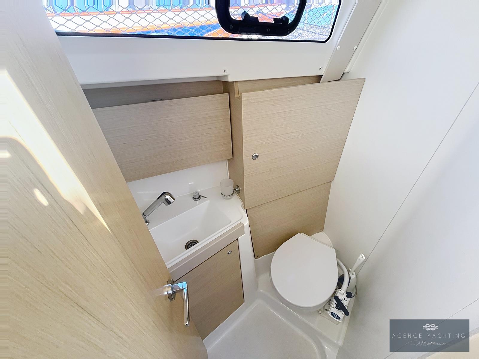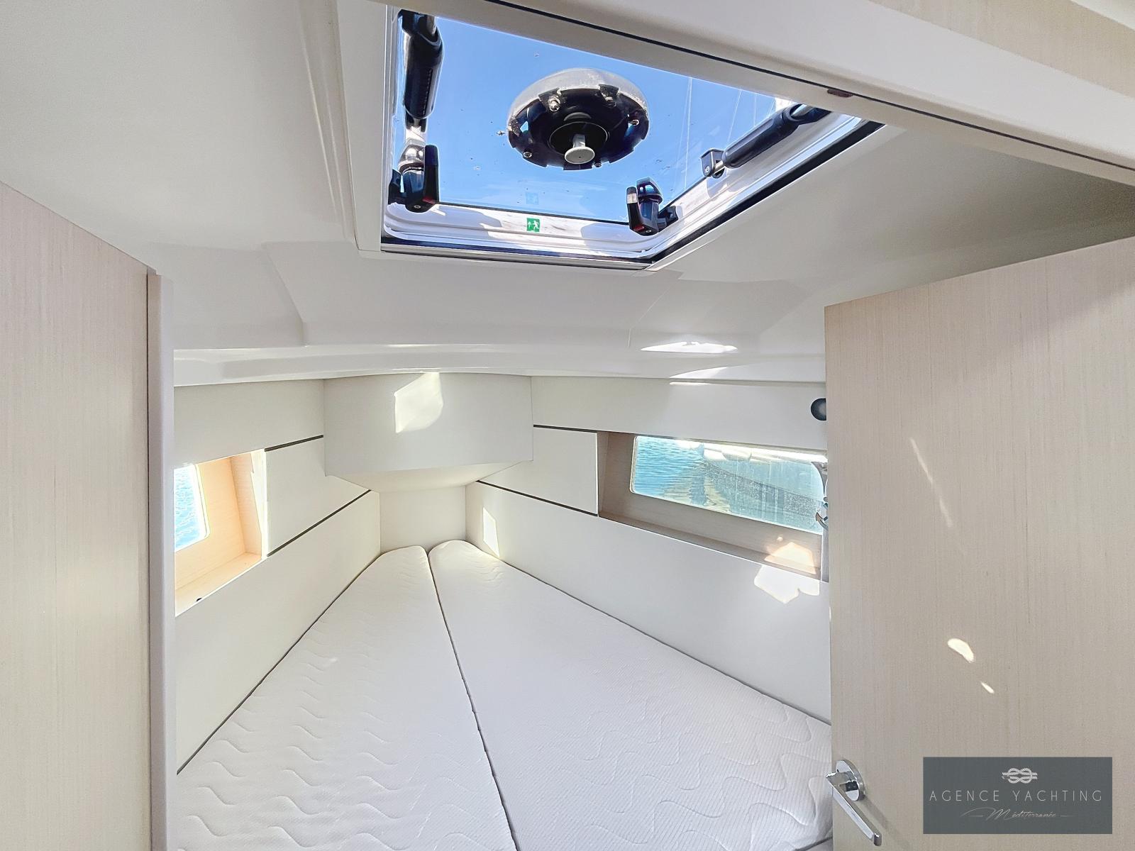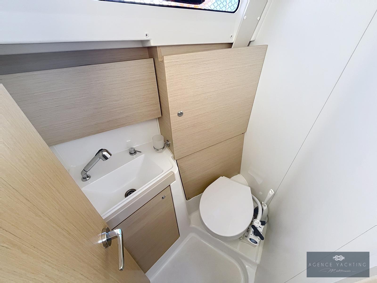 Intérieur élégant et fonctionnel finition Chêne Clair. Version 3 cabines doubles, chacune pensée pour l’intimité et le repos, plus un couchage d’appoint supplémentaire dans le carré. Salle d’eau séparée, rangements généreux et ambiance lumineuse soignée pour des escales confortables. Cuisine spacieuse et très bien équipée : four, réchaud gaz performant et micro-ondes...
