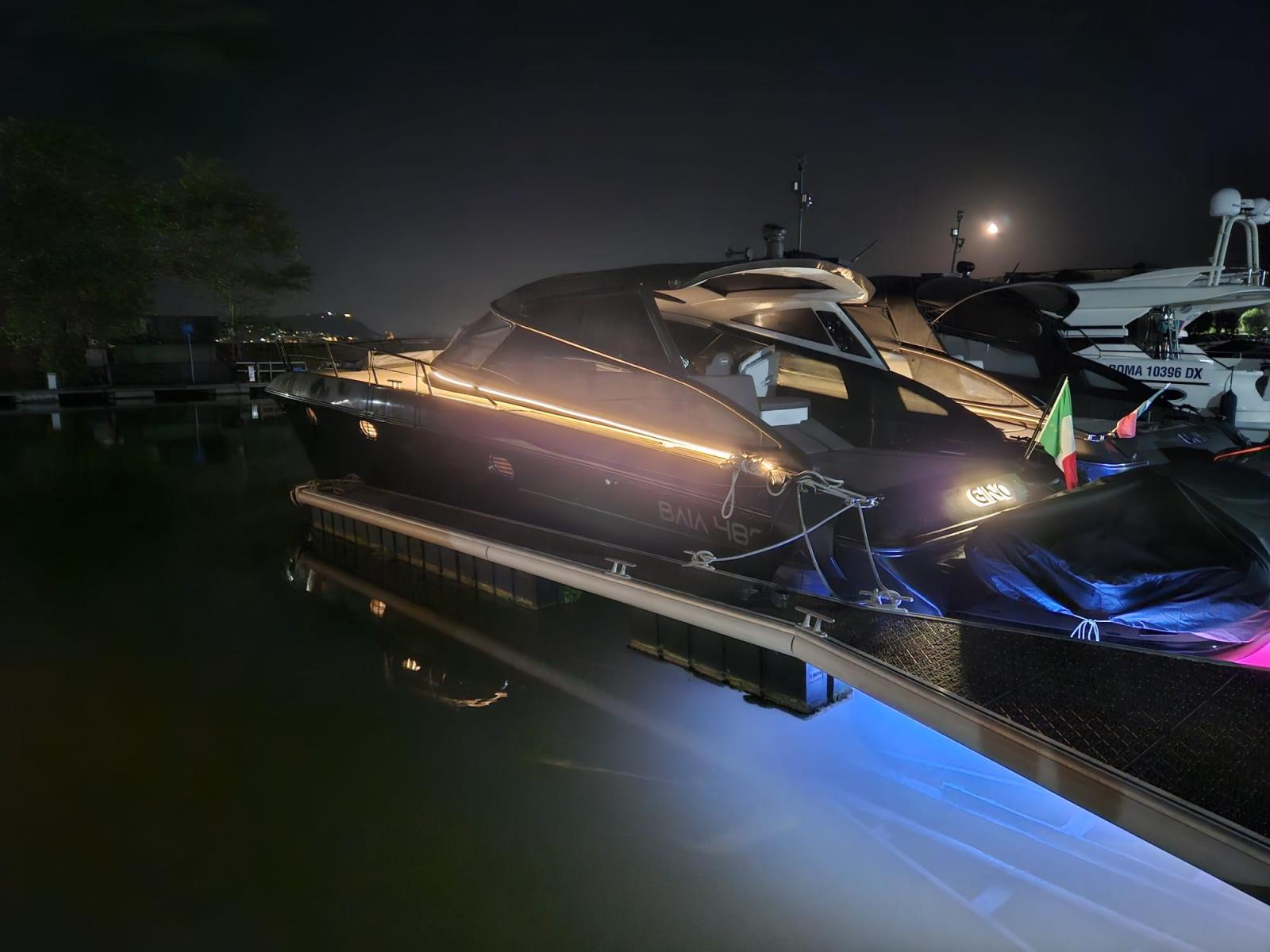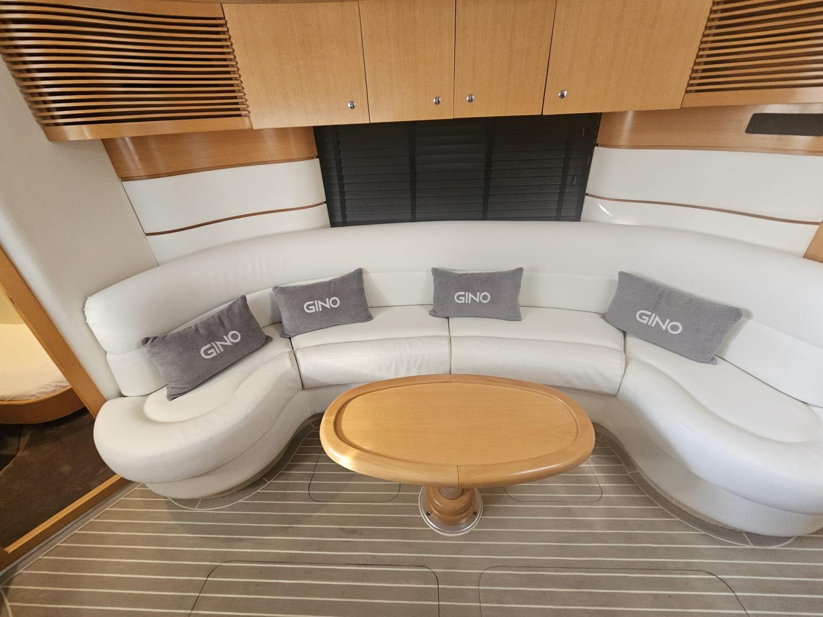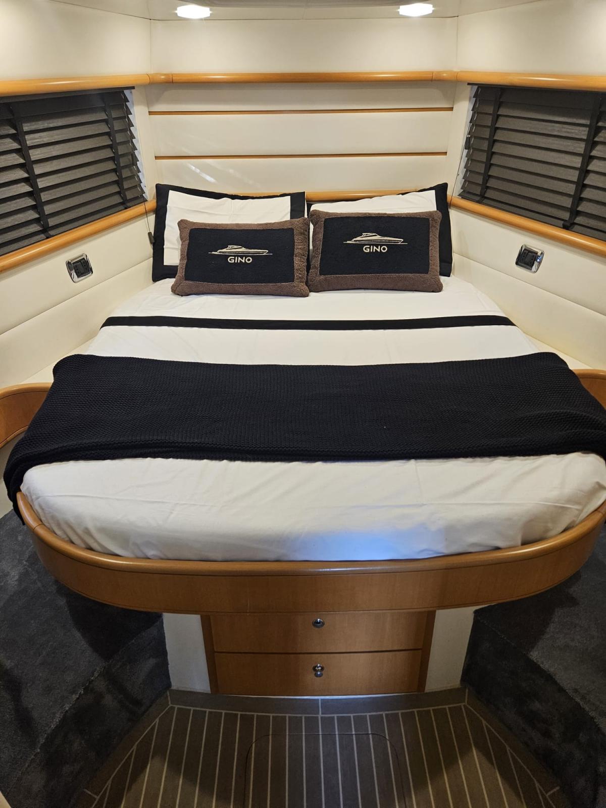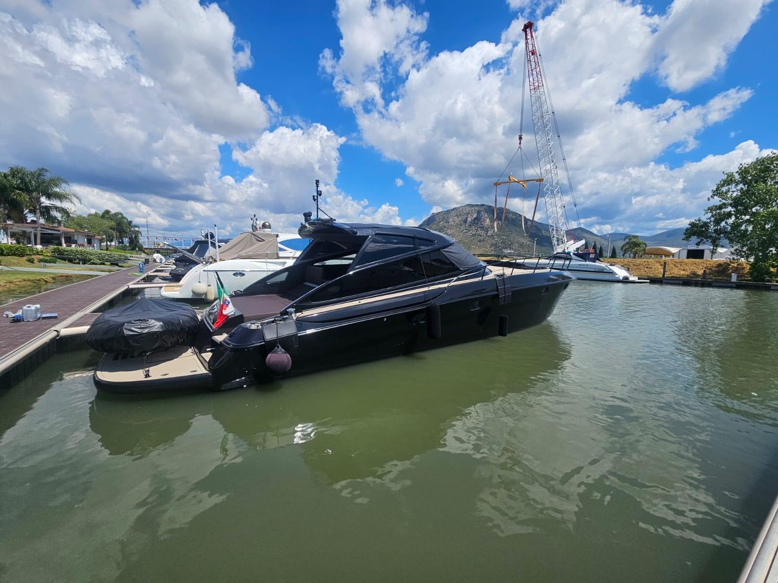 Alarme moteur, Alarme de pompe de cale, Alternateur, Ouverture du compartiment moteur électrique, Eau sous pression, Passavant en teck, Couleur spéciale, Douche de cockpit, Phare de poursuite, Flaps hydrauliques, Hard top, Extincteur(s) fixe(s), Indicateurs de flaps, Lavage de chaine, Éclairage de courtoisie, Spots sous-marins, Défenses, Passerelle, Plateforme arrière, Pompe de cale automatique, Pompe de cale manuelle, Pompe à Eau de Mer, Cockpit en teck, Prise de quai, Connexion eau sous pression à quai, Rollbar, Guindeau électrique, Echelle de bain, Selles pour Annexe, Système de filtration des eaux usées, table de cockpit, Table pliante de salon, Corne, Winch, Winch électrique arrière.
