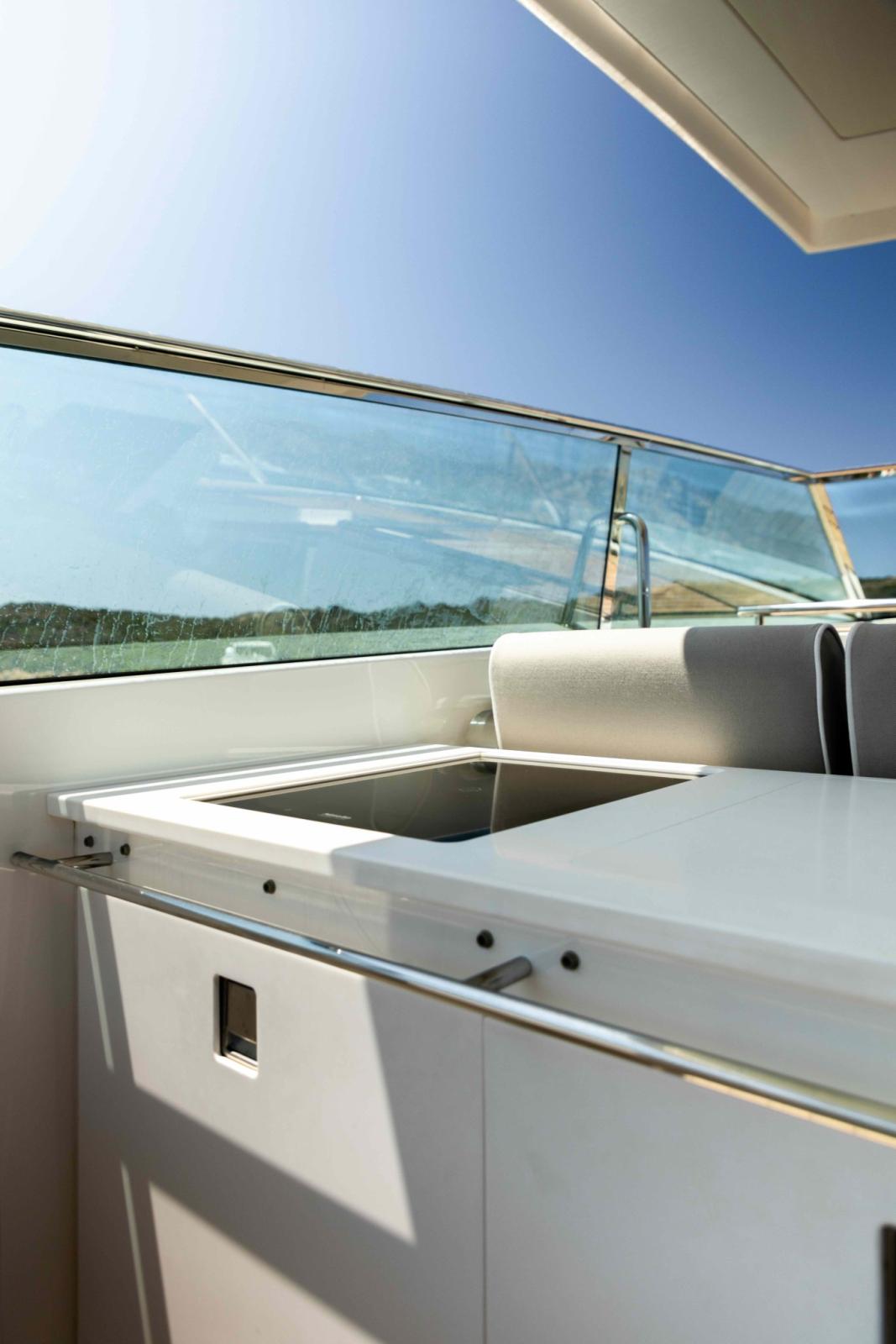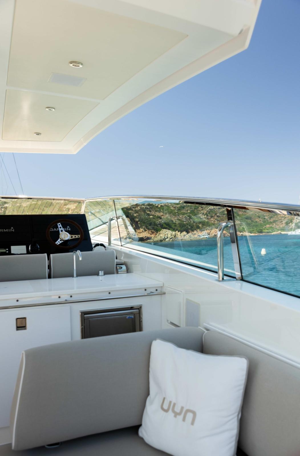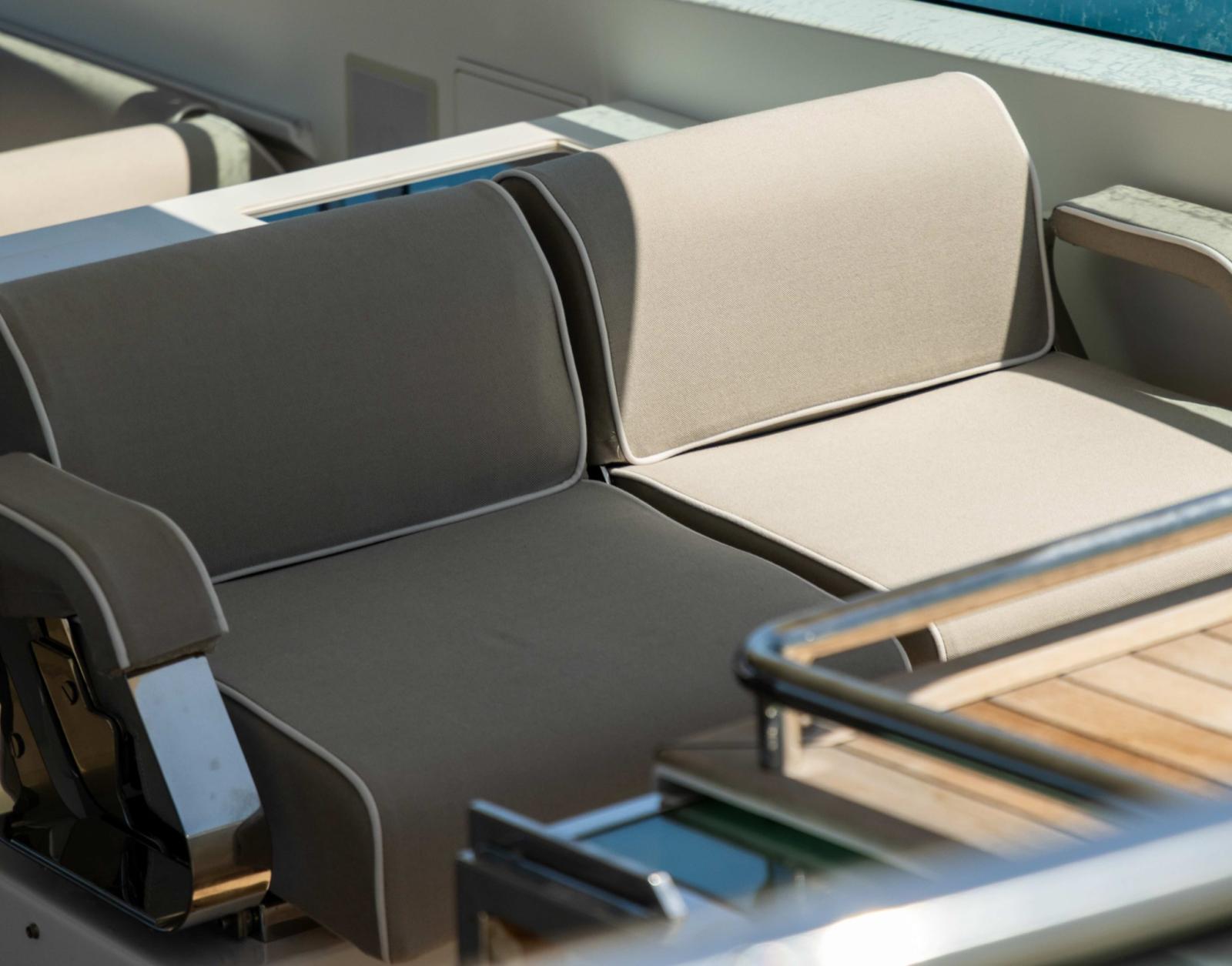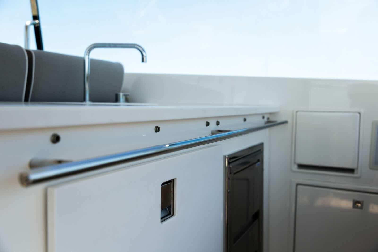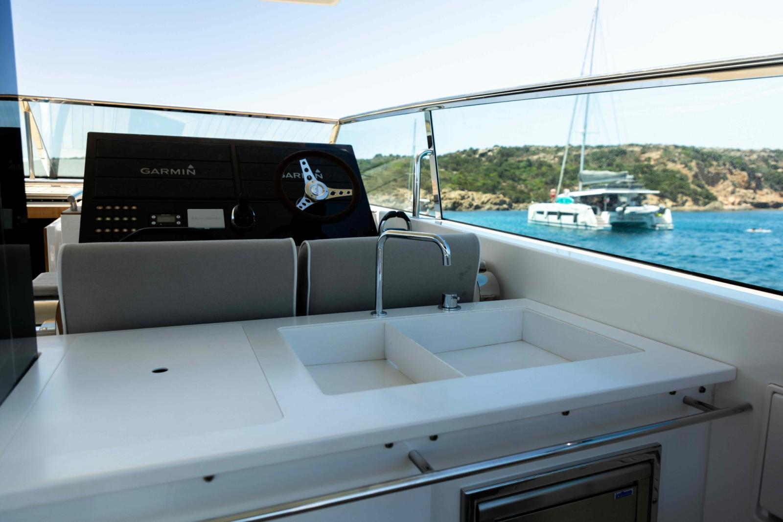 Ancre, Autoclave, 4 x Batteries (Lithium), Passerelles latérales en teck, Chargeur de batterie, Douche de pont, Propulseur d’étrave, Volets hydrauliques, Panneaux solaires, Passerelle (hydraulique), Plate-forme (ascenseur hydraulique pour annexe), 3 x Pompe de cale électrique, Cockpit en teck, Prise de quai 220V, Guindeau électrique, Echelle de bain, Selles d’annexe, Stabilisateurs (Seakeeper 9), Table de cockpit, Annexe (jet d’eau Williams), Trompette, T-Top, rouf en teck.