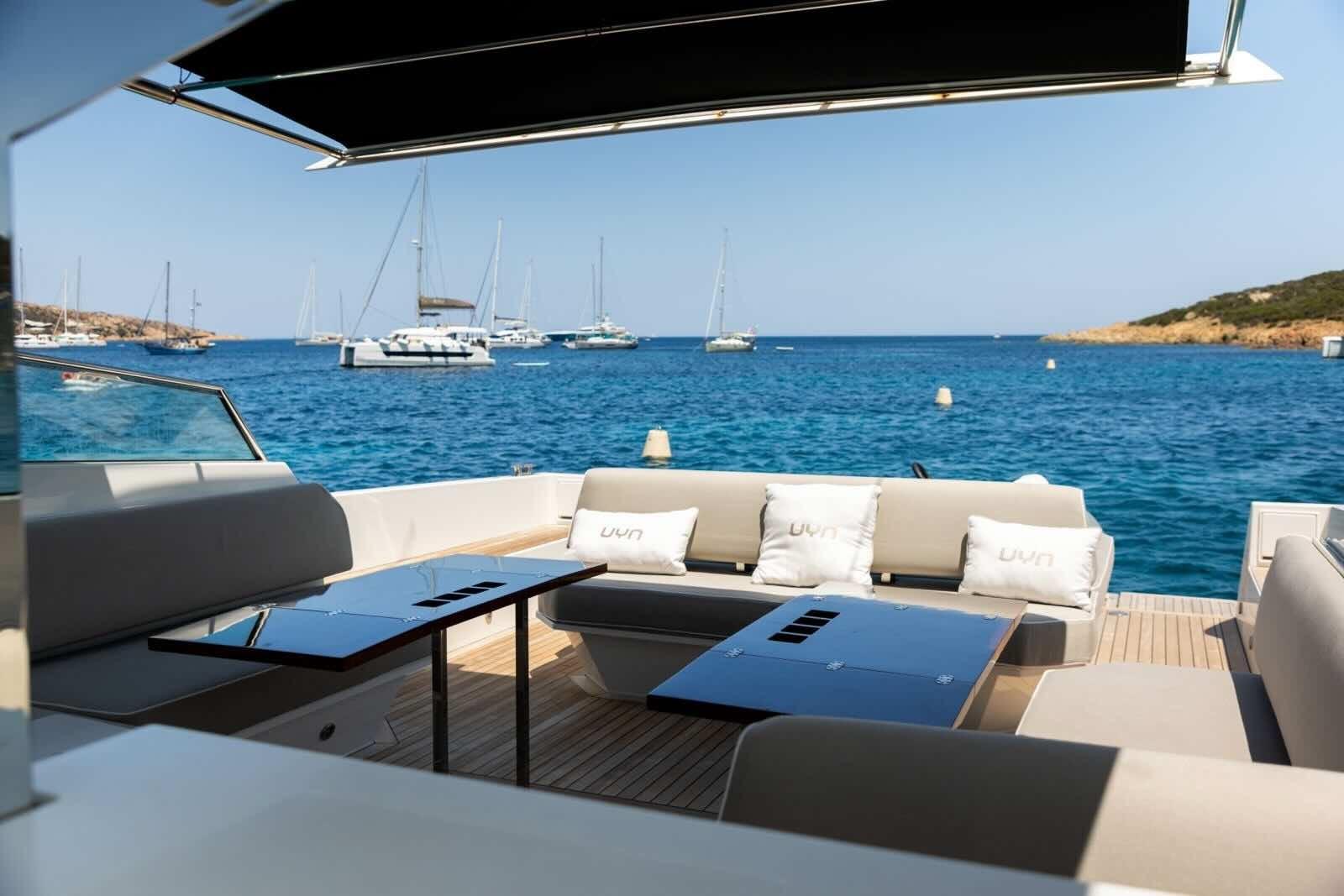 Bateau en très bon état, propriétaire unique, usage privé, mise à l’eau 2021, 3 cabines et 2 salles de bain, 2 x Volvo IPS 800 avec 390 heures de moteur, coque en carbone, très bonnes performances avec une faible consommation de carburant, joystick de manœuvre, stabilisateur gyroscopique Seakeeper 9, générateur, climatisation, plate-forme Tender Lift, annexe williams.