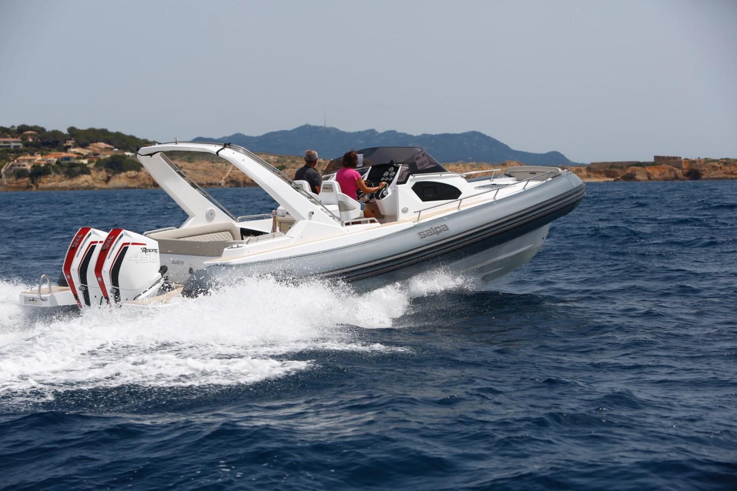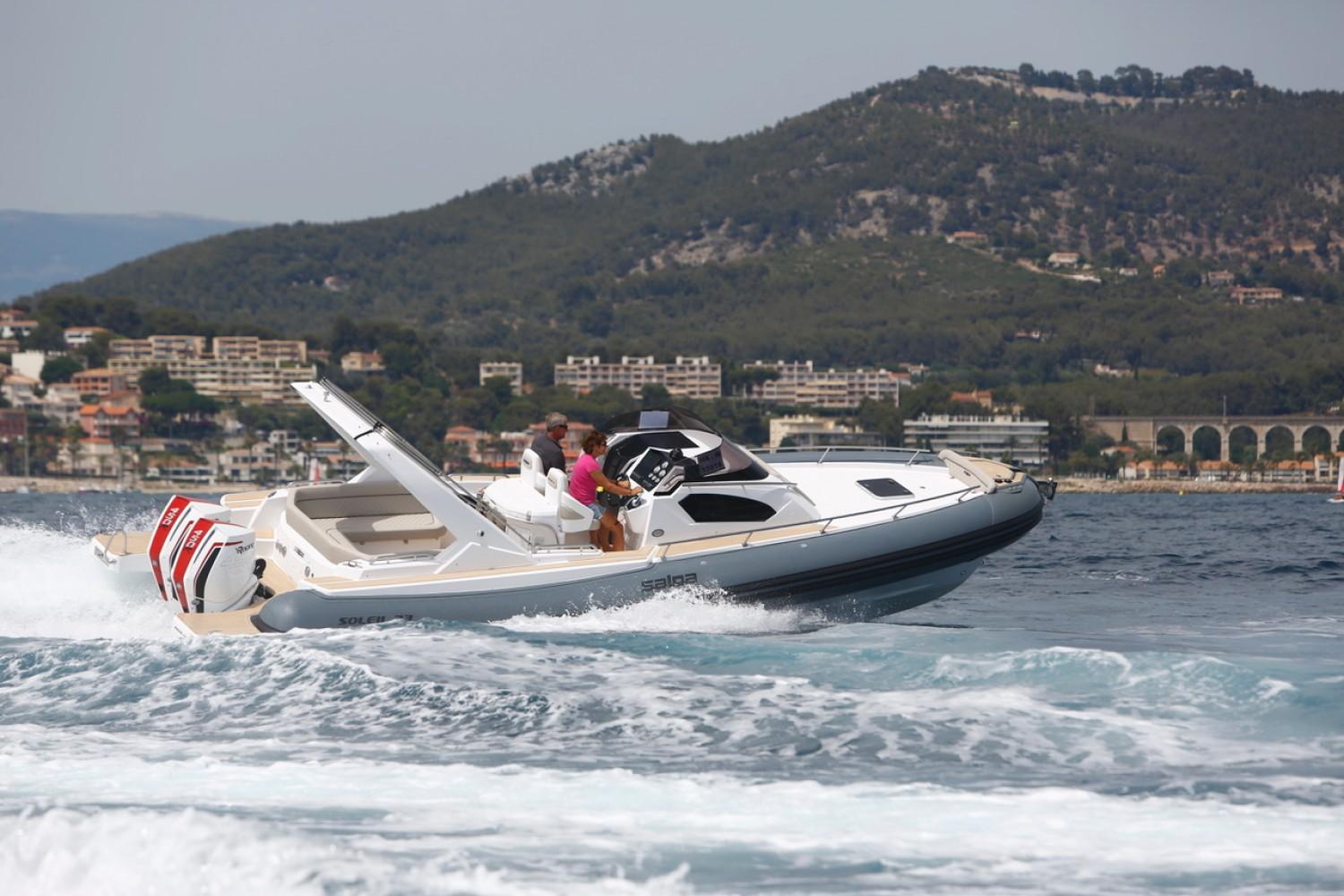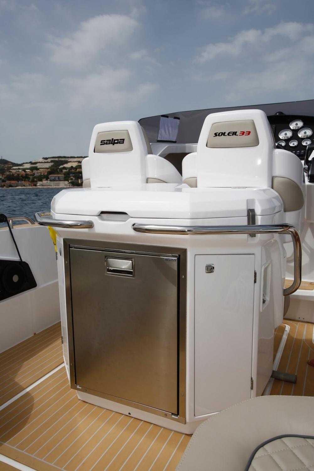 EuroNautic NOUVEAU CONCESSIONNAIRE de la très réputé marque de semi-rigide Italien SALPA, vous propose à la vente ce sublime SOLEIL 33 habitable.Au standard:Gelcoat carène et pont, blanc · Guindeau électrique avec davier basculant Inox sur étrave rigide · Mouillage 40m, jonction et ancre inox, double commande au TDB et sur la proue · Installation 230 Volt avec chargeur et câble de quai · Cabine équipée 2 couchages · Salle de bain complète avec lavabo, douche, WC électriques et cuve à eaux noires · Plages arrières rallongées avec revêtement teck synthétique et échelle de bain télescopique avec main courante inox · Extension bain de soleil avant · Douchette sur plage de bain · Installation Boiler (eau chaude 220 Volt) · 3 Pompes de cale automatiques · Meuble de cuisine avec évier · Réservoir à carburant 500 litres inox et réservoir d’eau 120 litres · Console de pilotage avec rangement · Pare-brise · Mains courantes inox · Coupe batterie · Feux de navigation · Tableau de bord · Corne de brume · 4 taquets d’amarrage Inox · Installation électrique à disjoncteurs magnétothermiques · Implantation triple batterie · Sellerie complète cockpit et bain de soleil avant · Direction hydraulique et volant de direction · Revêtement teck synthétique sur la proue .Fiche produitPrésentation VIDEOFinancement LOA sur étude.N'hésitez pas à nous contacter pour plus de renseignement.Bateau semi-rigide similaire à: Sacs, Lomac, Zodiac, Bombard, Zar, Capelli Tempest, BRIG, Tarpon, BWA, Sillinger, Valiant, BSC, 3D Tender, Ranieri, Master, Sea hawkNos secteurs: Port Camargue, Grau du Roi, Grande Motte, Carnon, Palavas, CAP d’Agde, Nîmes, Montpellier, Arle, Ales