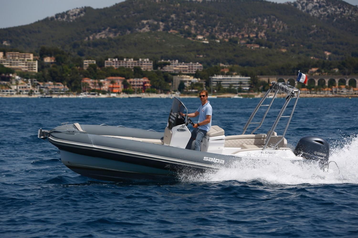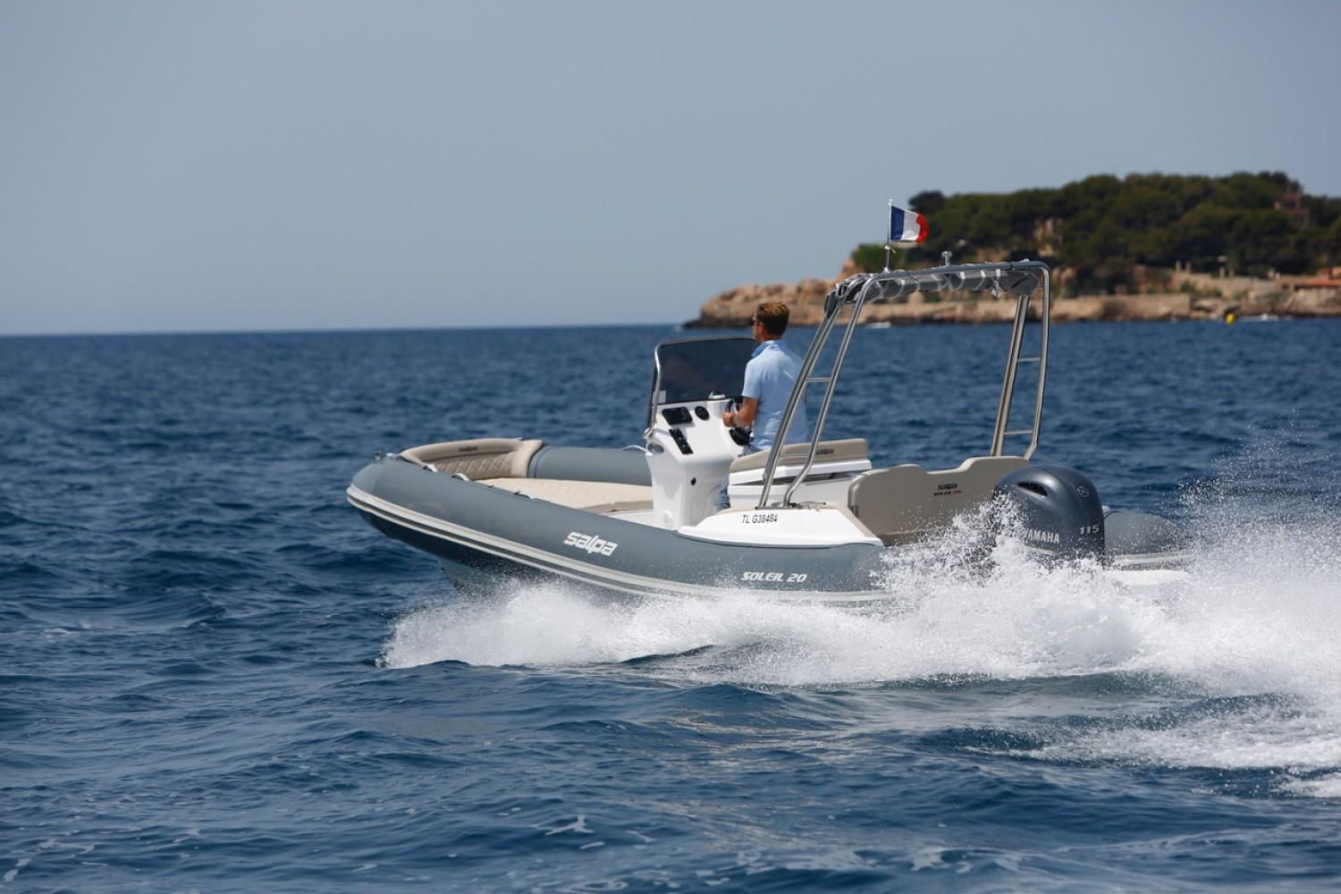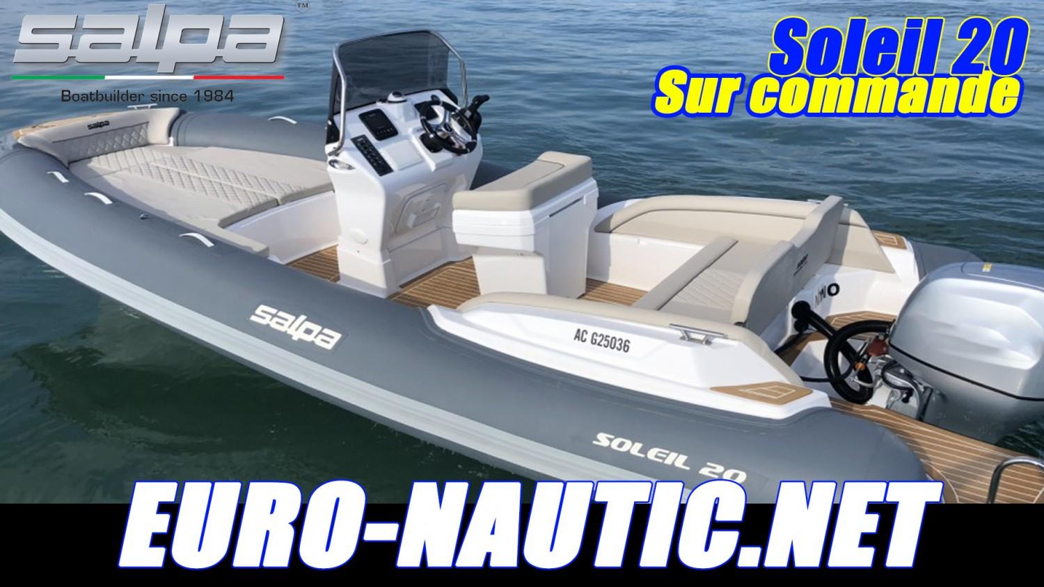 EuroNautic NOUVEAU CONCESSIONNAIRE de la très réputé marque de semi-rigide Italien SALPA, vous propose ce SOLEIL 20 sur commande.Ce bateau vous est proposé prêt à naviguer clé en main, livraison à Port Camargue au prix à partir de 54000€ au lieu de de 56893€, cette promotion est valable jusqu'à fin décembre 2022.Son espace espace à bord est assez incroyable pour un semi-rigide de cette taille, un gigantesque bain de soleil sera vous faire passer des partis incroyable de bronzage, mais aussi banquette arrière sera se transformer en second bain de soleil.Les rangement ne sont pas en reste, un soute avant large et profonde pourra accueillir une glacière, un parasol, des sacs de plage... Un deuxième très grand coffre est situé sous la banquette arrière.Du coté des performances, ce SALPA Soleil 20 ne nécessitera pas une puissance démesurée, sa carène au V profond et son STEP en fond un bateau très agréable et réactif, 115cv est recommandé et peu accepter jusqu'à 150cv..Il est équipé au standard:2 Plages arrières avec échelle de bain télescopique - Sellerie complète (Bains de soleil avant, poste de pilotage, banquette arriere - Pompe de cale automatique - Console de pilotage avec rangement - tableau électrique -Siège pilote avec meuble cuisine - Pare brise - Mains courantes inox - Coupe batterie - Tableau de bord - Corne de brume électrique - 4 taquets d’amarrage Inox - Nombreux coffres de rangement - Support extincteur - Coffre à batterie - Capot ouvrant(mouillage) à la proue - Gonfleur au pied - Volant de direction - Compas magnétique. Fiche produitEssai pressePour tout DEVIS personnalisé, n'hésitez pas à nous consulter, Financement LOA sur étude, remorque possible...Bateau semi-rigide similaire à: Zodiac, Bombard, Zar, Capelli Tempest, BRIG, Tarpon, BWA, Sillinger, Valiant, BSC, 3D Tender, Ranieri, Quicksilver, Master, Sea hawkNos secteurs: Port Camargue, Grau du Roi, Grande Motte, Carnon, Palavas, CAP d’Agde, Nîmes, Montpellier, Arle, Ales