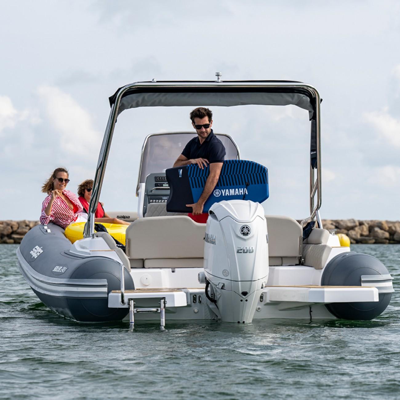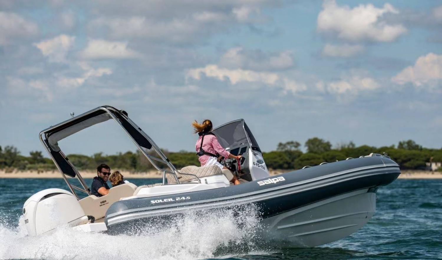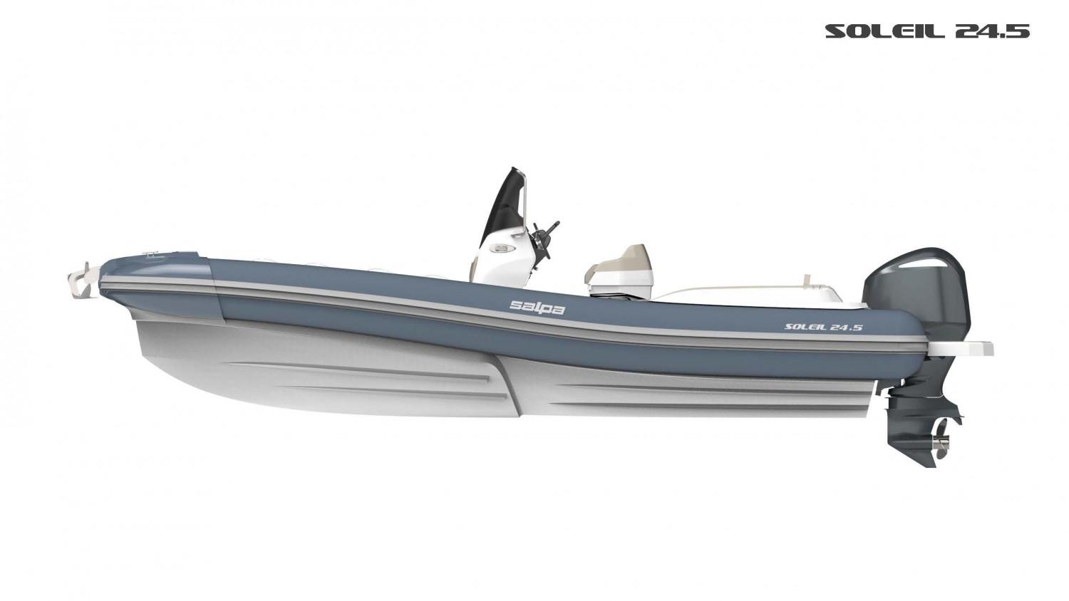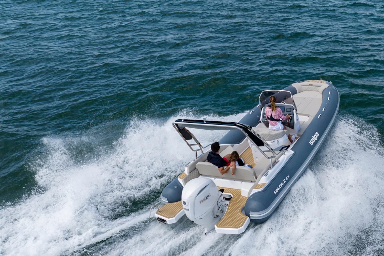 Euronautic PORT CAMARGUE est très heureux de vous présenter le tout NOUVEAU SALPA Soleil 24.5 , un semi-rigide de 7,80m avec une longueur de coque de 6,99m, donc pas de TAXE !!! Et pourtant il a tout d'un très grand...Comme à son habitude, la gamma SOLEIL propre un immense bain de soleil avant avec une grand coffre dessous, mais aussi un carré arrière avec table transformable en un second gigantesque bain de soleil.Un poste de pilotage très ergonomique et une assise cachant un évier, où il est possible d'y installer un frigidaire.Du coté des performances, ce SALPA Soleil 24.5 ne nécessitera pas une puissance démesurée, sa carène au V profond et son STEP en fond un bateau très agréable et réactif, 200/225cv est recommandé ce qui lui permet d'atteindre les 40 Noeuds.Il est de possible de le motoriser de façon très sportive avec un 350cv, attention les performances !!!Equipements au STANDARD:•Gelcoat carène et pont blanc•Plages de bain arrière avec échelle télescopique et main courante inox•Sellerie complète avec bain de soleil avant•Pompe de cale automatique•Meuble de cuisine •Réservoir à carburant inox 280 litres•Console de pilotage avec tableau de bord, pare·brise, volant et direction hydraulique•Feux de navigation•Corne de brume •4 taquets d’amarrage Inox •Installation électrique à disjoncteurs magnétothermiques •Davier inox•Douchette de pont , evier et réservoir d'eau (50l.) Equipements en OPTION:•Guindeau électrique, Mouillage complet, ancre & jonction inox•Implantation double batterie (sans batteries)•Frigo Inox cockpit à tiroir 40L•Frigo Inox cockpit à ouverture latérale 40L•Plan de cuisson Gaz•Gonfleur électrique 12V•Combine GPS/Sondeur Garmin 6 pouces avec sonde tableau AR•Pack stéréo marine FUSION + kit BT + 2 HP extérieurs étanches•VHF fixe GARMIN AIS/DSC avec antenne•Chargeur de batteries + installation 220V + cable de quai•Kit complément de bain de soleil AR + Table•Bimini sur arceaux inox avec jambes de force•Roll bar INOX + taud de soleil Sunbrella•Projecteur LED sur Roll bar•Taud de protection console et poste de pilotage•Taud de protection intégral•Gelcoat coque BLACK, MILITARY GREY•Teck synthétique •Sellerie Spradling Silvertex Macadamia ou Champagne •Mat de ski nautique amovibleFiche produitEssai presseVIDEOPour tout DEVIS personnalisé, n'hésitez pas à nous consulter, Financement LOA sur étude, remorque possible...Bateau semi-rigide similaire à: Zodiac, Bombard, Zar, Capelli Tempest, BRIG, Tarpon, BWA, Sillinger, Valiant, BSC, 3D Tender, Ranieri, Quicksilver, Master, Sea hawkNos secteurs: Port Camargue, Grau du Roi, Grande Motte, Carnon, Palavas, CAP d’Agde, Nîmes, Montpellier, Arle, Ales