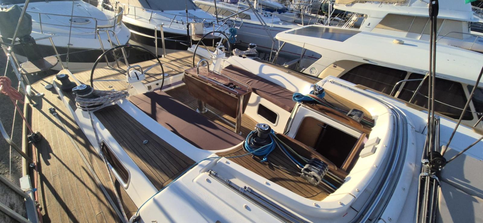 Taud de soleil, Douche de pont, Coussins bain soleil, Eclairage sous marin, Grue moteur annexe, Dessalinisateur 90l/h, Chauffe eau, Elice repliable en plus. Bimini, Capote de descente et tente de bôme remplacé en 2024