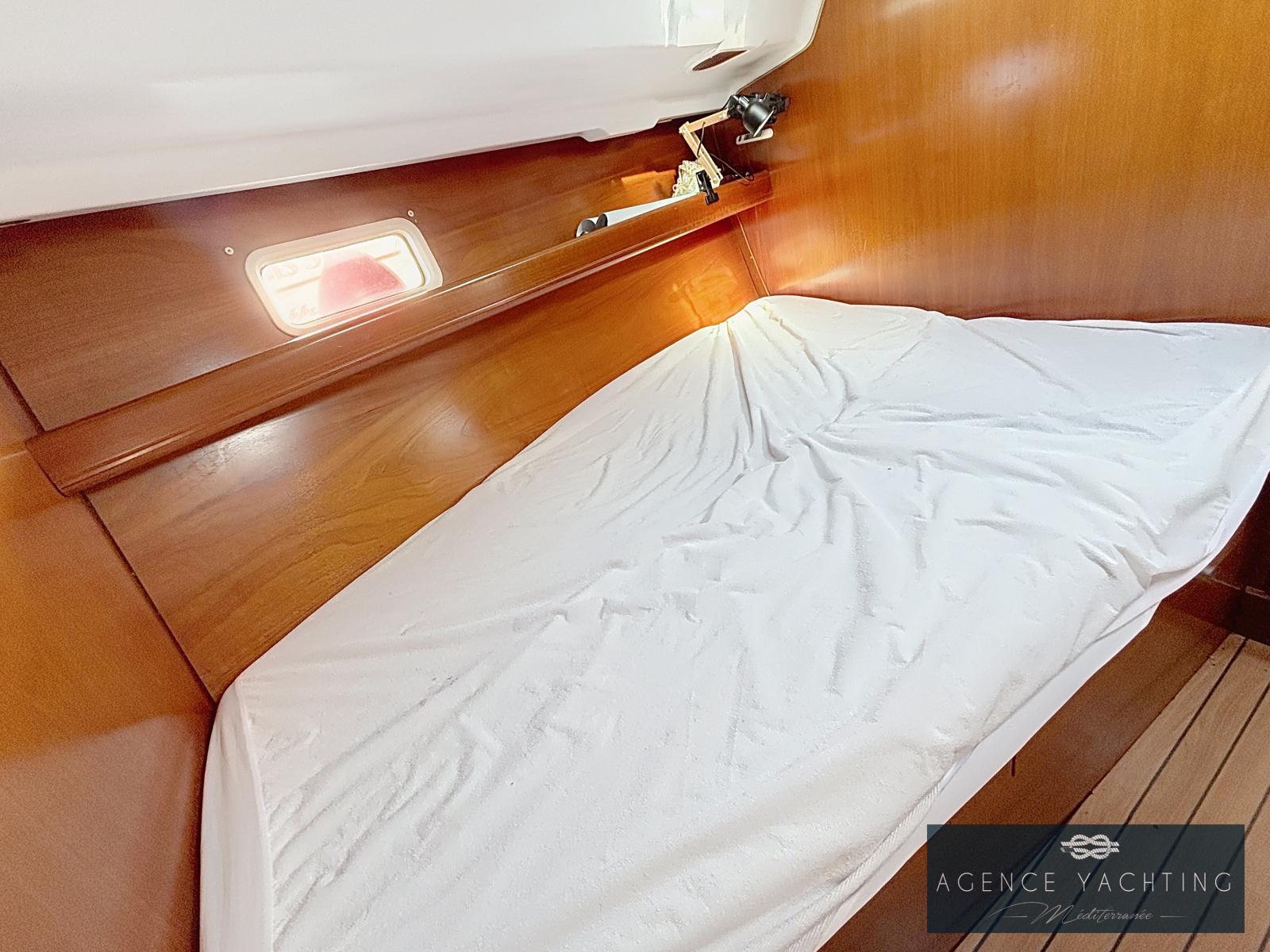 Les voiles récentes assurent de belles performances sous toutes conditions, tandis que le propulseur d’étrave facilite grandement les manœuvres au port. Le bateau est également équipé d’un portique arrière avec panneaux solaires, garantissant une parfaite autonomie lors des navigations au long cours.