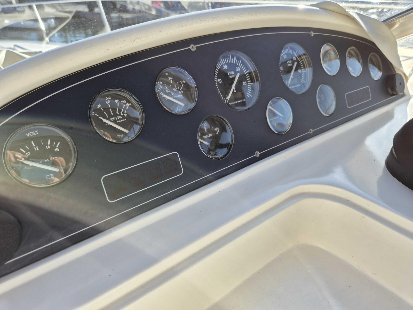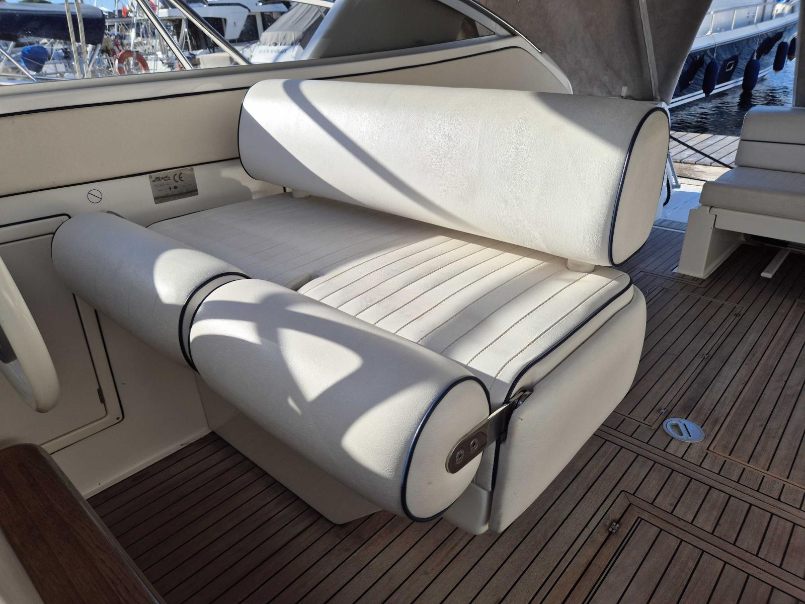 Propulsé par deux moteurs Volvo Penta KAD 300 de 285 CV chacun, ce bateau affiche 750 heures moteur seulement, témoignant d’un usage modéré et d’un entretien rigoureux. La navigation est fluide, puissante et économique.