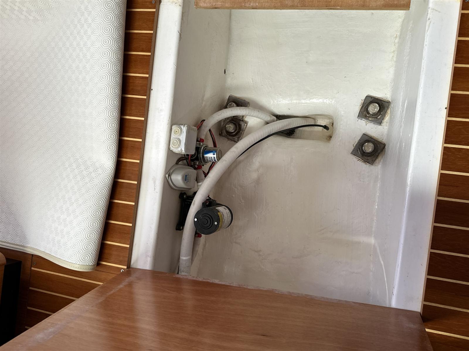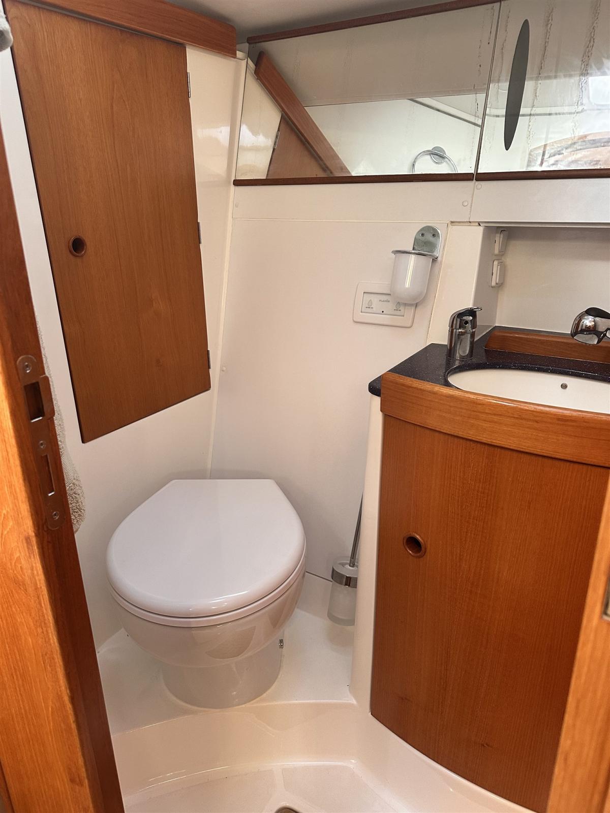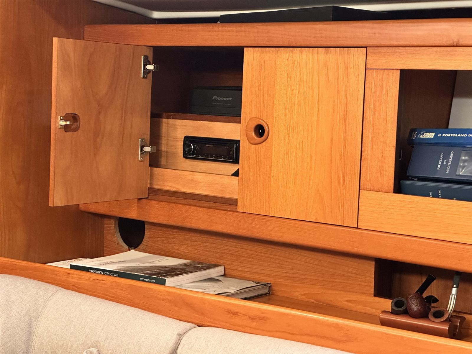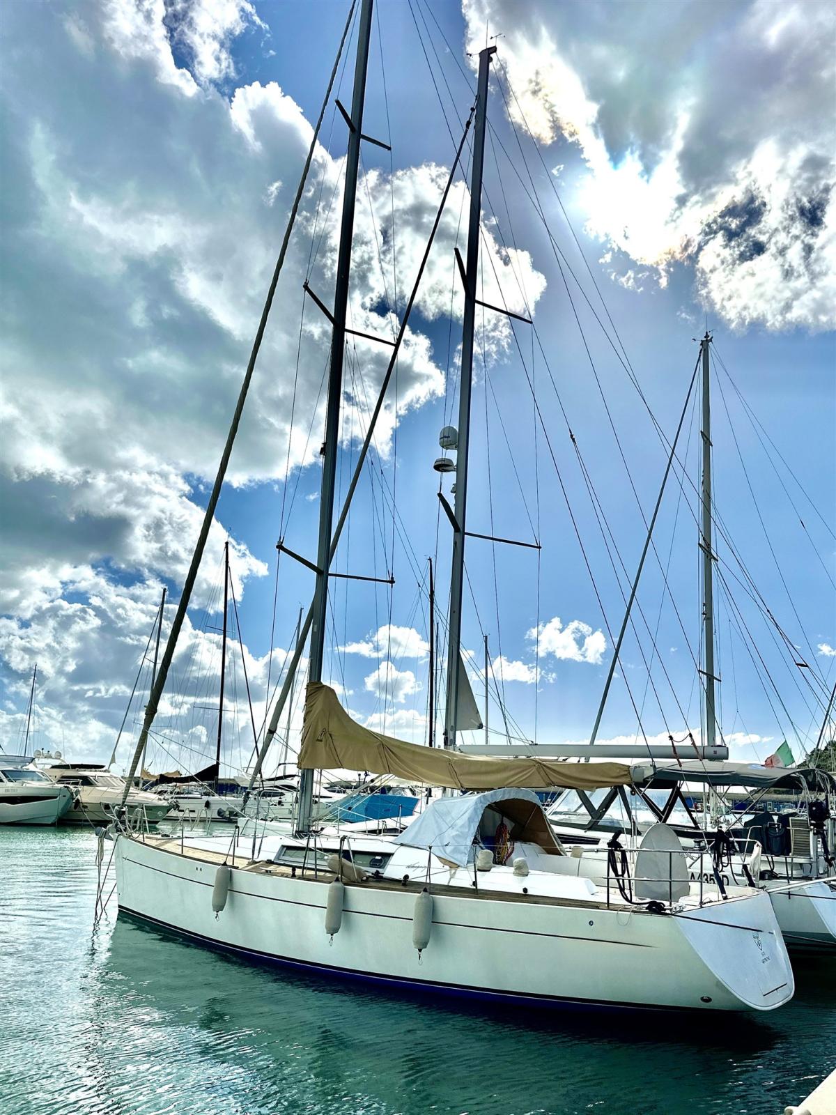 Ancre (Delta con 75 m catena nuova), Eau sous pression, Radeau de sauvetage (scadenza 2028), 3 Batteries (2 service, 1 motore tot 360 amp/h 2025), Passavant en teck, Douche de cockpit, Passerelle (Carbonio con teak), Pompe de cale automatique, Pont en teck, Porte latérale, Cockpit en teck, Prise de quai, Onduleur, Guindeau électrique, Gréement Rod (Nuovo 2026), Echelle de bain, table de cockpit (In teak pieghevole), Filières avec sortie latèrale, 6 Winch (Andersen), Windex.