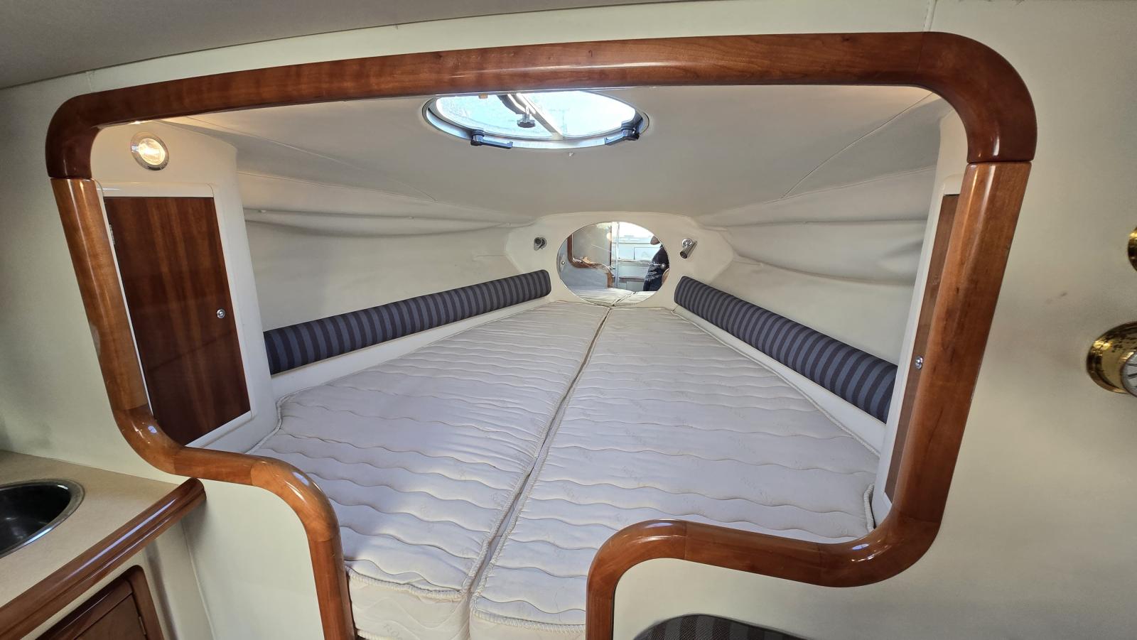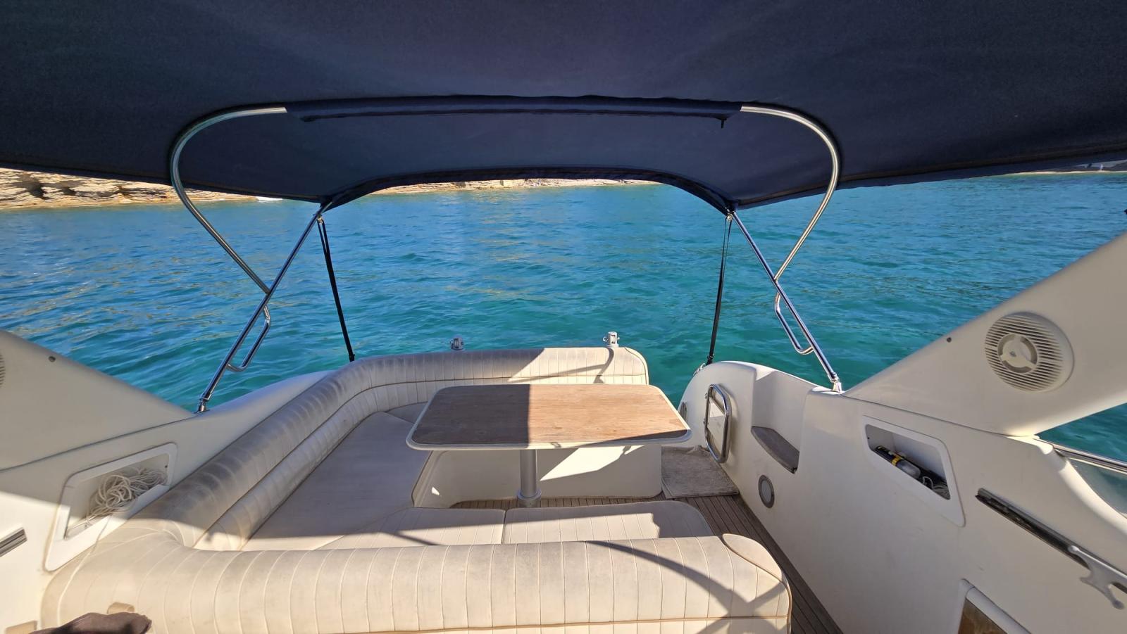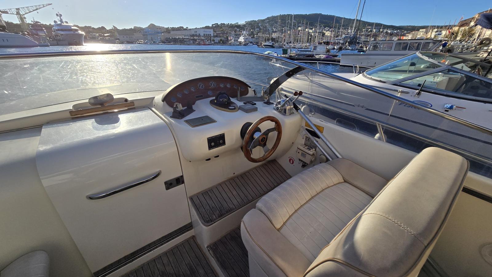 Construit en 2003, il est propulsé par deux moteurs diesel Volvo KAD32P, réputés pour leur sobriété et leur endurance, idéals pour des sorties confortables et sereines. Nous aimons ce modèle pour sa ligne intemporelle, son large cockpit (le plus convivial et large dans sa catégorie) et sa carène performante.