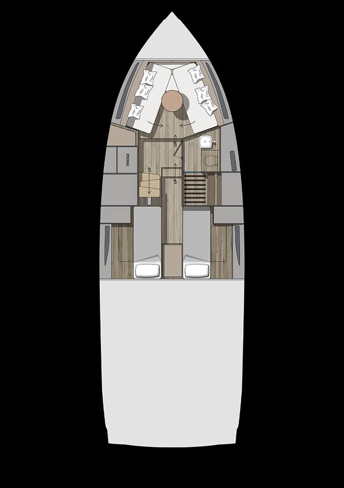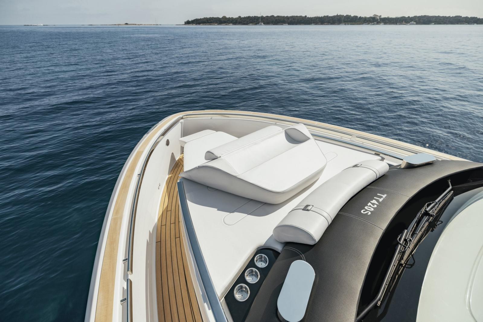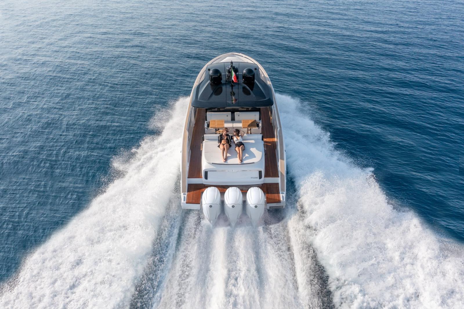 Alarme moteur, Ouverture du compartiment moteur électrique, Auto Dynamic Trim Interceptor, Eau sous pression, Passavant en teck, Couleur spéciale (Spectrum blue), Douche de cockpit, Hard top (carbonio), Extincteur(s) fixe(s), Indicateurs de flaps, Plateforme arrière (affondabile), Pompe de cale automatique, Cockpit en teck, Guindeau électrique, Echelle de bain, table de cockpit, Corne.
