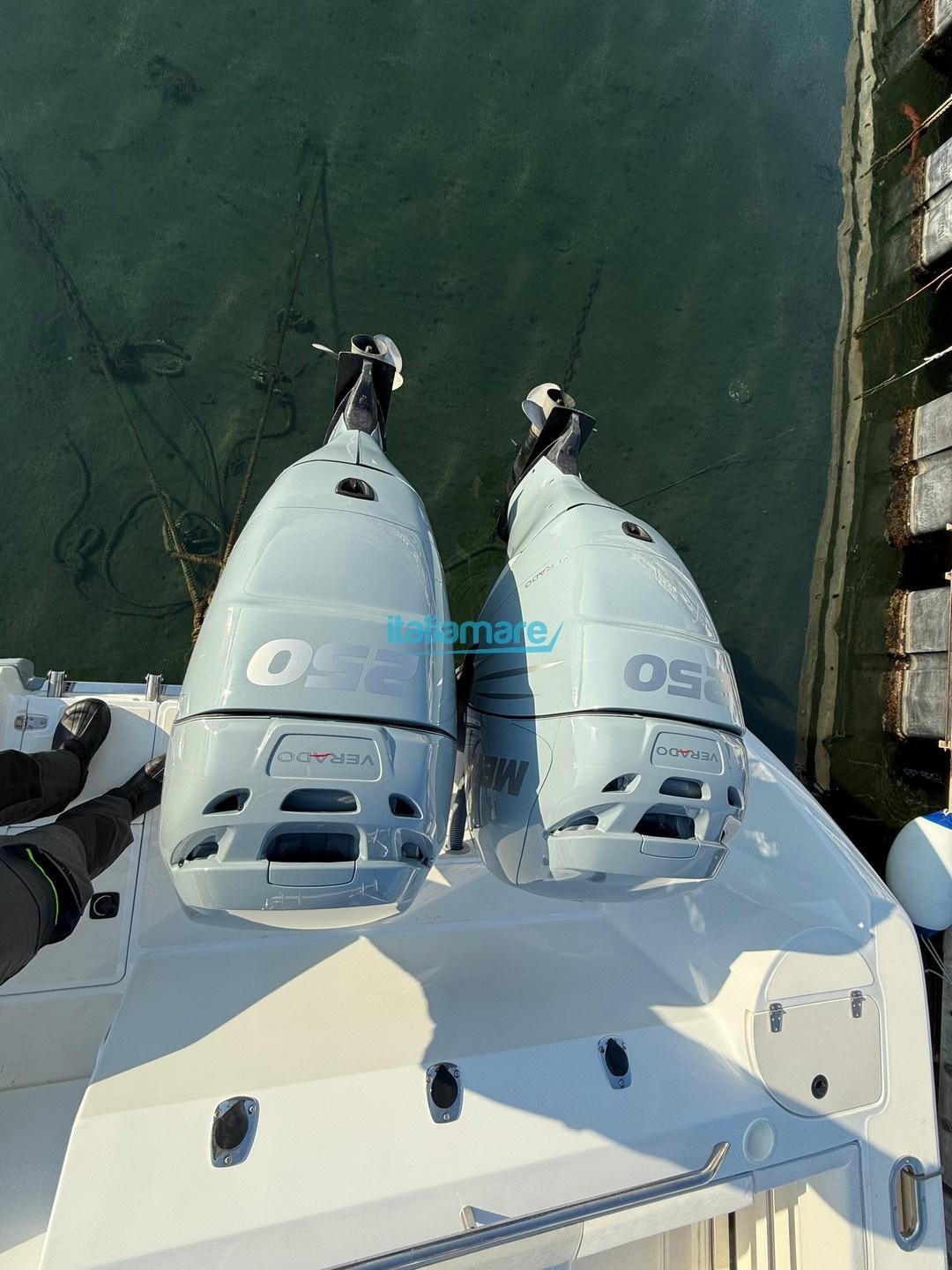 Accessoires principaux : 2 x GPS 9" - 2 sondeurs (2 sondes (1-B175L) (GTSIM-TM) - Pilote automatique - Support de moteur hors-bord (GARMIN BOW ENGINE) - Caméra (360° AVEC APP) - Haut-parleurs - Stéréo (FUSION AVEC 4 HAUT-PARLEURS)