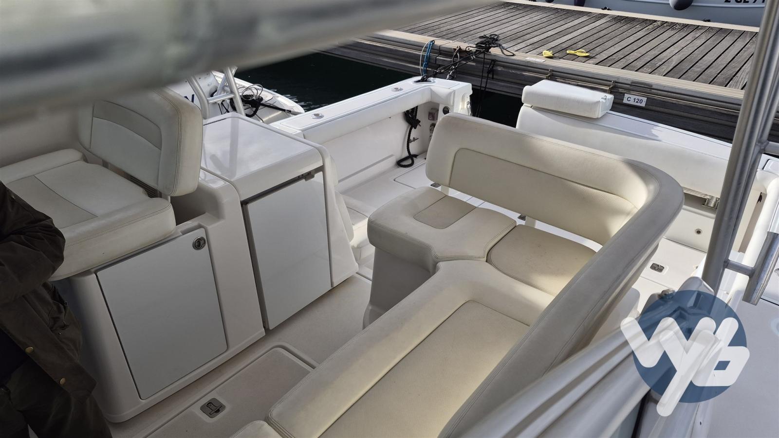 Alarme moteur, Alarme de pompe de cale, Ouverture du compartiment moteur électrique, Eau sous pression, Douche de cockpit, Flaps hydrauliques, Extincteur(s) fixe(s), Lavabo dans le cockpit, Défenses, Plateforme arrière, Pompe de cale manuelle, Porte latérale, Prise de quai, Connexion eau sous pression à quai, Guindeau électrique, Echelle de bain, T-Top.