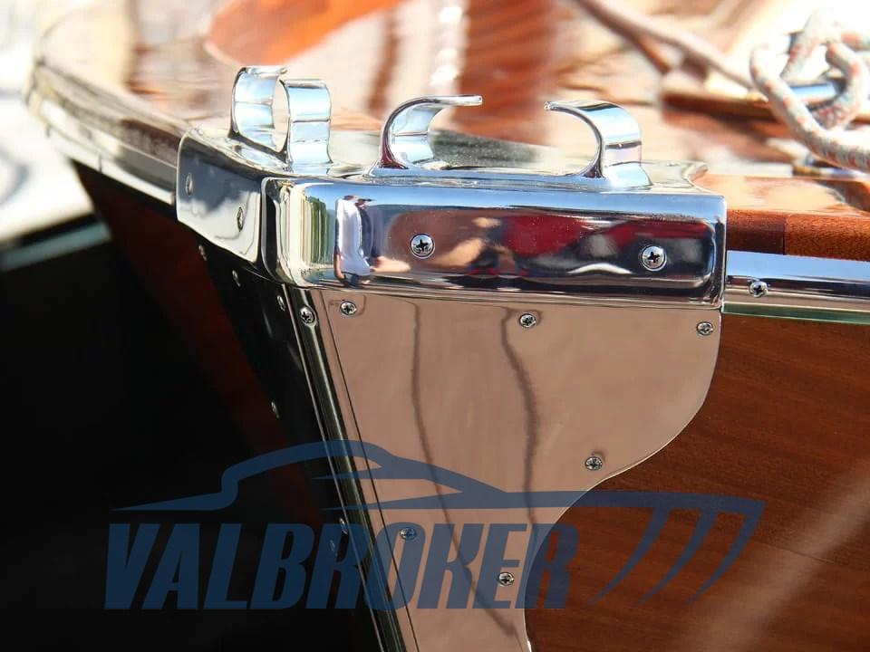 Cabine de douche arrière, 6 défenses, 2 extincteurs, 1 gaffe, housse de bateau, ligne d’échappement avec silencieux et tuyaux homologués RINA, système d’alimentation diesel avec préfiltre de décanteur, instrumentation moteur (tachymètre, pression d’huile, température de l’eau, compteur horaire), commande moteur et inverseur monocommande, sièges porte-bouteilles, bord de pare-chocs sur la ligne tressée sur les côtés, poignées de main courante des deux côtés du bain de soleil, Taquet d’amarrage à l’avant et à l’arrière, Support pour mât, mât en teck et drapeau Logement de l’ancre et ligne d’ancrage rétractable sur le pont à l’avant