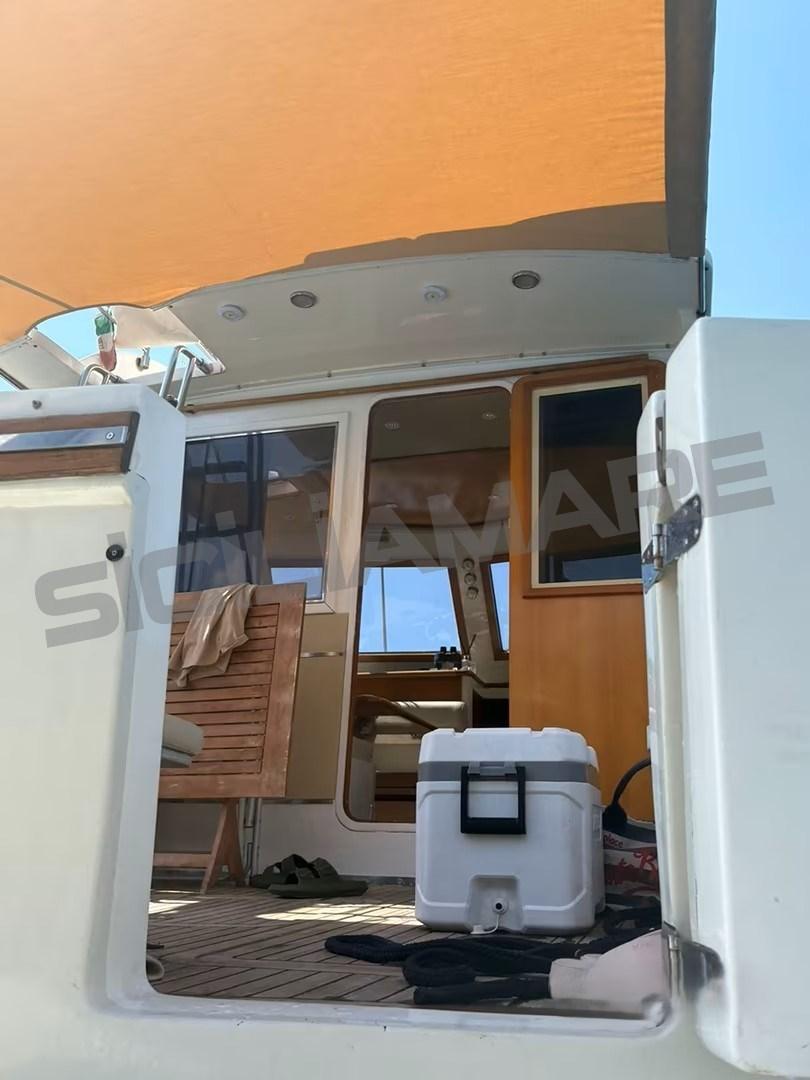 Alarme moteur, Eau sous pression, Couleur spéciale, Douche de cockpit, Double barre à roue, Flaps hydrauliques, Lavage de chaine, Passerelle (Idraulica), Plateforme arrière, Pompe de cale automatique, Porte latérale, Cockpit en teck, Onduleur, Guindeau électrique, Echelle de bain, Chaise support HB, Annexe, Corne.