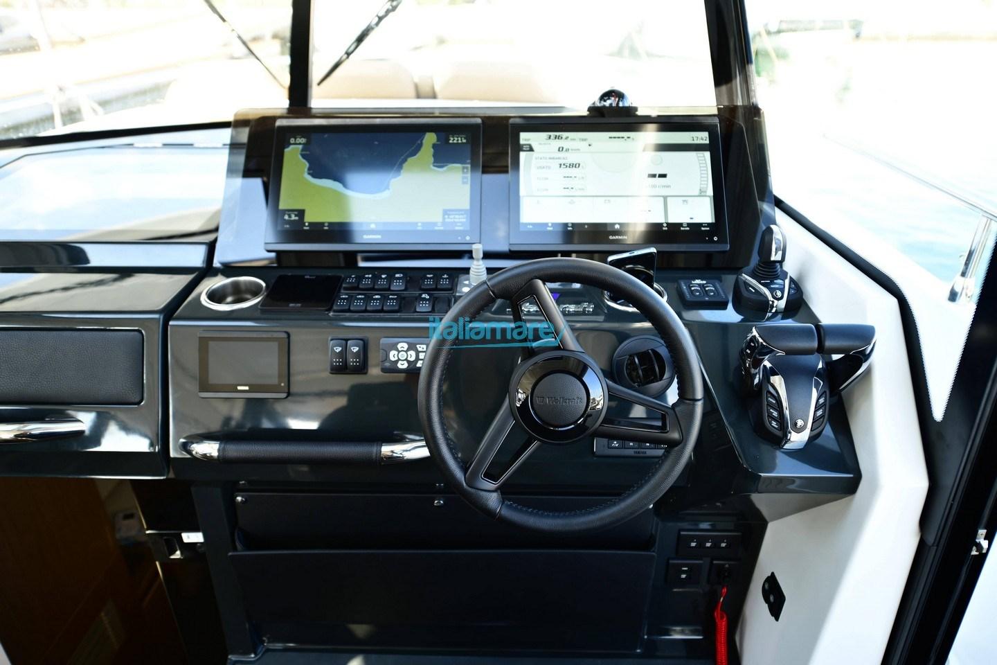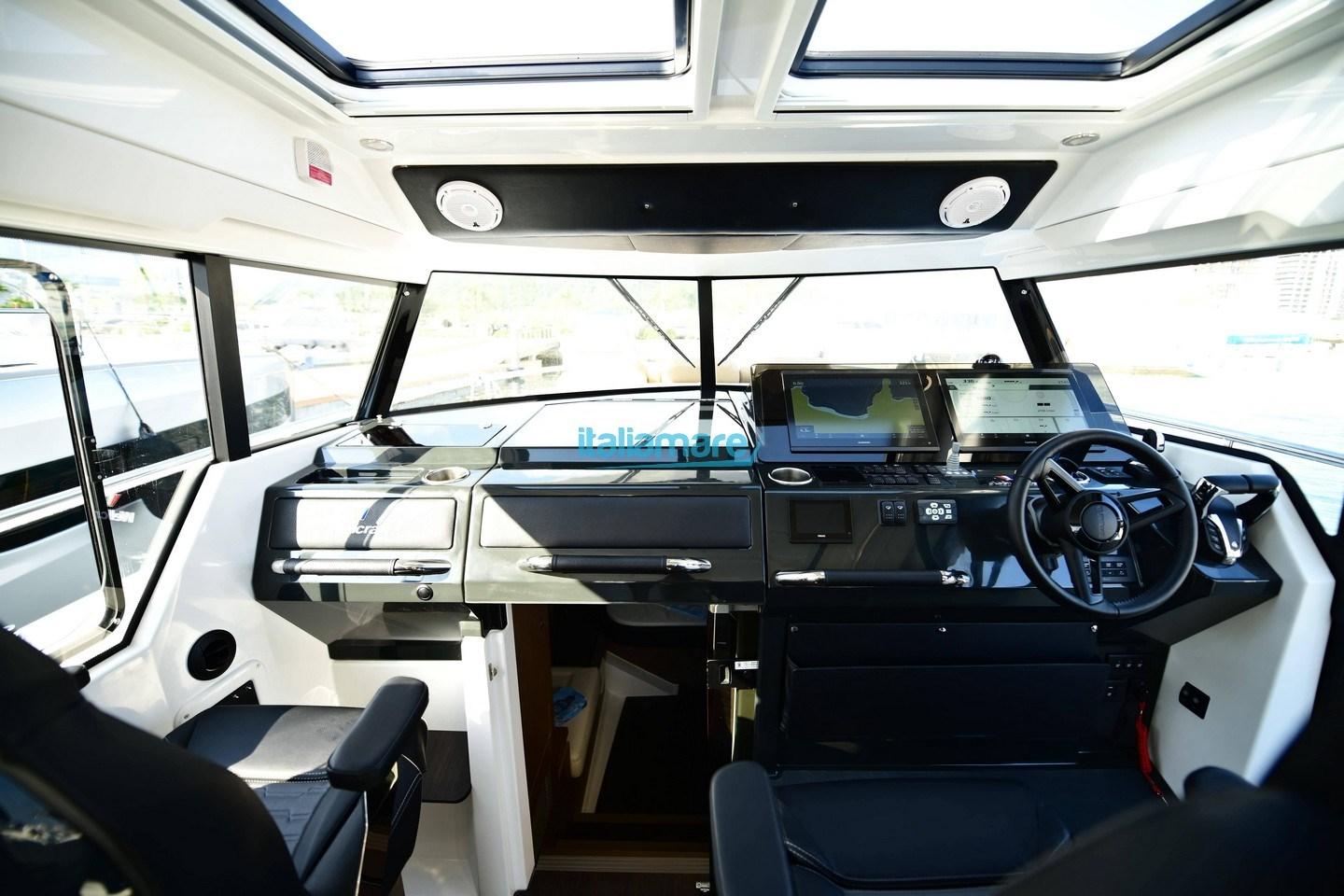 Alarme moteur, Alarme de pompe de cale, Eau sous pression, Trim hydraulique, 6 Batteries (12V), Passavant en teck, Douche de cockpit, Phare de poursuite, Flaps électriques, Extincteur(s) fixe(s), Indicateurs de flaps, Éclairage de courtoisie, Spots sous-marins, Pompe de cale automatique, Pompe de cale manuelle, 2 Porte latérale, Cockpit en teck, Prise de quai, Connexion eau sous pression à quai, Guindeau électrique, Echelle de bain (PIU' EXTRA LATERALE), table de cockpit.