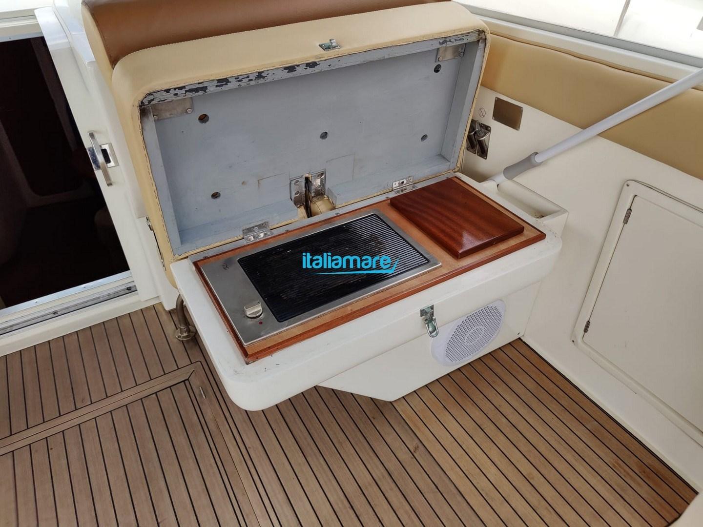 Alarme moteur, Eau sous pression, Phare de poursuite, Flaps hydrauliques, Indicateurs de flaps, Éclairage de courtoisie, Passerelle, Pompe de cale automatique, Pompe de cale manuelle, Rollbar, Guindeau électrique, Echelle de bain, table de cockpit.