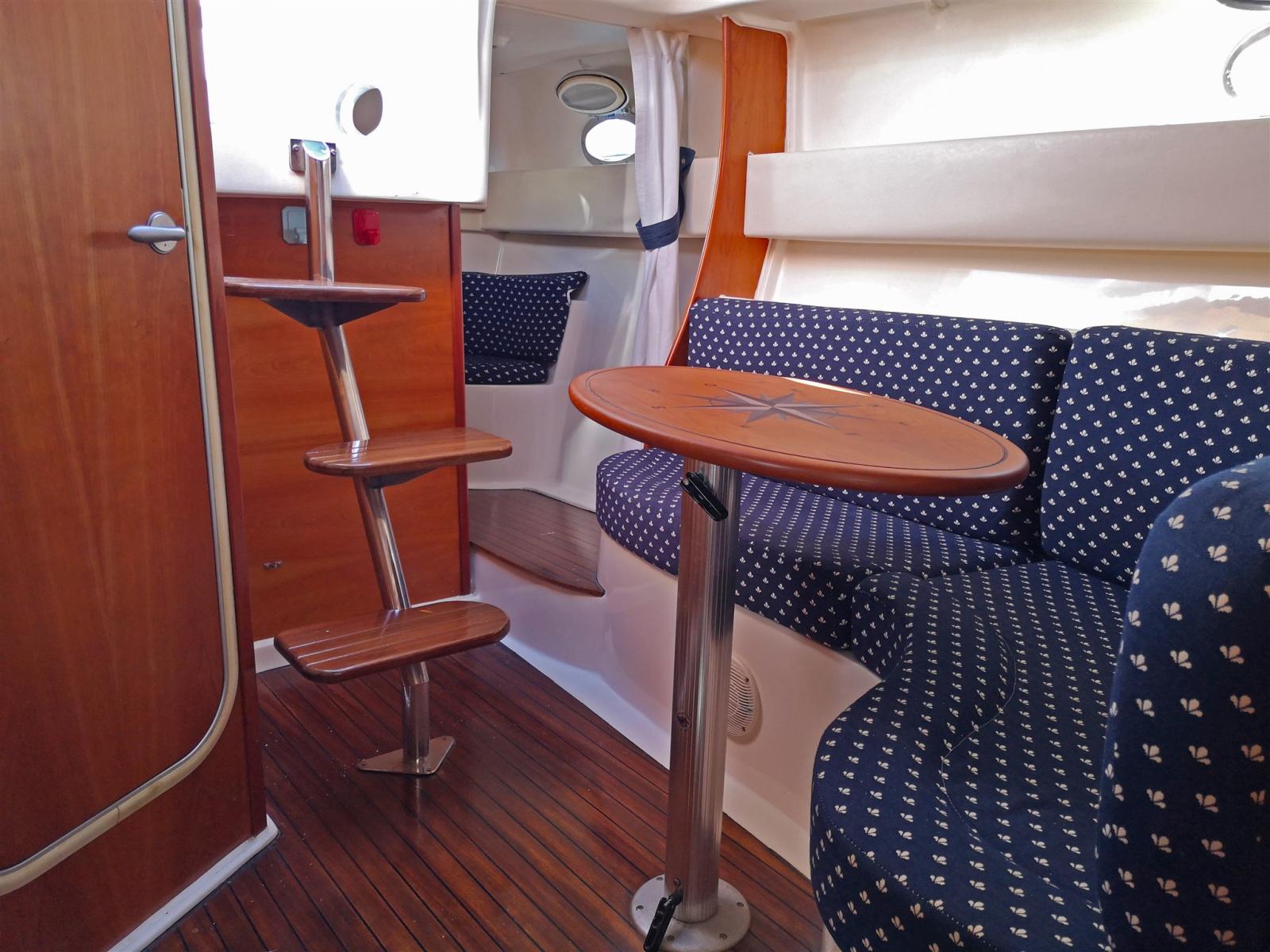 Cockpit avec table pliante et canapé en C