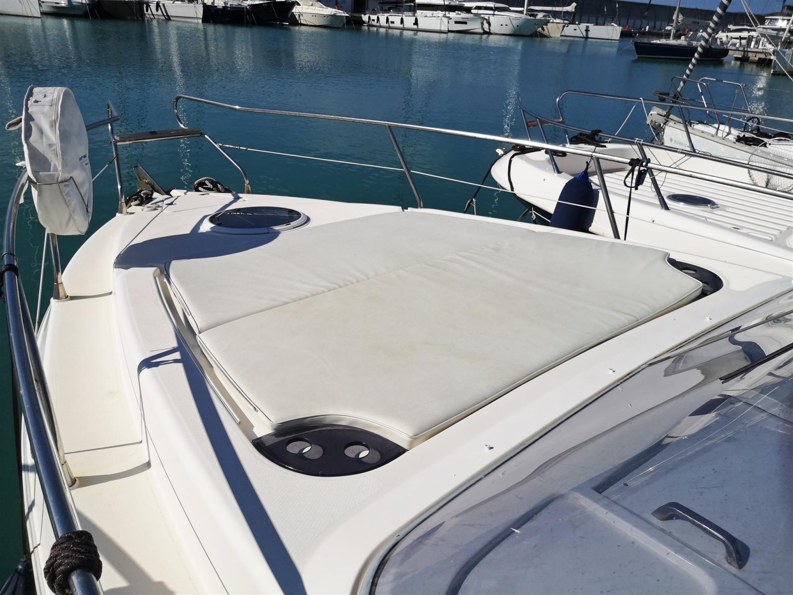 Un bateau de 2006 stable et réactif, prêt pour la navigation grâce à l’entretien effectué sur les moteurs, les stern drives, les hélices, les guindeaux d’ancre et le teck.