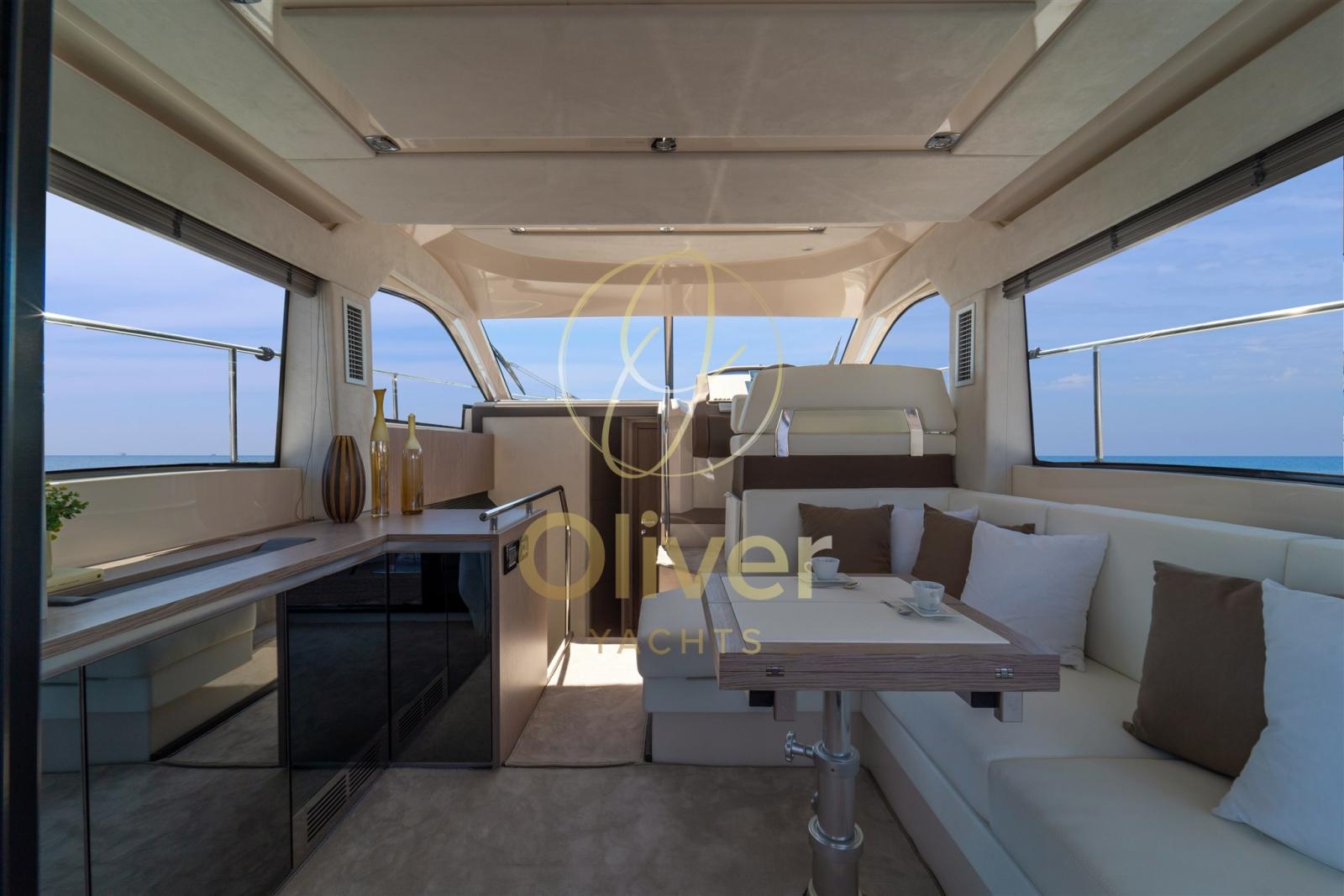F42 – Flybridge Line : étonnamment spacieux pour un 42 pieds, avec des flybridges de la taille typique d’un yacht de 45-46 pieds. Solarium, table à manger, bar-évier et timonerie extérieure : une véritable terrasse avec vue sur la mer.