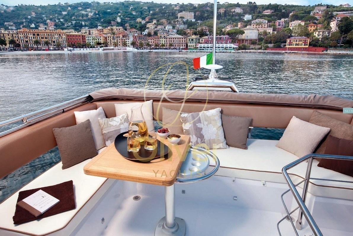 Alarme gaz, Alarme moteur, Alarme de pompe de cale, Alternateur, Aspiration des Eaux Usées depuis le Pont, Auto Dynamic Trim Interceptor, Eau sous pression, Trim hydraulique, Passavant en teck, Câble d’alimentation à quai, Couleur spéciale, Filères, Douche de cockpit, Fixation de l’ancre, Flaps hydrauliques, Extincteur(s) fixe(s), Lavage de chaine, Lavabo dans le cockpit, Éclairage de courtoisie, Spots sous-marins, Moniteur de batterie, Défenses, Passerelle (idraulica), Plateforme arrière (elettro-idraulica(300 kg)), Pompe de Vidange du Réservoir d’Eaux Usées, Pompe de cale automatique, Pompe de cale manuelle, Pont en teck, Porte latérale, Cockpit en teck, Prise de quai, Connexion eau sous pression à quai, Guindeau électrique, Echelle de bain, Système de filtration des eaux usées, Stabilisateurs (OPTIONAL: Gyro), table de cockpit, Corne.