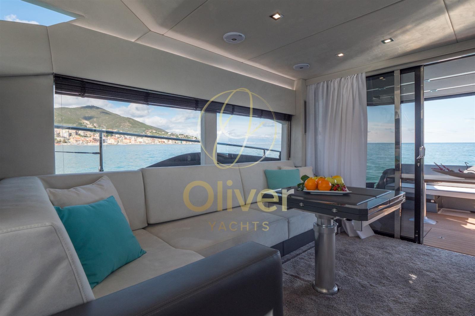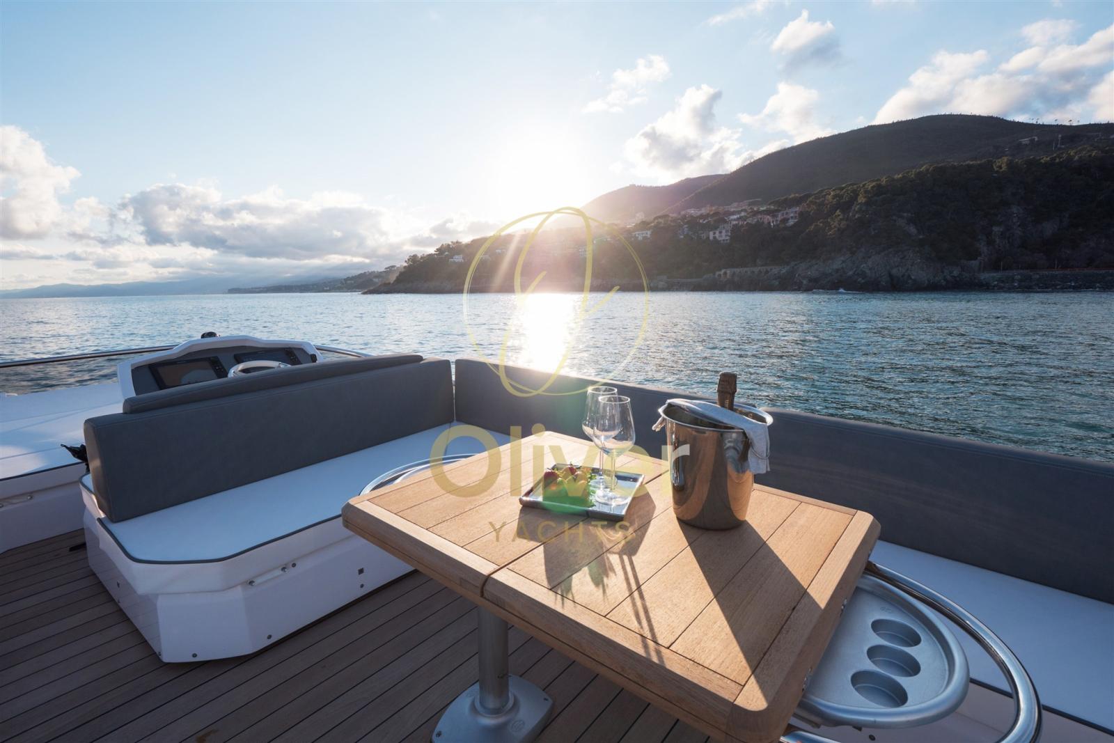 Alarme gaz, Alarme moteur, Alarme de pompe de cale, Alternateur, Ancre (20kg), Aspiration des Eaux Usées depuis le Pont, Auto Dynamic Trim Interceptor, Trim hydraulique, Taquets pliants, Passavant en teck, Couleur spéciale, Filères, Douche de cockpit, Double barre à roue, Fixation de l’ancre, Flaps hydrauliques, Extincteur(s) fixe(s), Lavage de chaine, Lavabo dans le cockpit, Éclairage de courtoisie, Spots sous-marins, Moniteur de batterie, Défenses, Passerelle (OPTIONAL : IDRAULICA A SCOMPARSA), Plateforme arrière (OPTIONAL: ELETTRO-IDRAULICA( capacità 600 kg)), Pompe de Vidange du Réservoir d’Eaux Usées, Pompe de cale automatique, Pompe de cale manuelle, Pont en teck, Porte latérale, Cockpit en teck, Prise de quai, Connexion eau sous pression à quai, Echelle de bain, Système de filtration des eaux usées, table de cockpit, Corne, Pont en teck, Winch électrique arrière (OPTIONAL), Winch électrique avant.