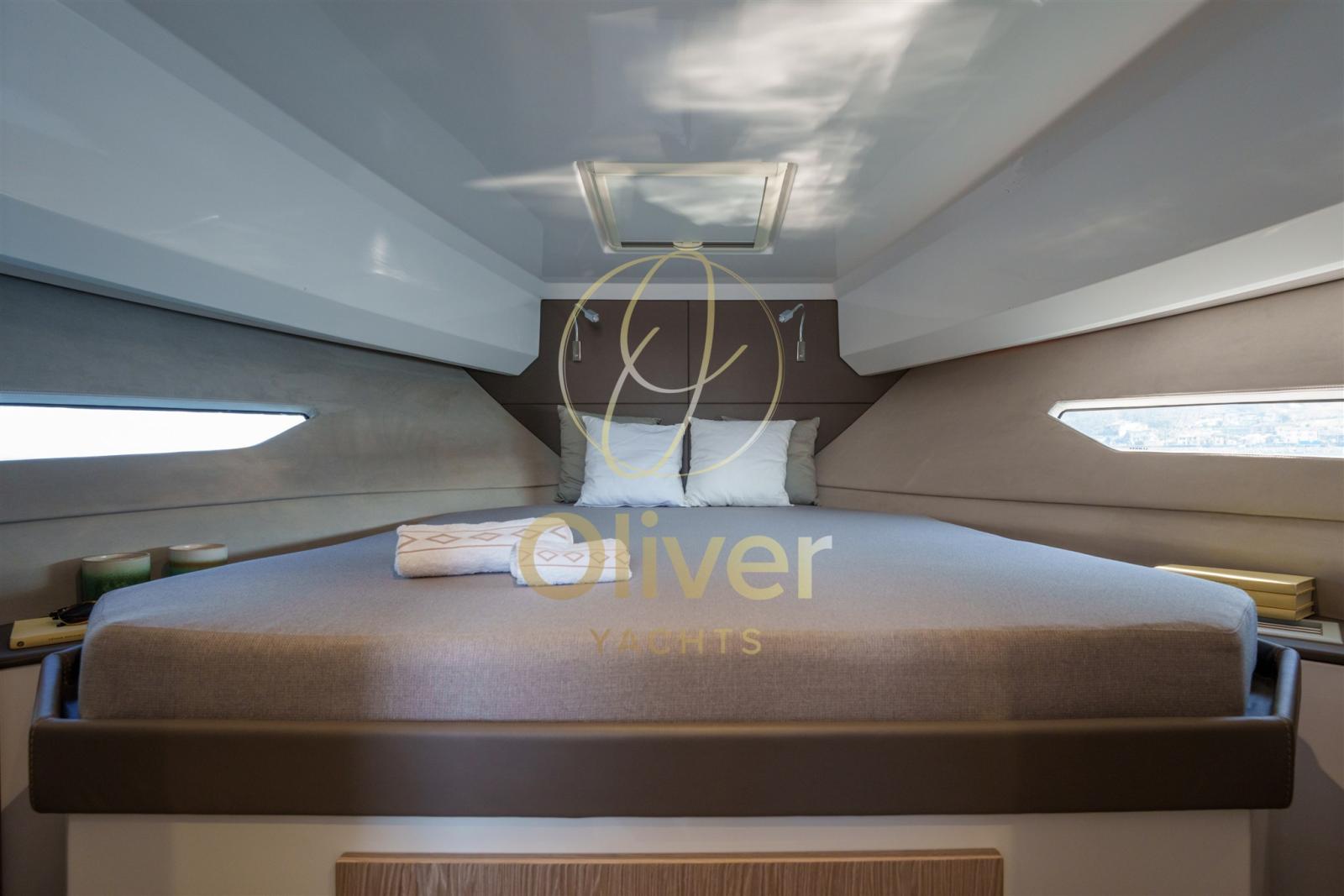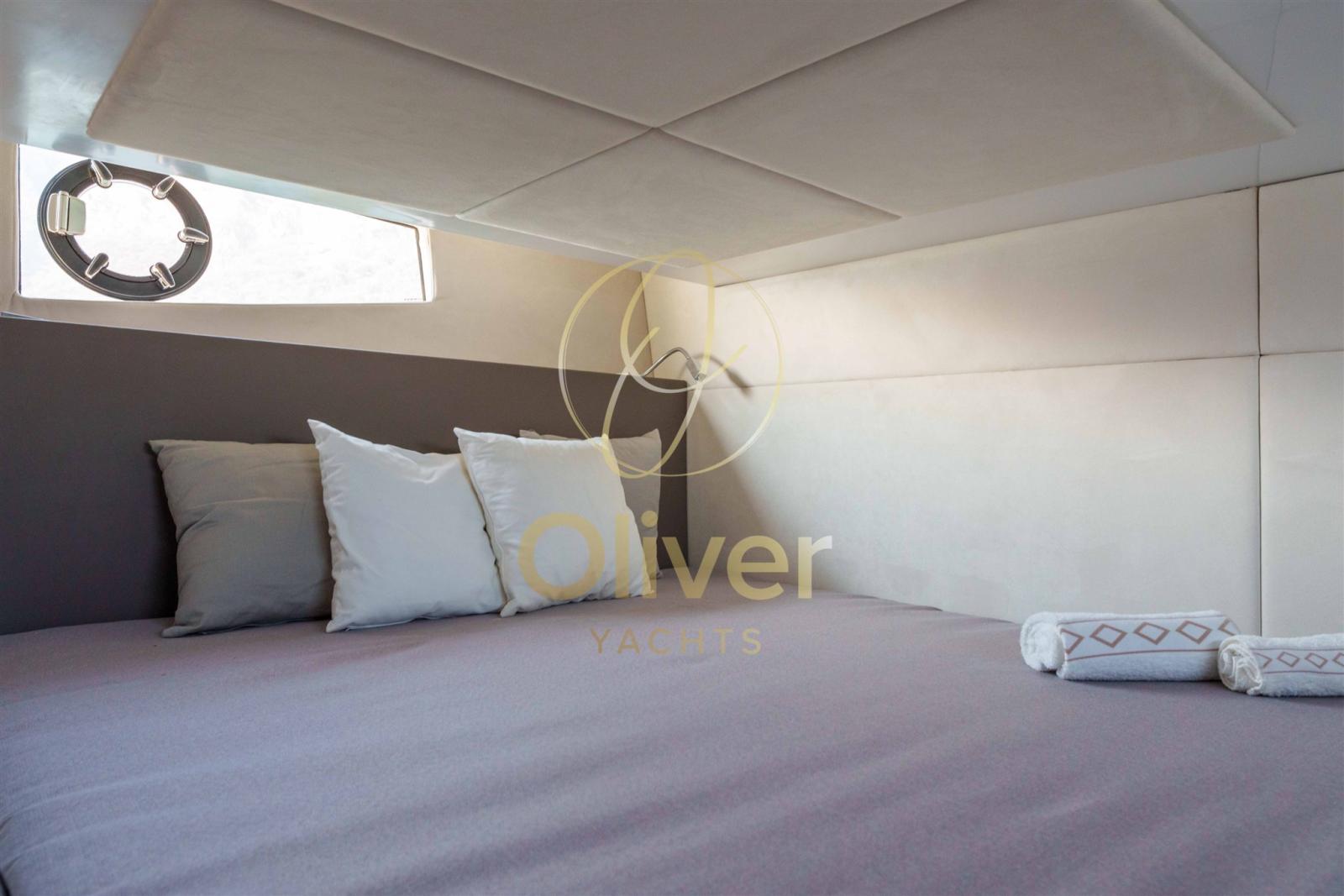 La cabine propriétaire, située à l’avant, offre une intimité et un confort dignes d’un yacht de catégorie supérieure. À l’arrière se trouve la cabine VIP, élégante et aérée, avec un lit double et une grande armoire, conçue pour accueillir les invités avec le même soin réservé au propriétaire.