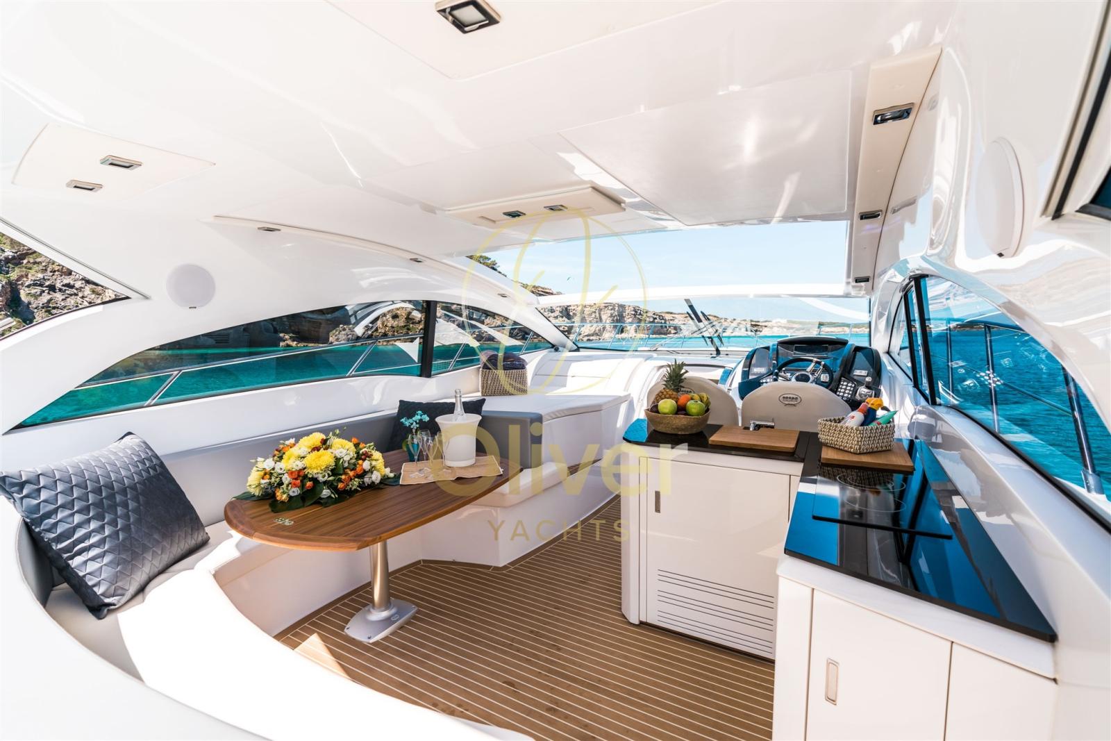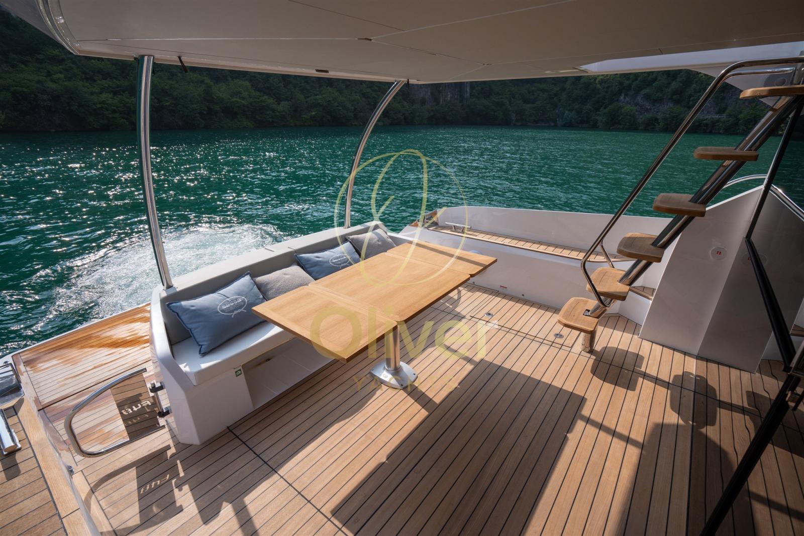 • Pour le F48 : variante flybridge, idéale si vous voulez ce niveau supplémentaire de vie sociale et « vue sur la mer d’en haut ».
