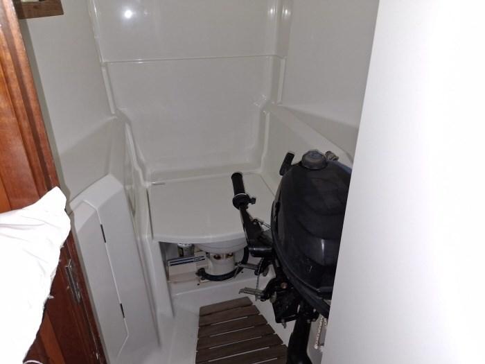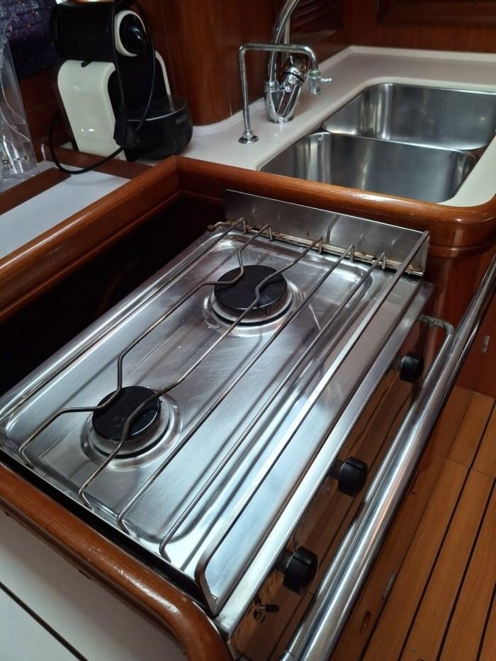 Alarme moteur, Eau sous pression, Radeau de sauvetage (8 persone), Batteries (3), Passavant en teck, Douche de cockpit (CALDA E FREDDA), Passerelle, Plateforme arrière, Pompe de cale manuelle, Onduleur, Guindeau électrique, Echelle de bain, Chaise support HB, Windex.
