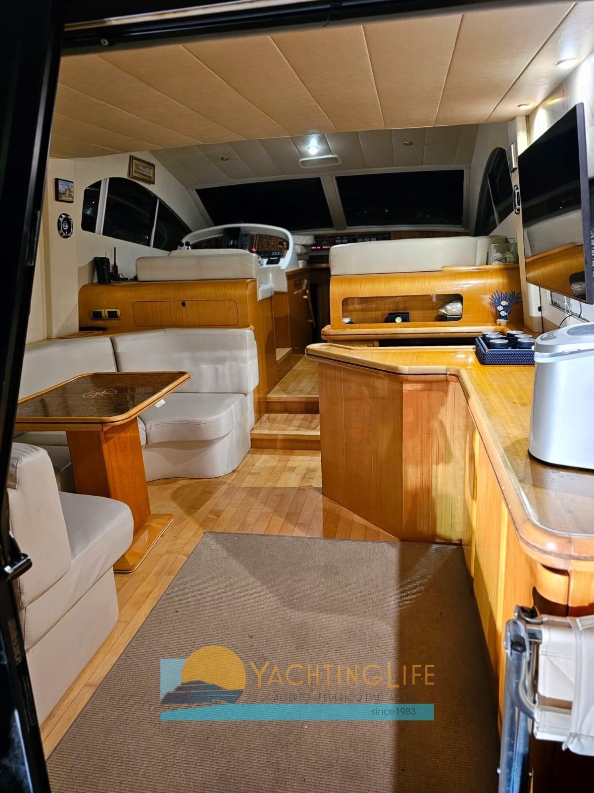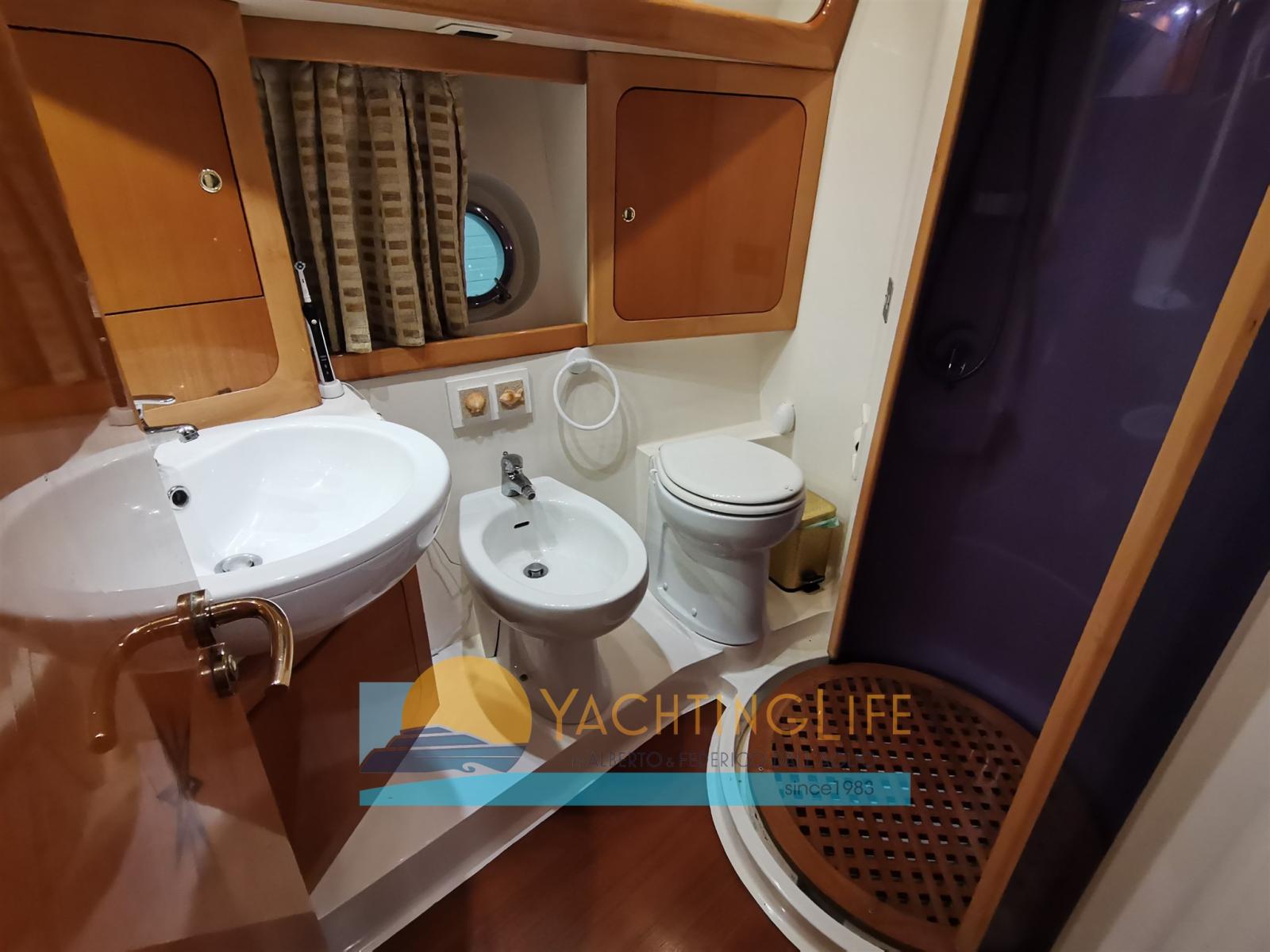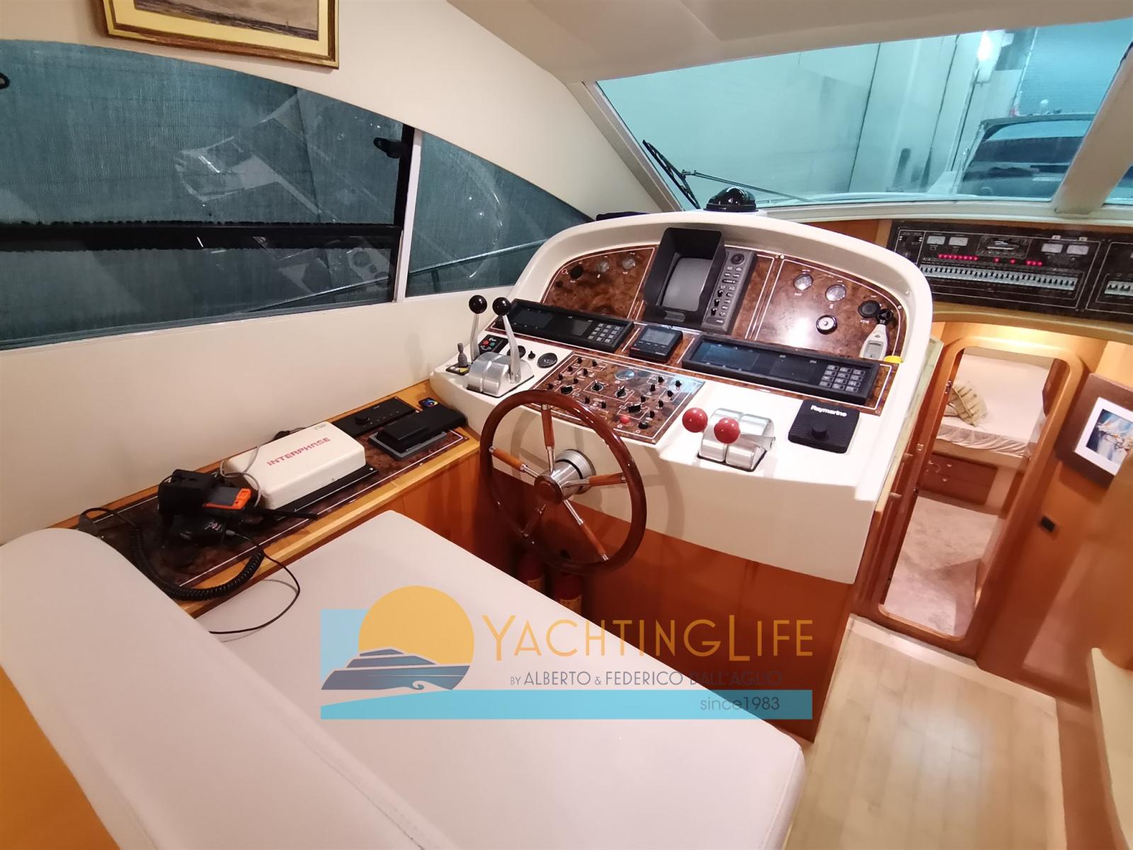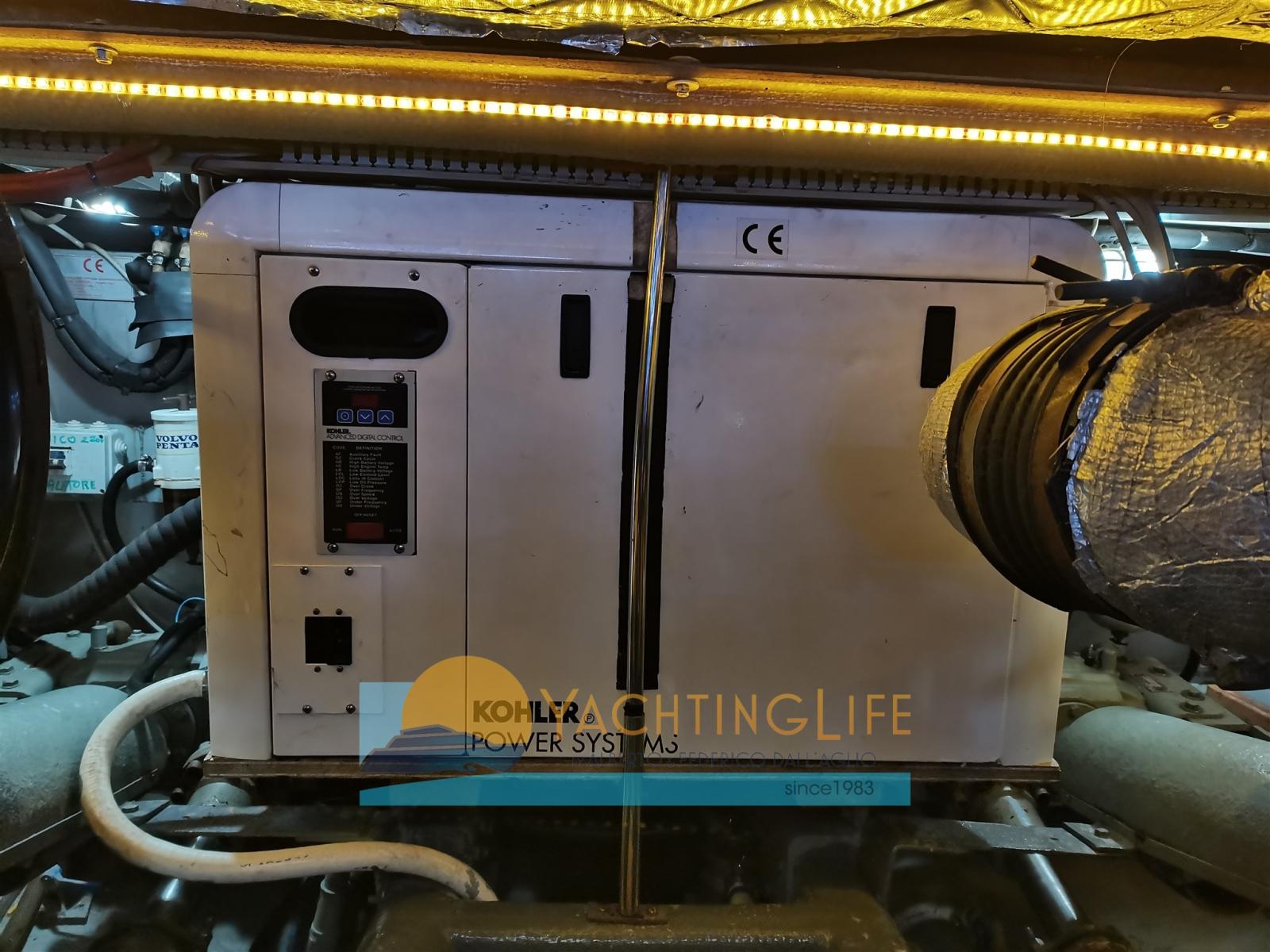 Alarme moteur, Alarme de pompe de cale, 2 Ancre, Eau sous pression, Chargeur de batterie (2020), 2 Douche de cockpit (a poppa e sul fly), Double barre à roue, 2 Hélice de rechange, Flaps hydrauliques, Indicateurs de flaps, Lavage de chaine, Spots sous-marins (2019), Passerelle (idraulica rinforzata), Plateforme arrière (allungata), Pompe de cale automatique, Cockpit en teck, Prise de quai, Onduleur, Guindeau électrique, Echelle de bain, table de cockpit, Annexe (320 Eurovinil e motore 25hp Mercury con cavi manetta nuovi), Corne, Winch électrique arrière.